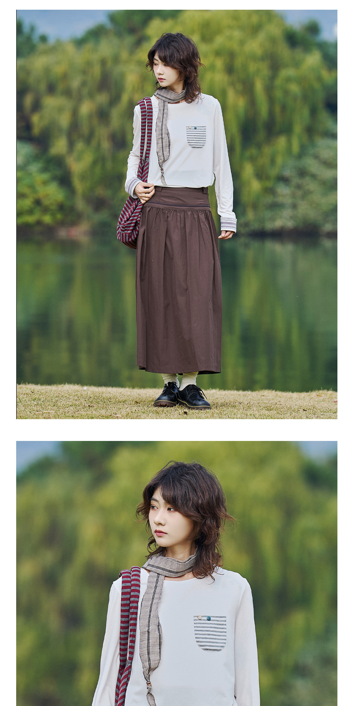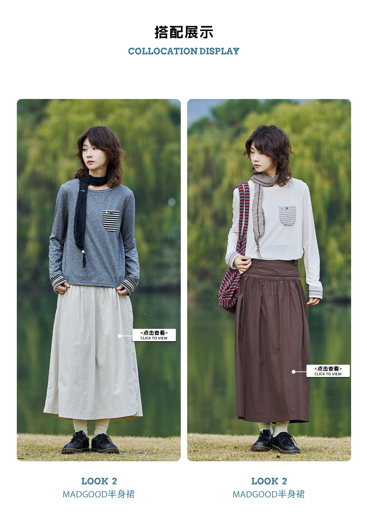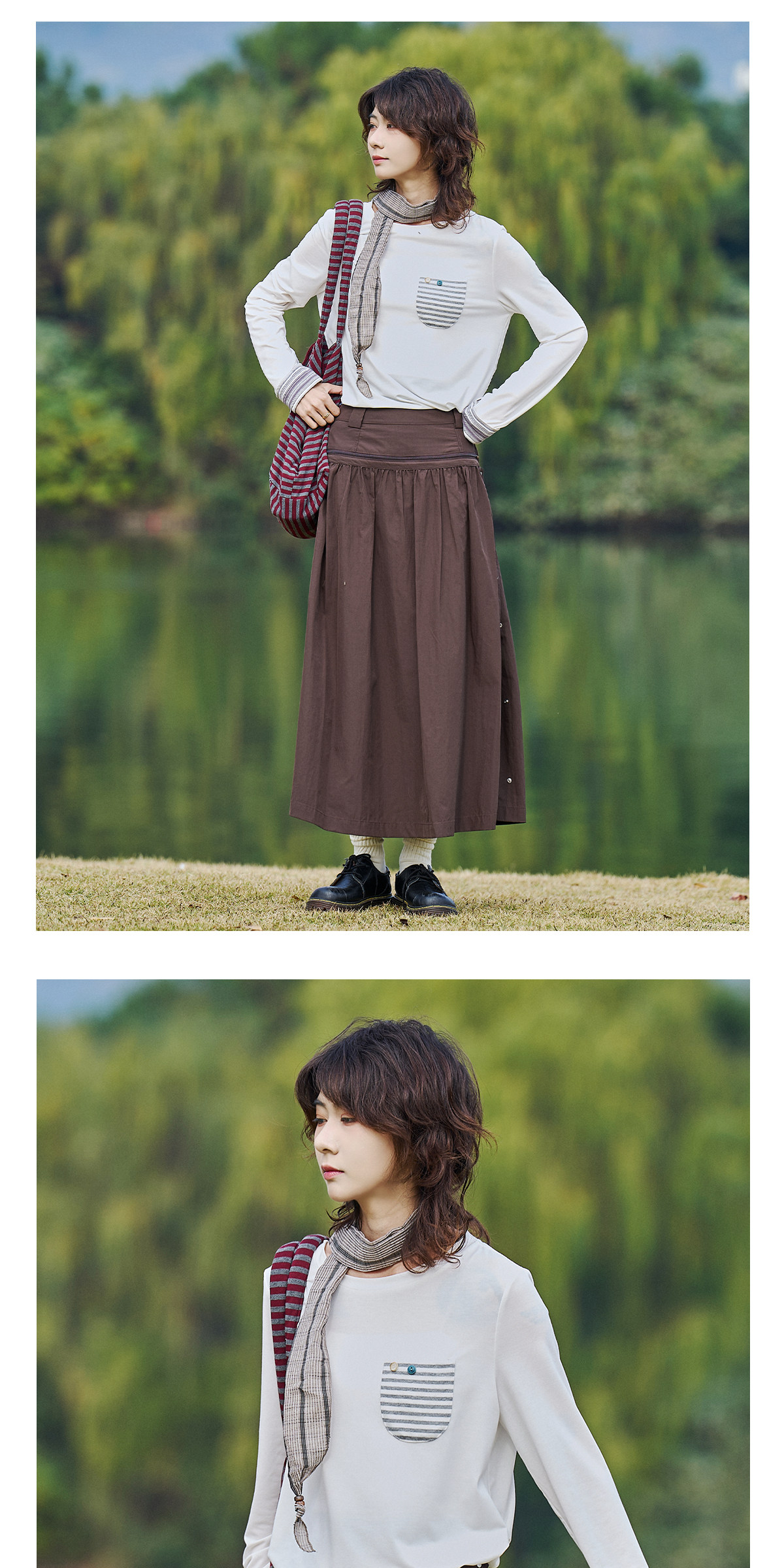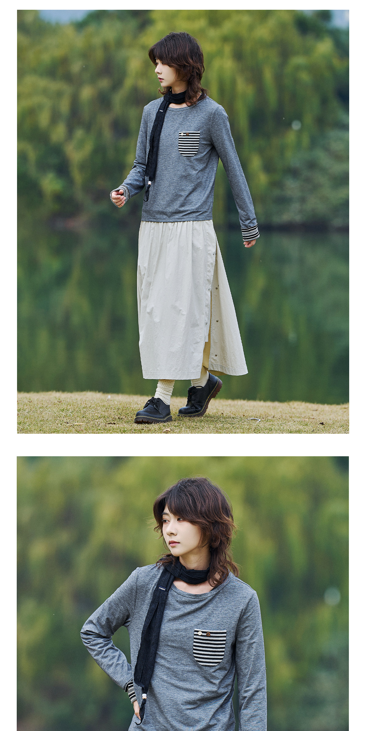 马得工地/MDGDTX212072/袖口翻折拼接条纹长袖T恤