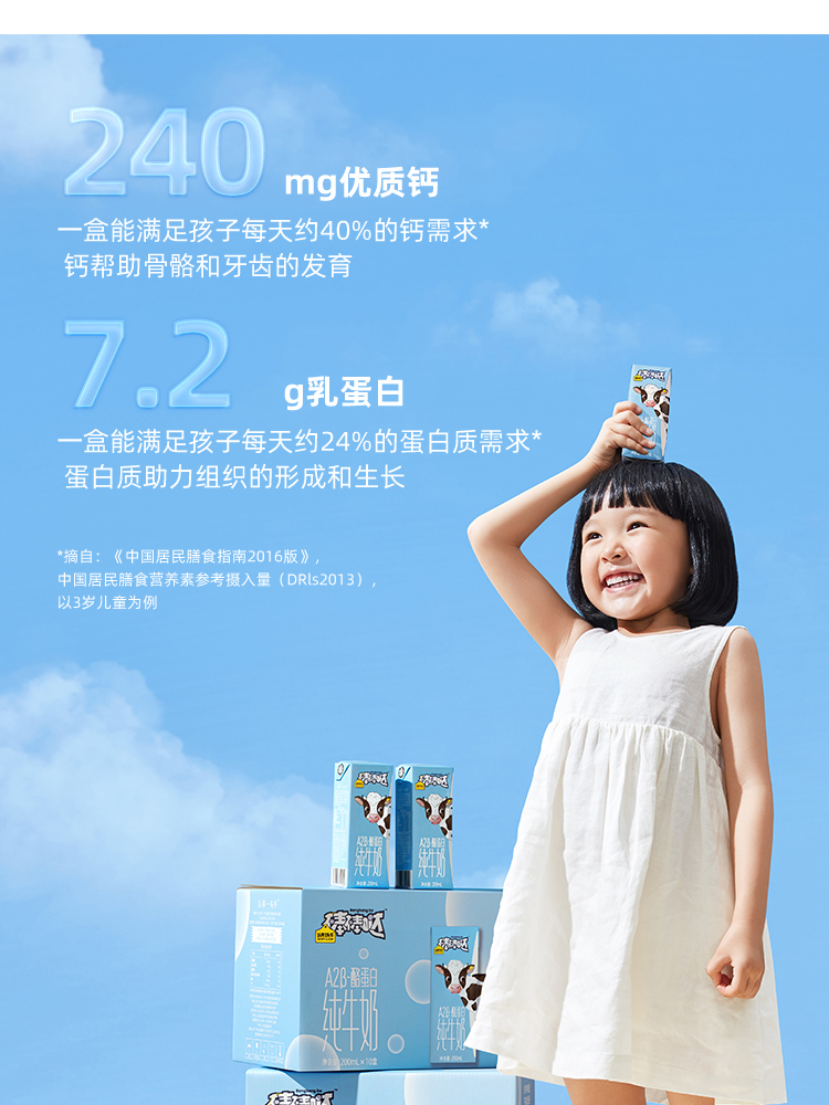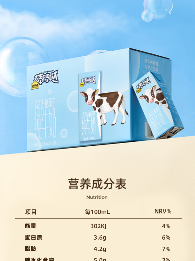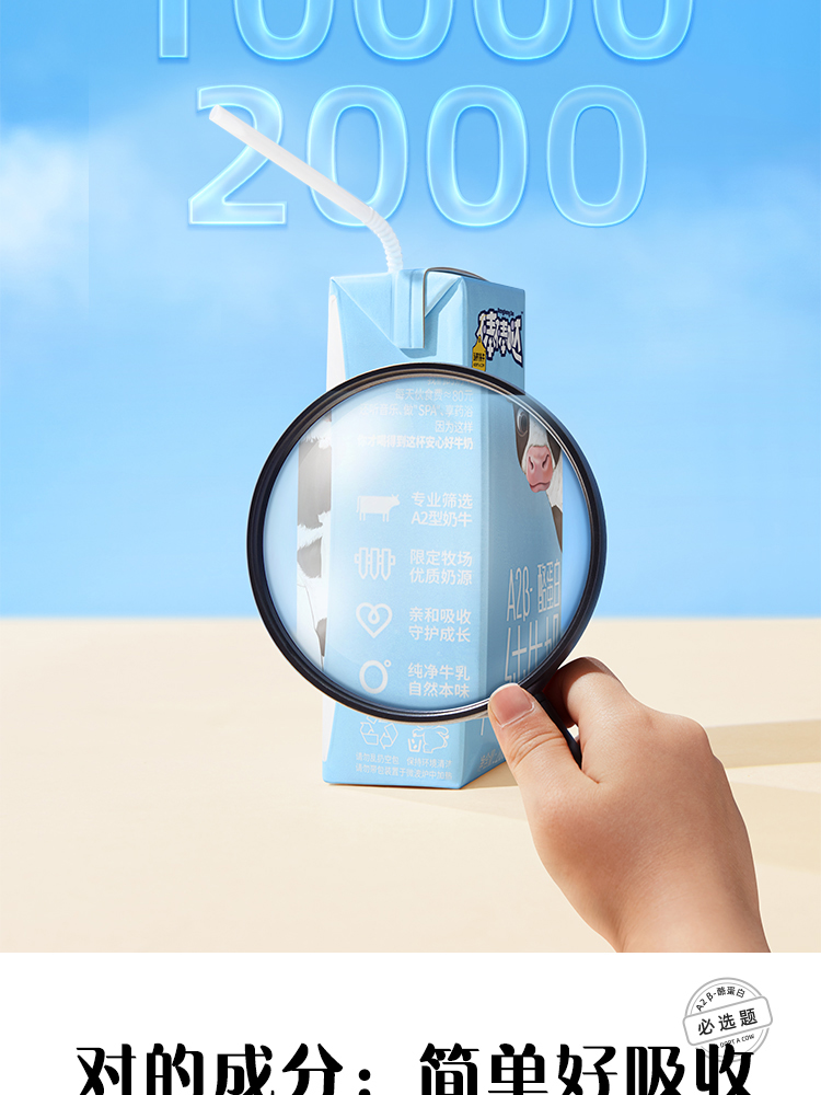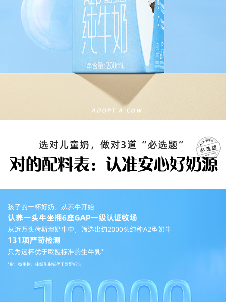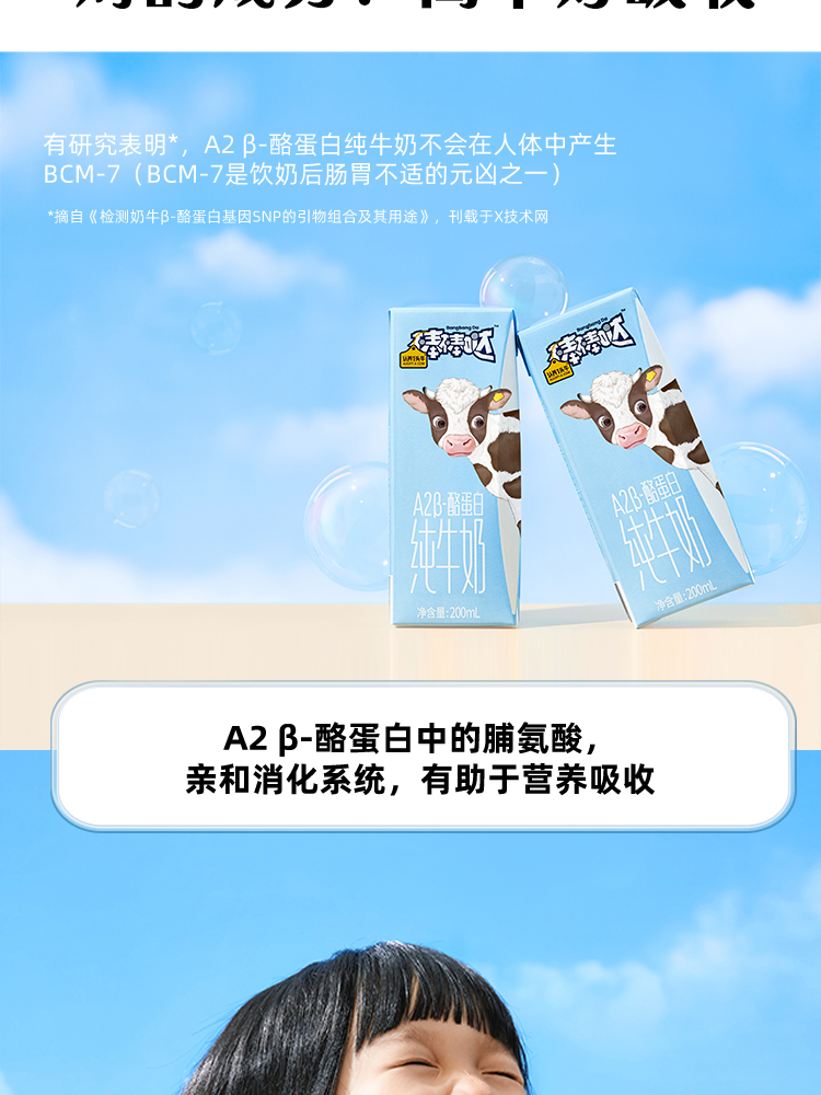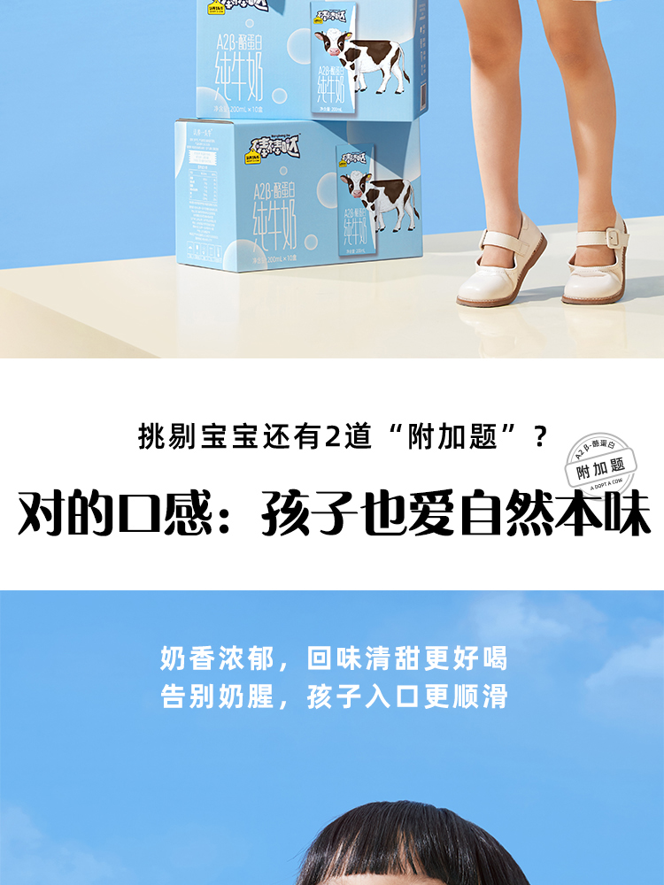 认养一头牛棒棒哒A2β-酪蛋白儿童纯牛奶200ml*10盒*2箱
