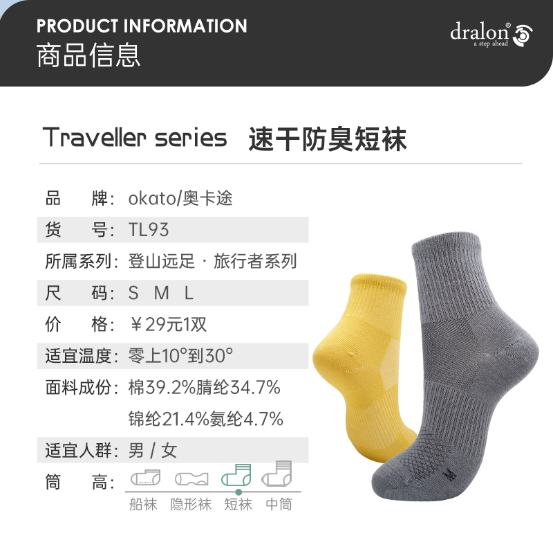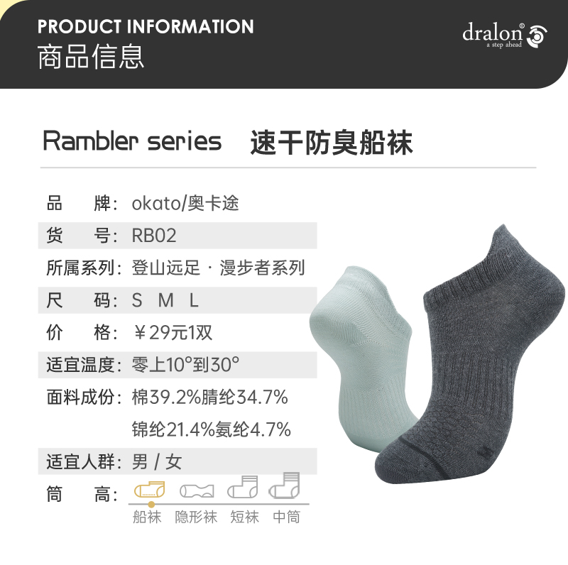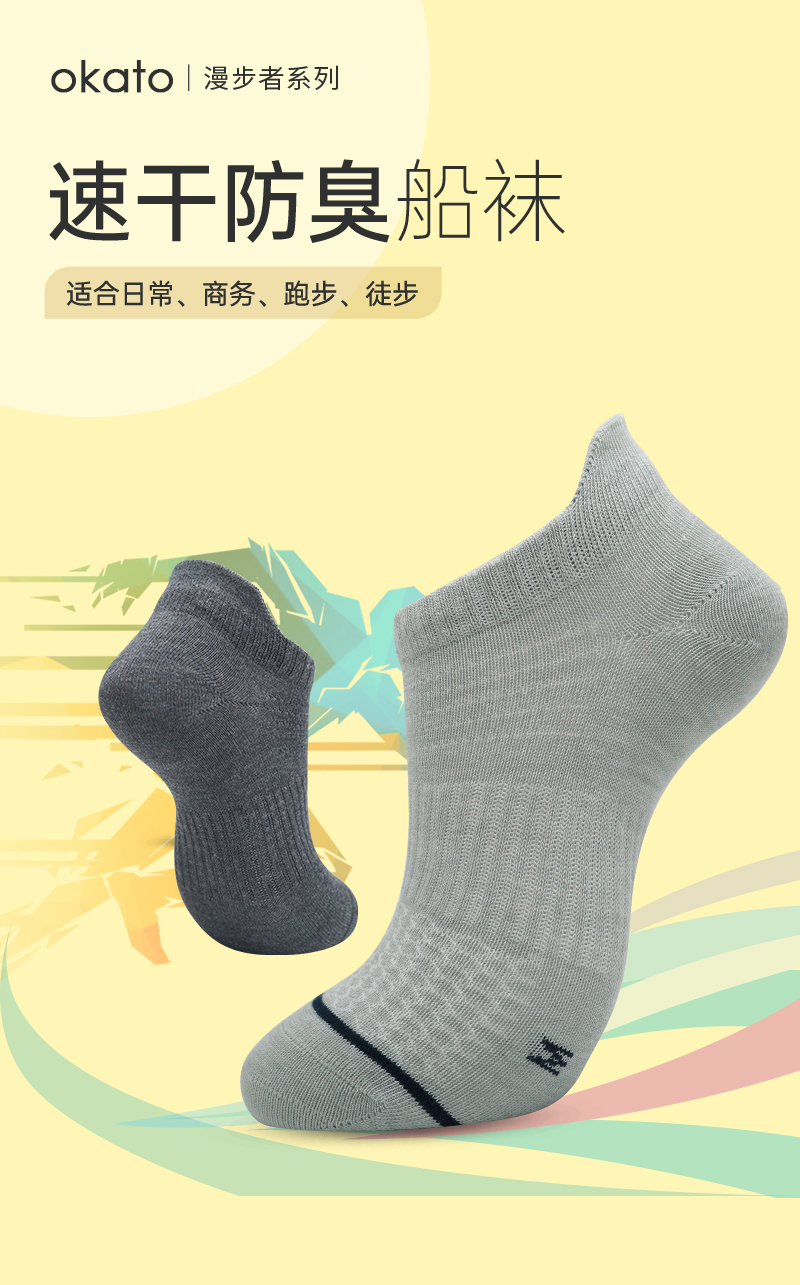 【59.9元/5双装】okato奥卡途 24年新品 速干防臭船袜/长袜 运动袜 户外袜RB02/TL93(3个月穿坏包换)