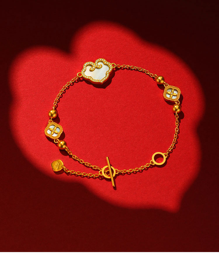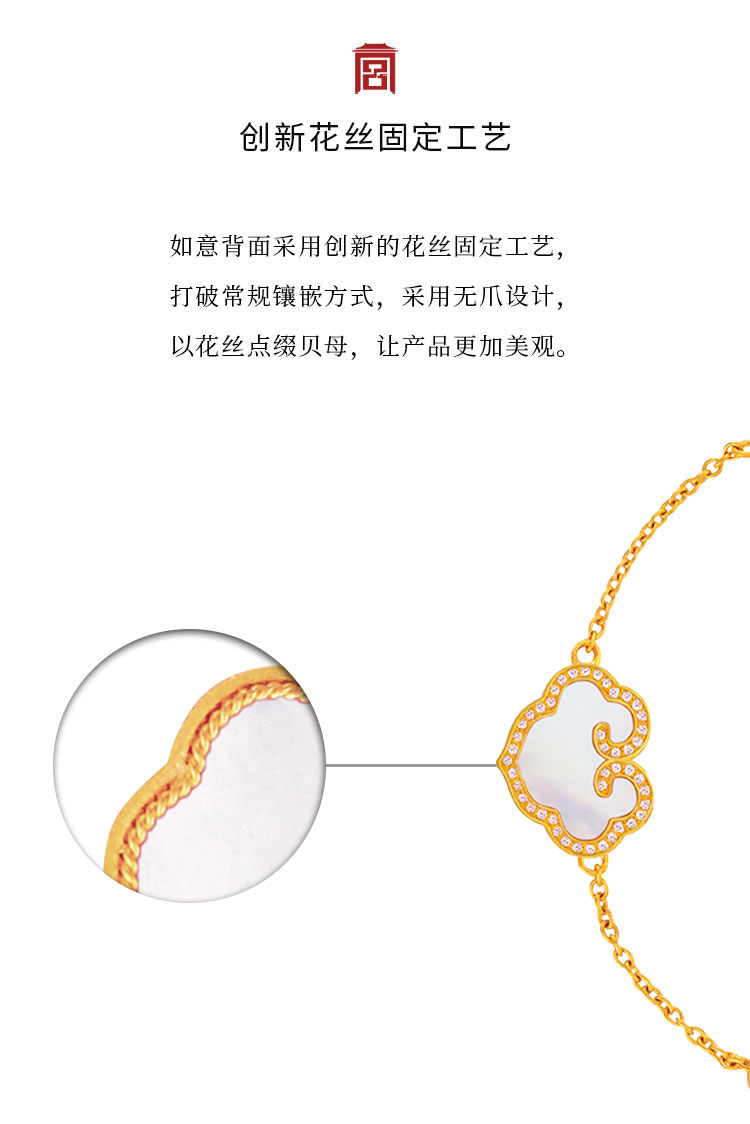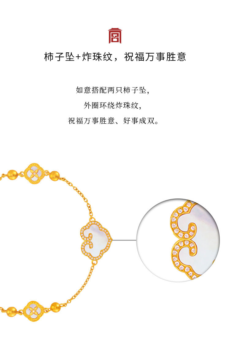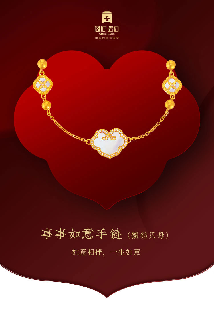 宫匠造办 事事如意手链 黄金镶钻贝母