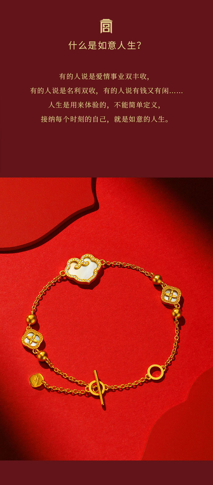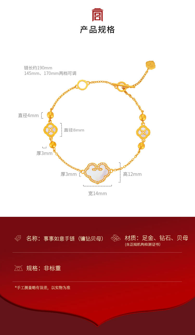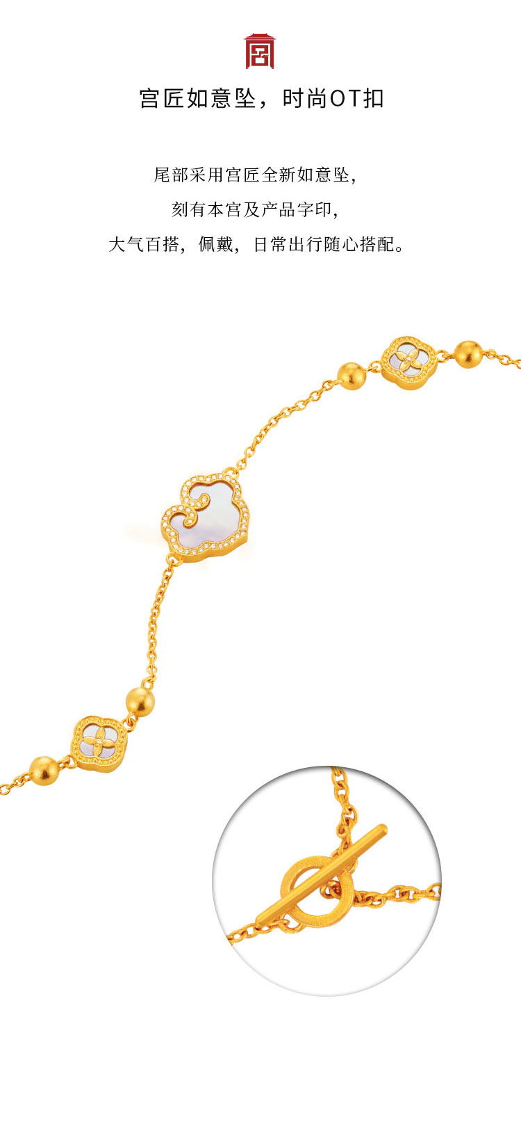 宫匠造办 事事如意手链 黄金镶钻贝母