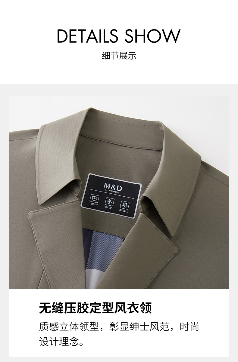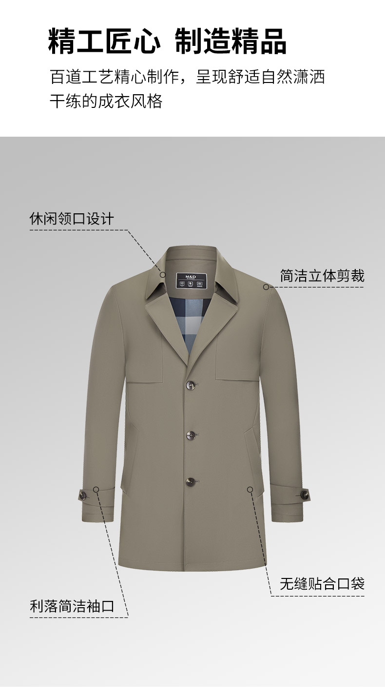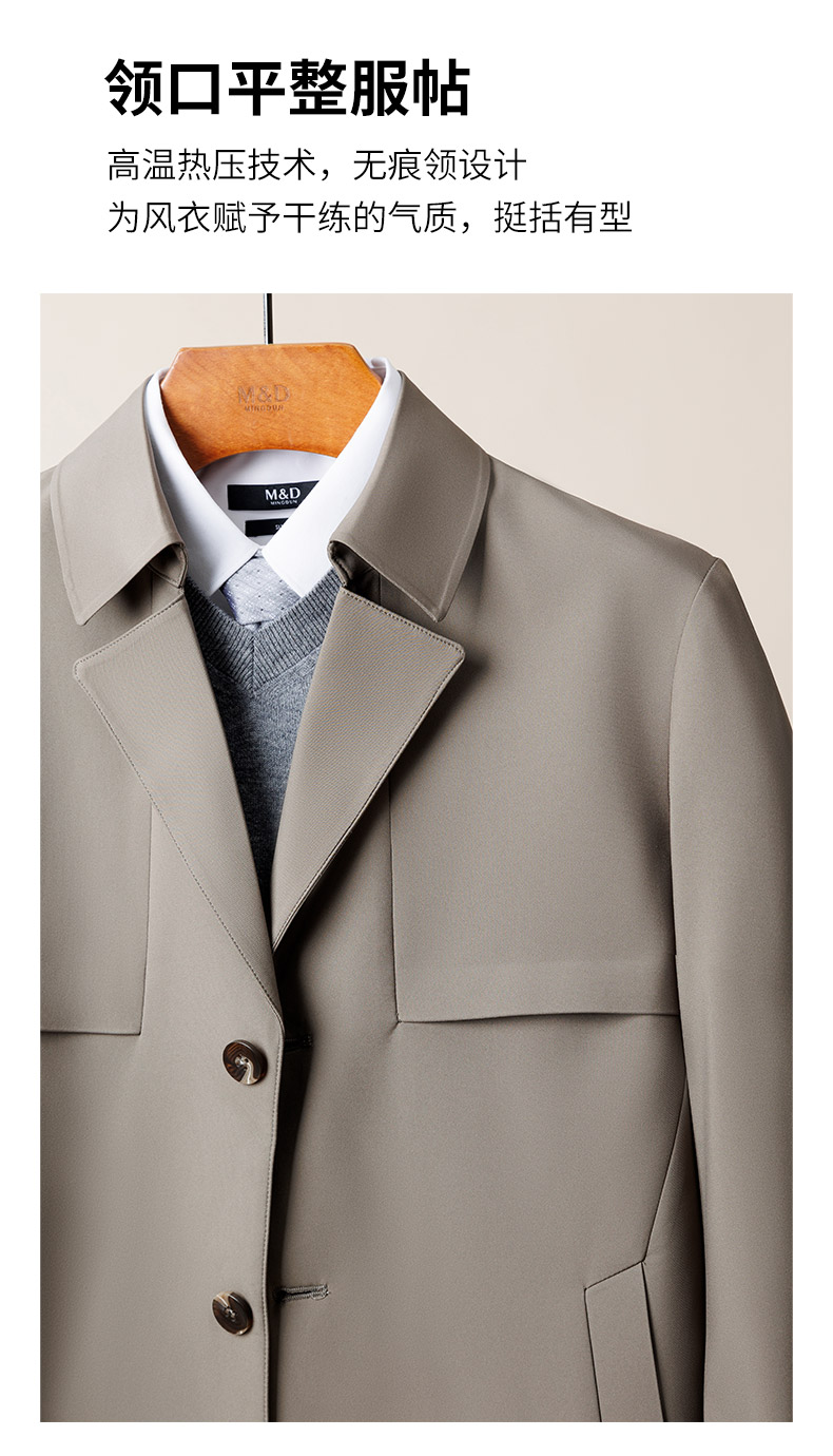 MD名盾男士中长款风衣外套秋冬商务休闲平驳领防风爸爸装夹克长款
