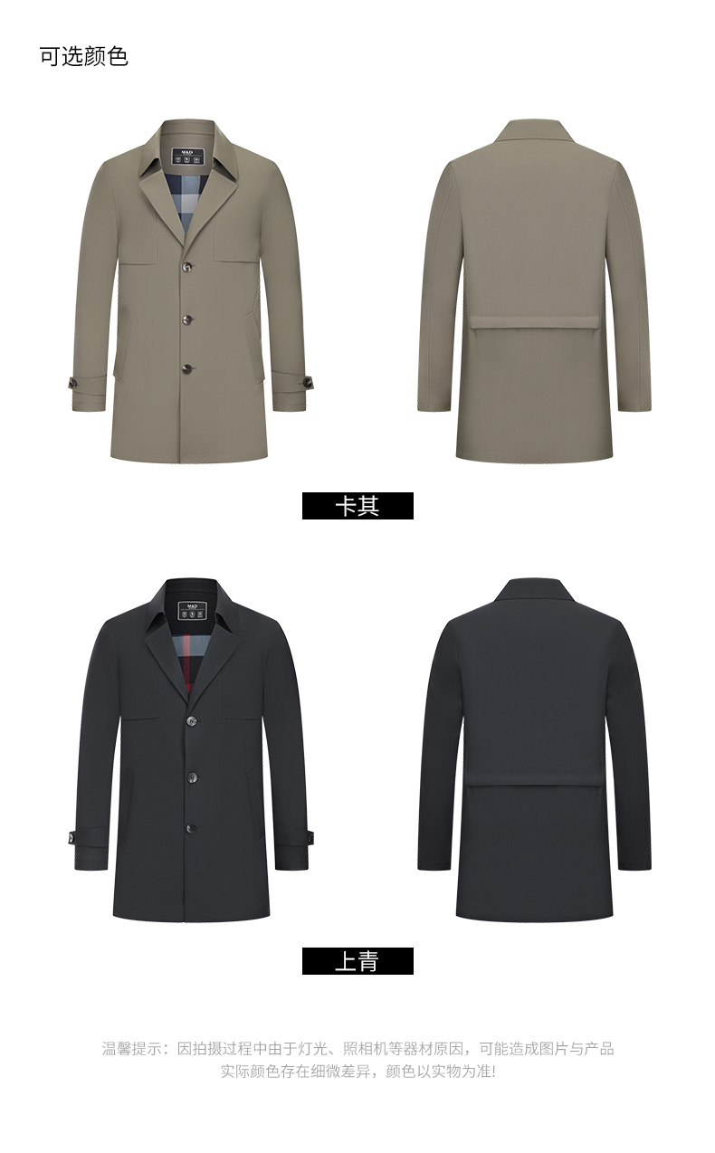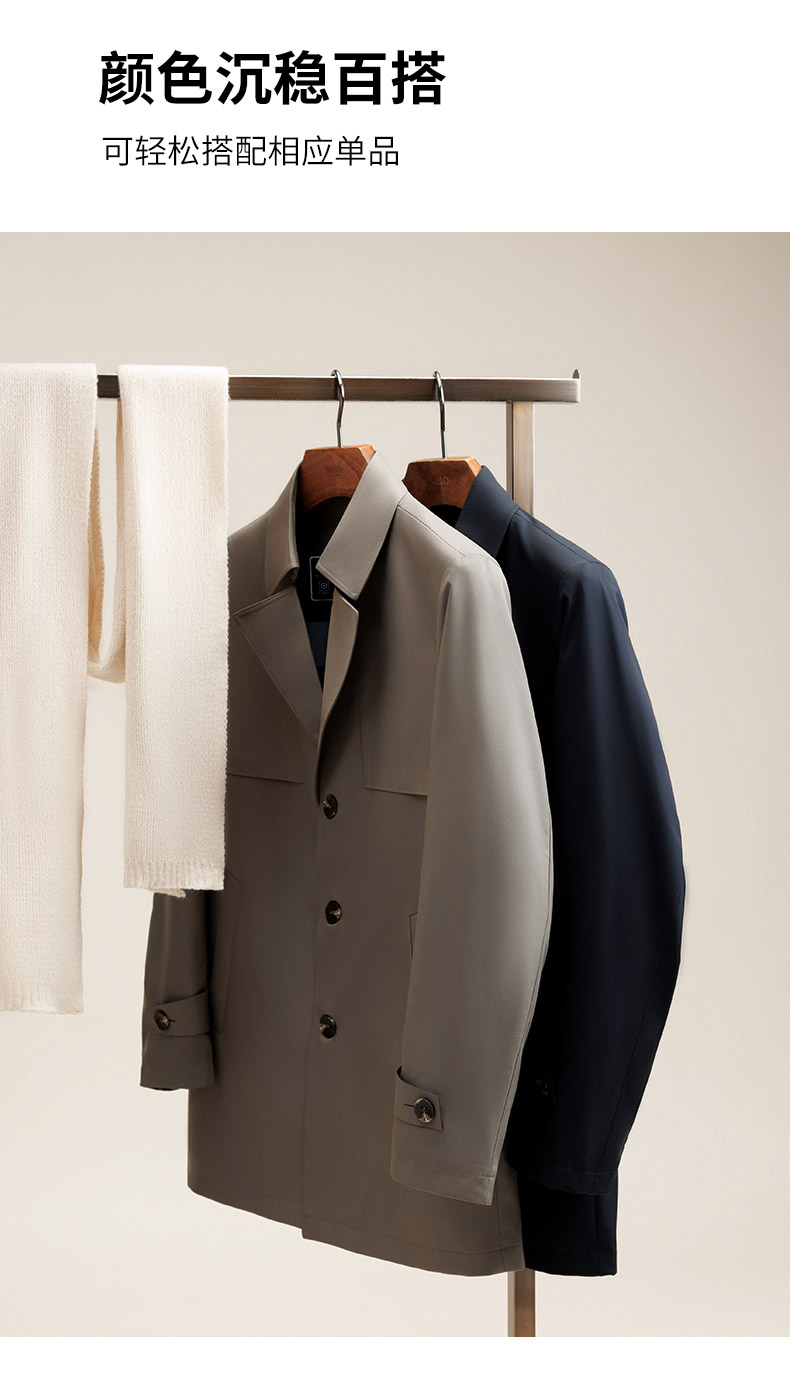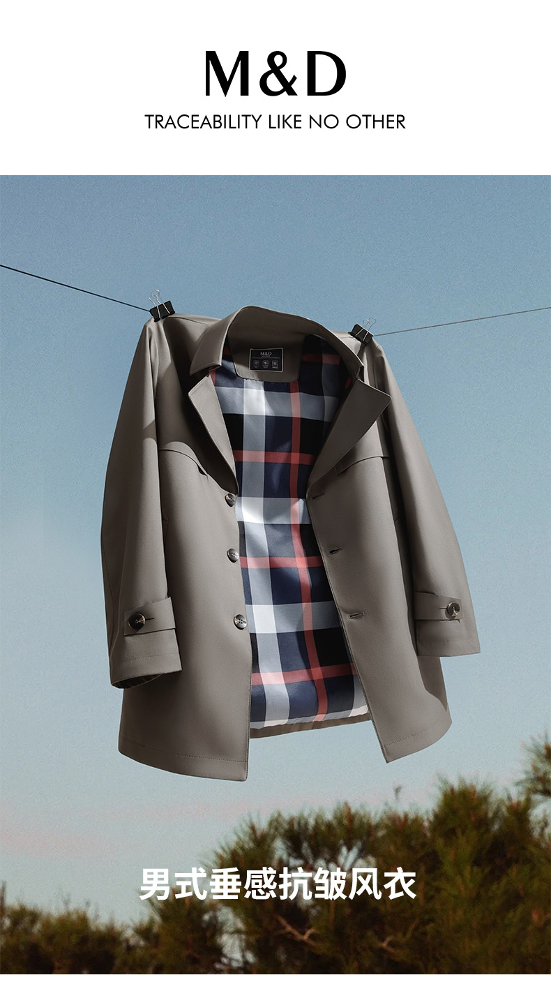 MD名盾男士中长款风衣外套秋冬商务休闲平驳领防风爸爸装夹克长款