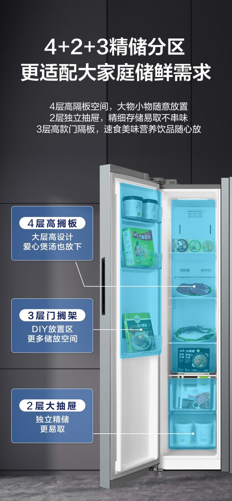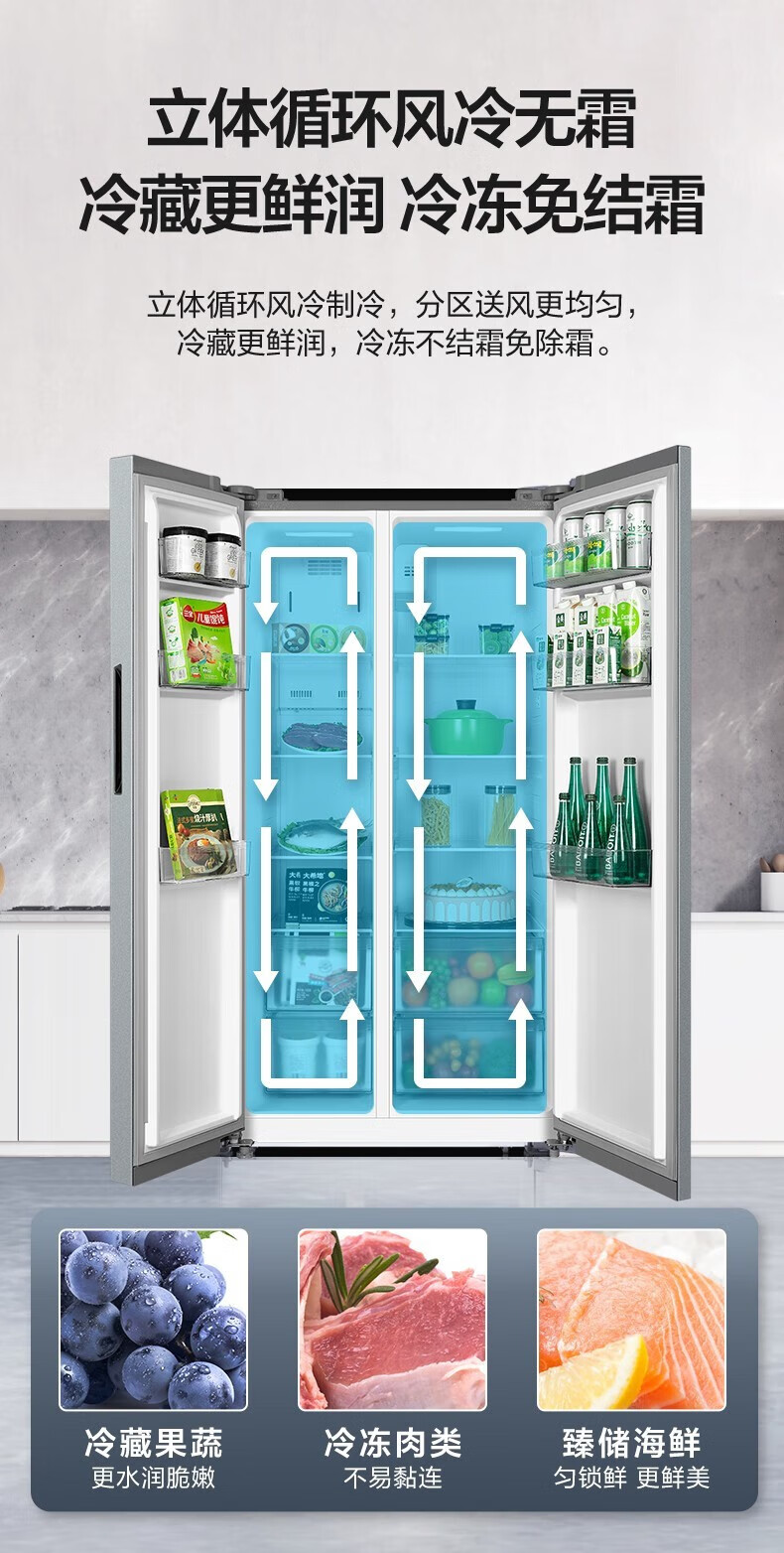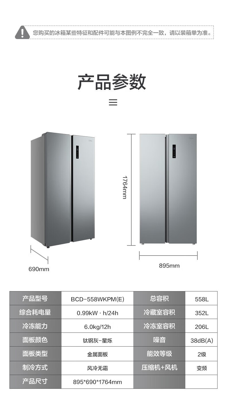 美的 BCD-558WKPM(E) 冰箱558升智能双变频节能省电智能净味控制大容量风冷无霜