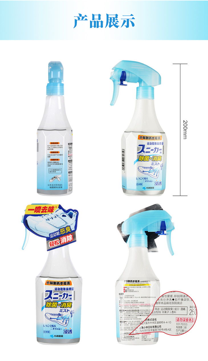 小林制药消臭喷雾运动鞋用250ml/112230 消臭只需一喷告别脚臭