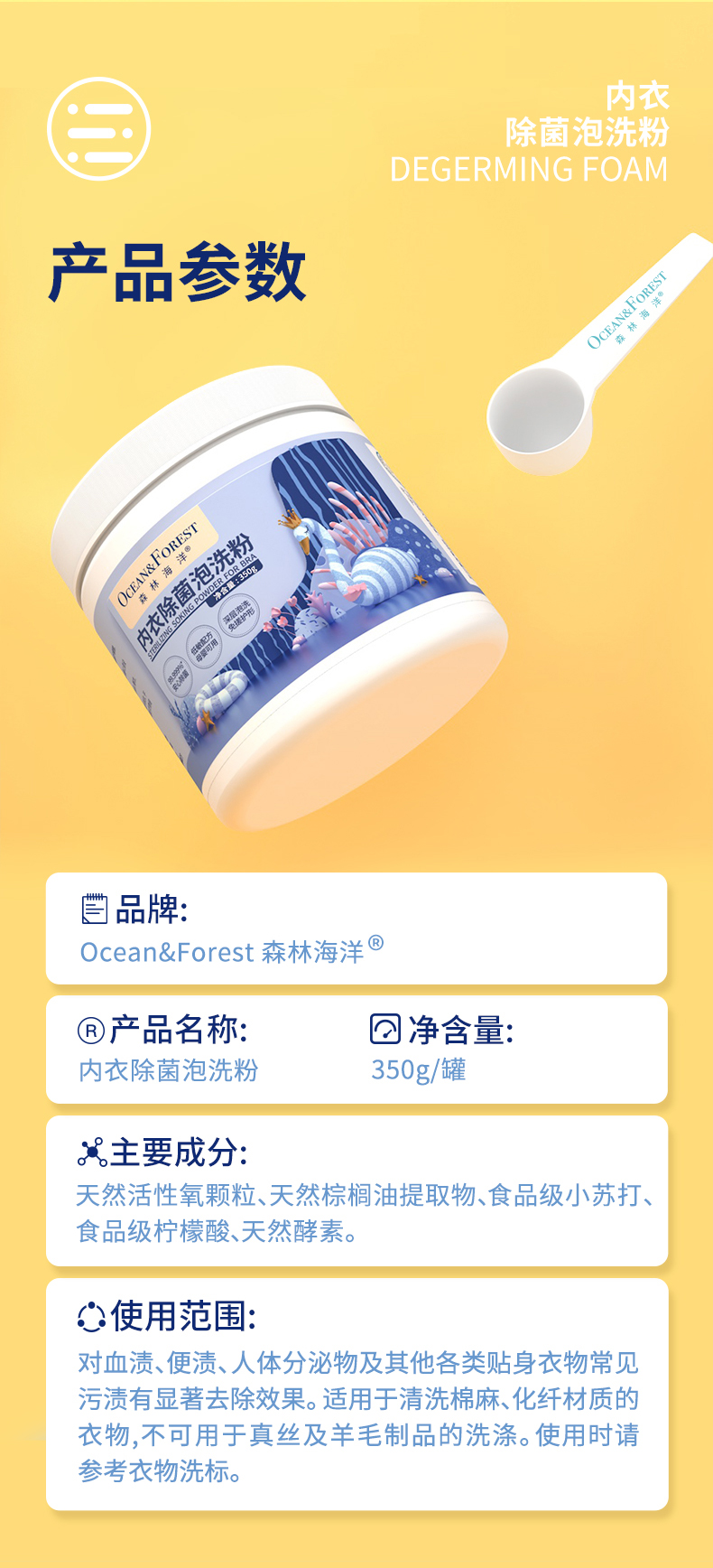 【1罐/2罐/3罐】森林海洋-小欧 内衣泡洗粉350g/罐 FX-A-1308-231225