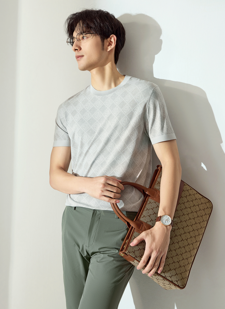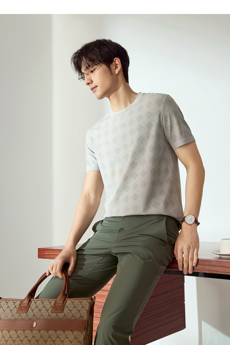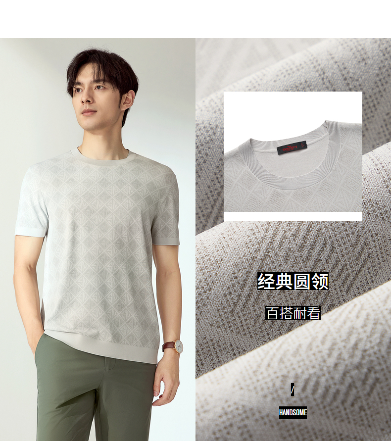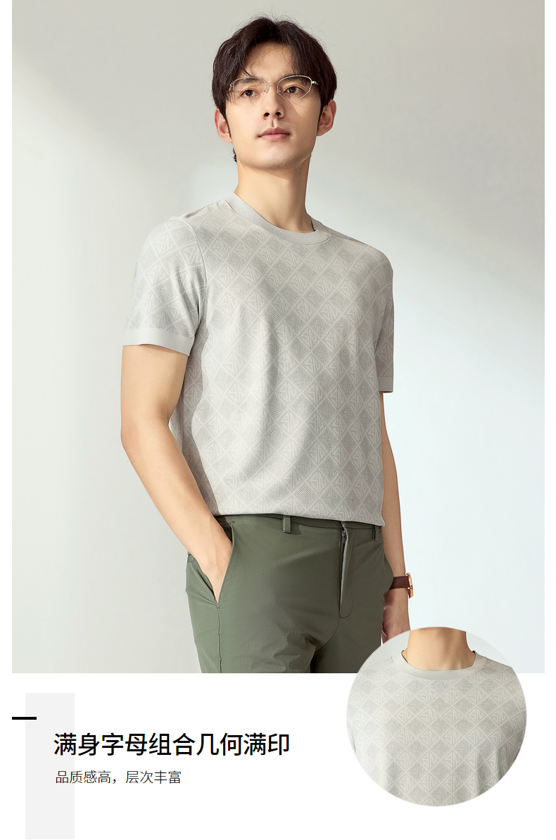 【满身印花伊力特】柒牌短袖T恤男2025夏季新品字母满印圆领上衣128T72840