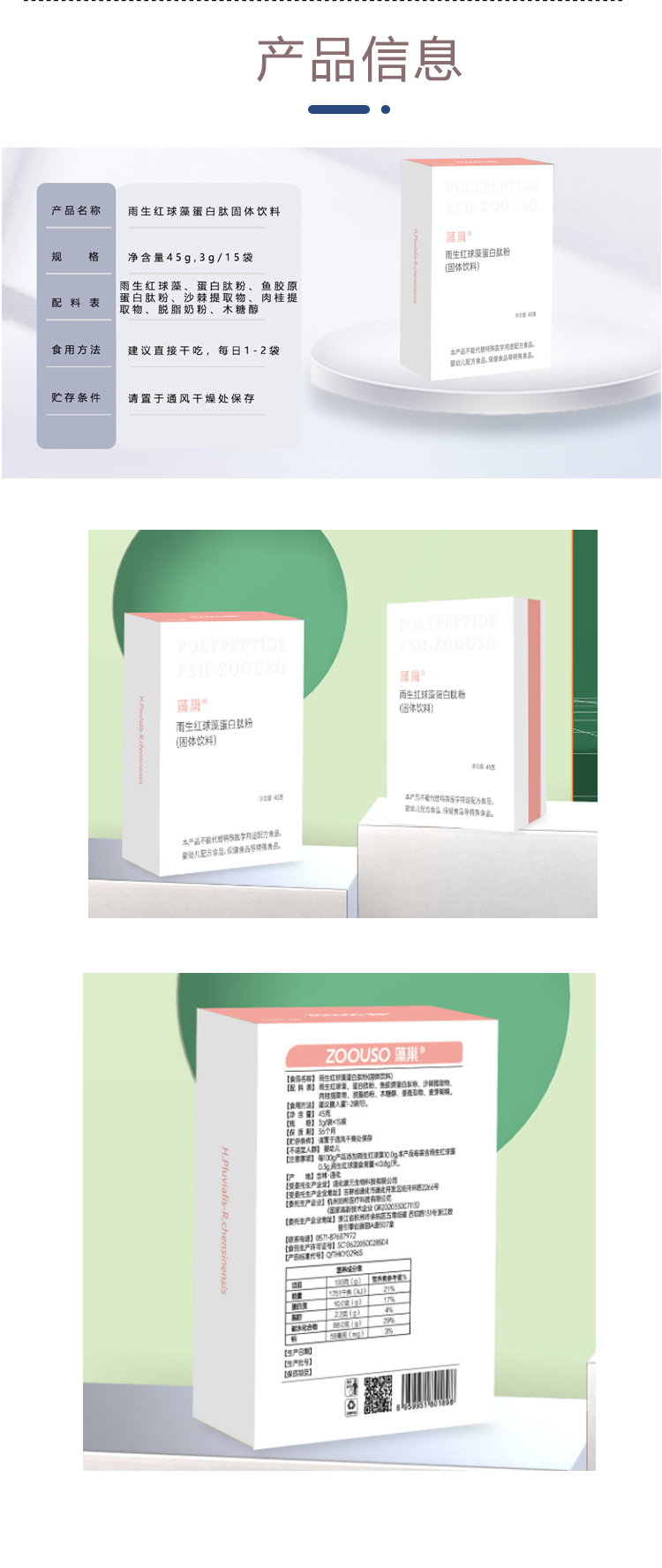 【本品有发明专利】藻巢 雨生红球藻蛋白肽粉 45g
