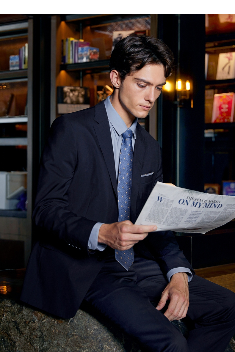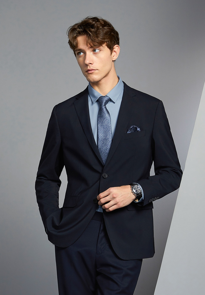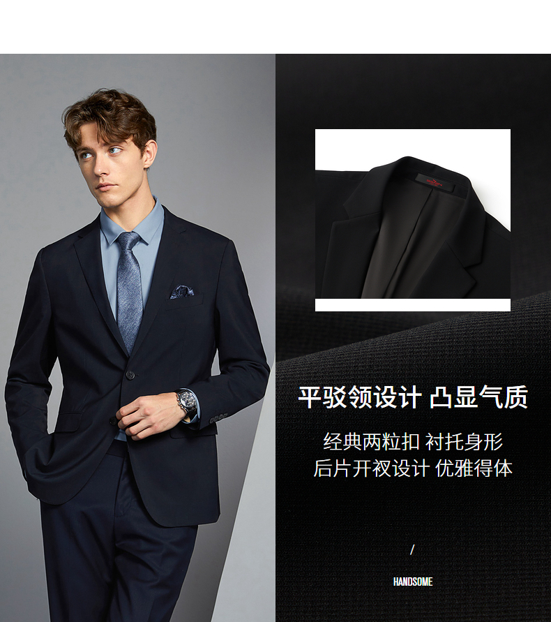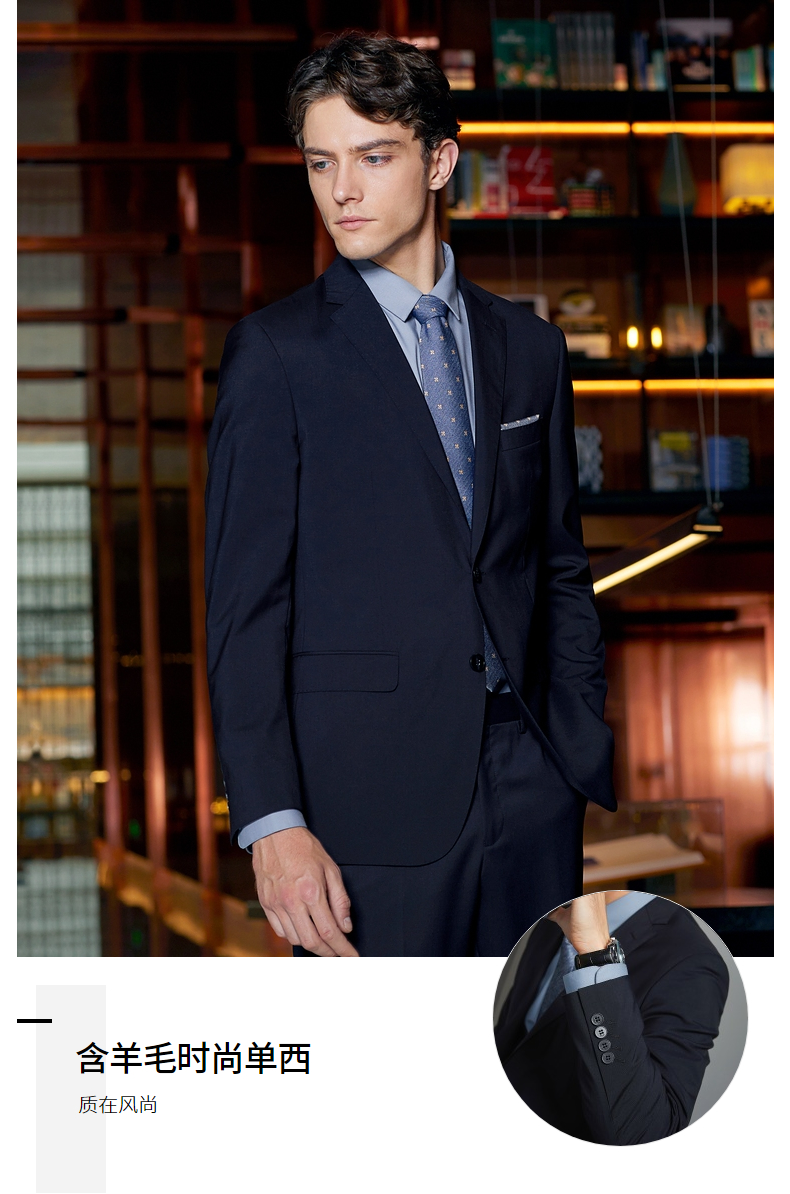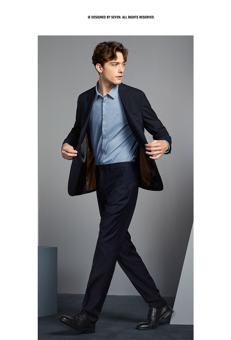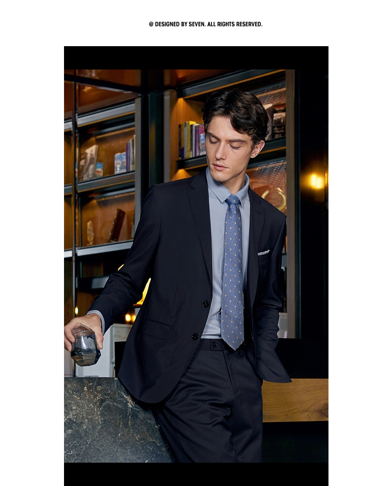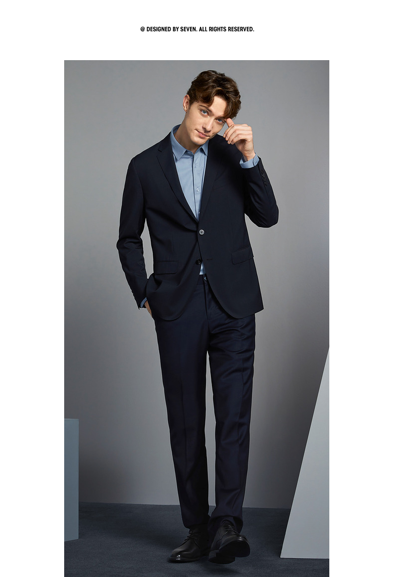 【含羊毛+莱赛尔】柒牌西装外套男商务正装结婚面试黑色男士西服 126C70040
