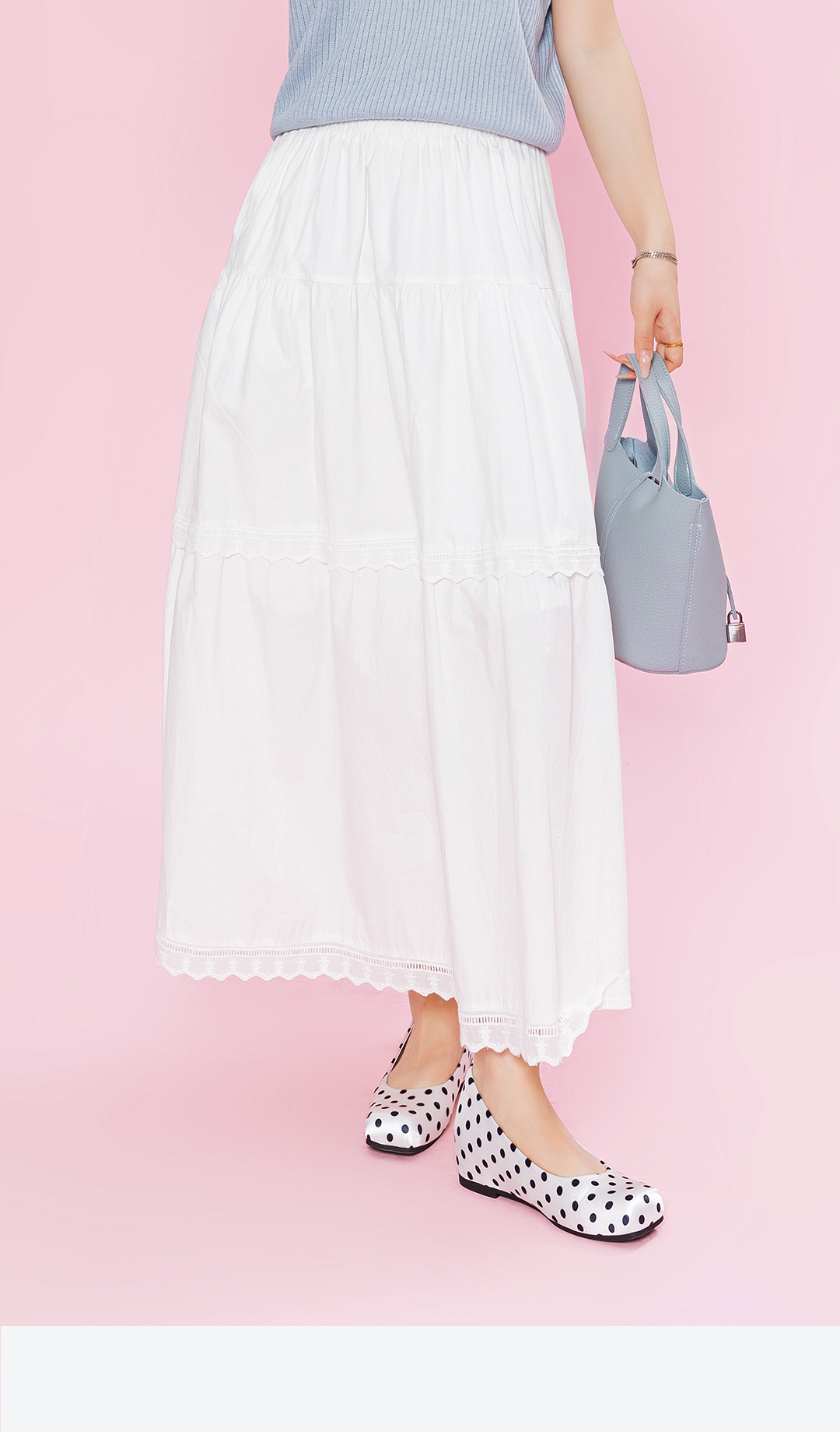 夏上新清新文艺风纯棉蕾丝花边高腰长款半身裙3262011