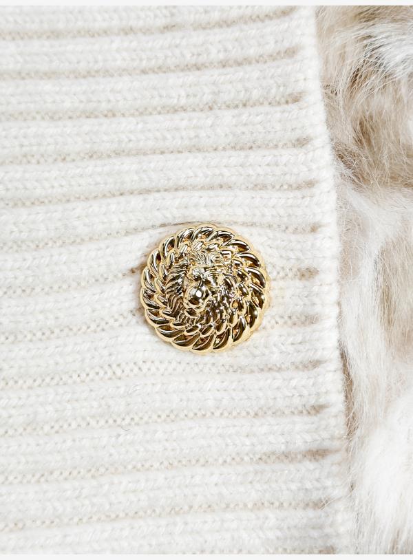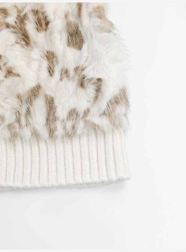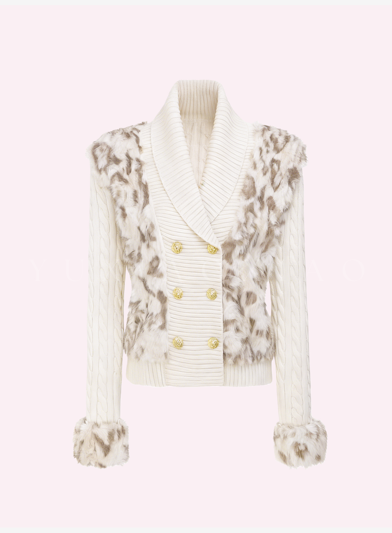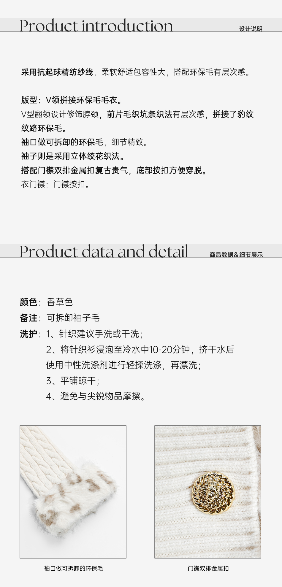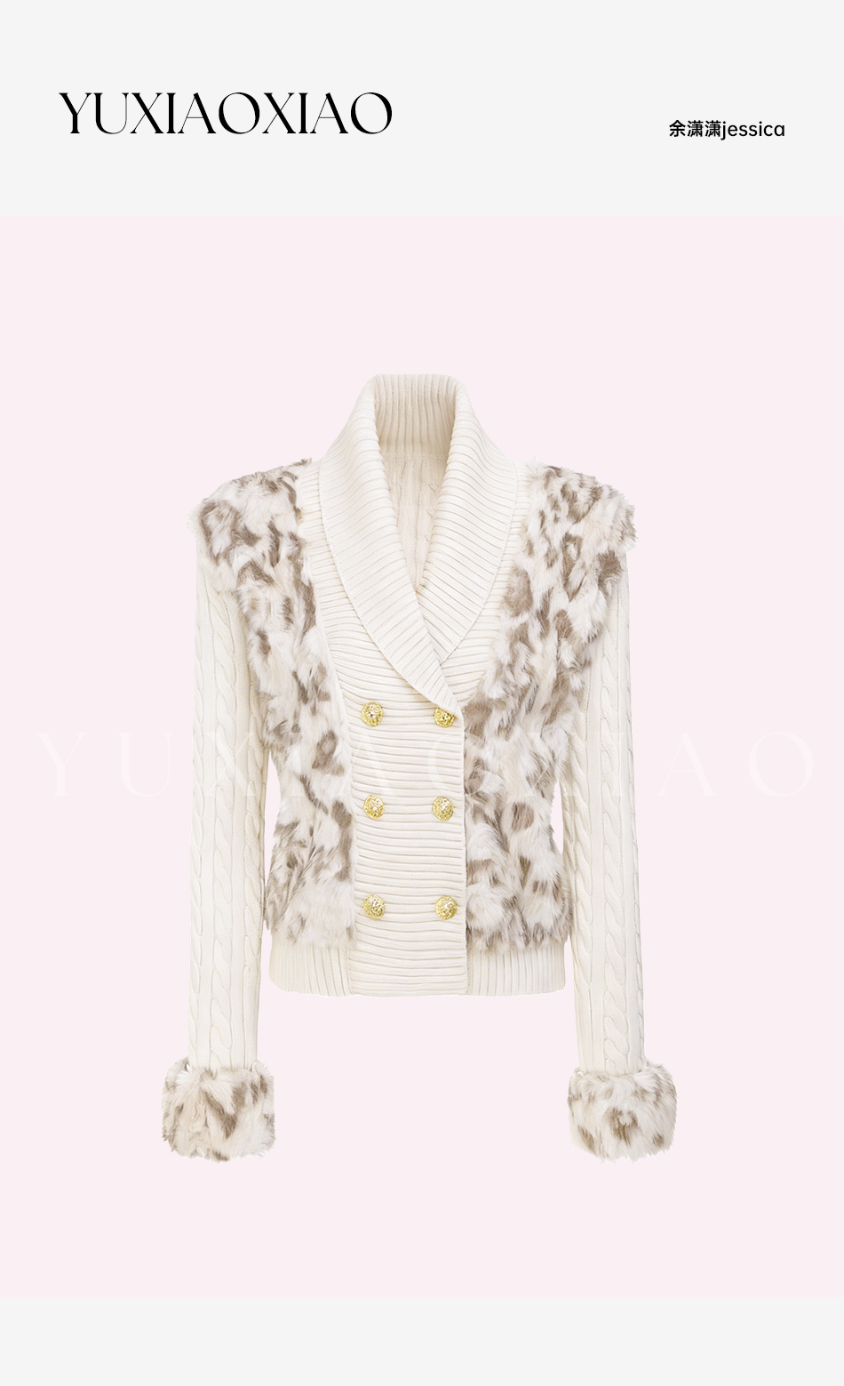 余潇潇【半熟恋人】气质金属双排扣拼接豹纹纹理环保毛V领毛衣