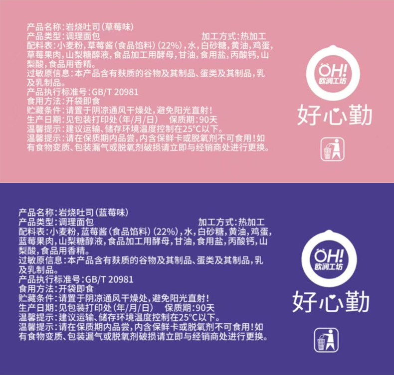 【壹得利 岩烧奶酪吐司】草莓+蓝莓口味有草莓果酱味和芝士的味道 酸酸甜甜