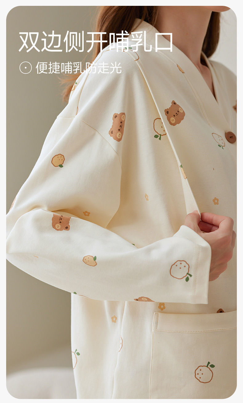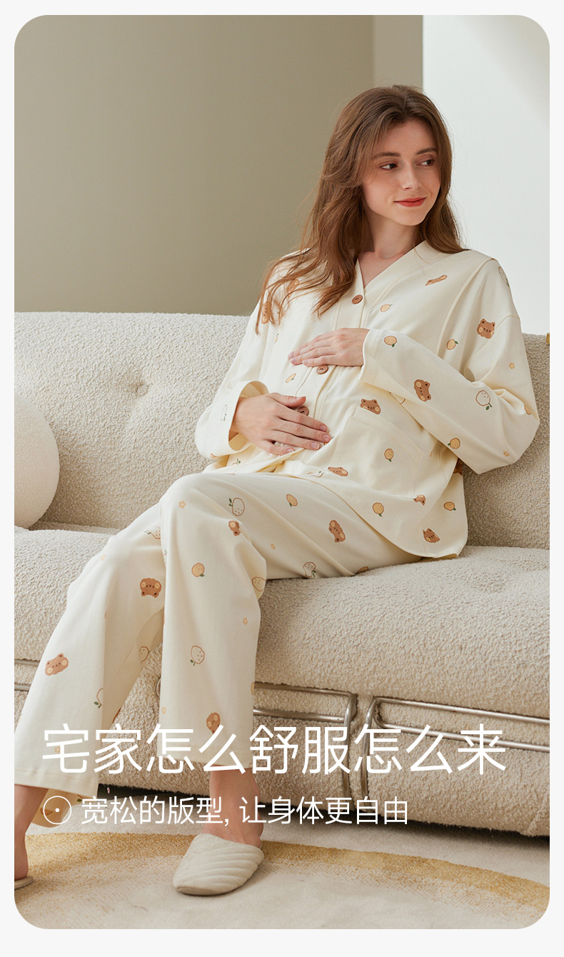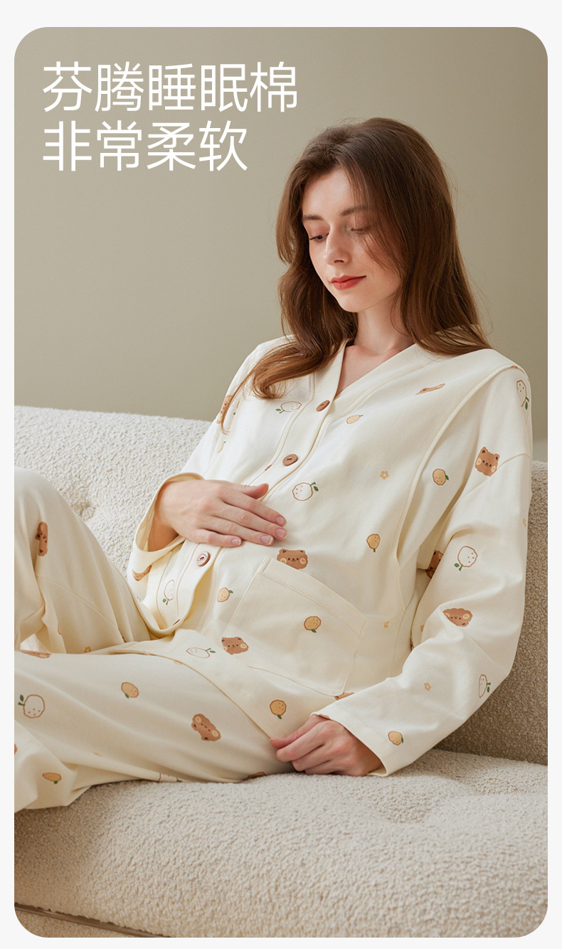 芬腾月子服孕妇睡衣女春秋季纯棉长袖套装产后产妇喂奶哺乳家居服