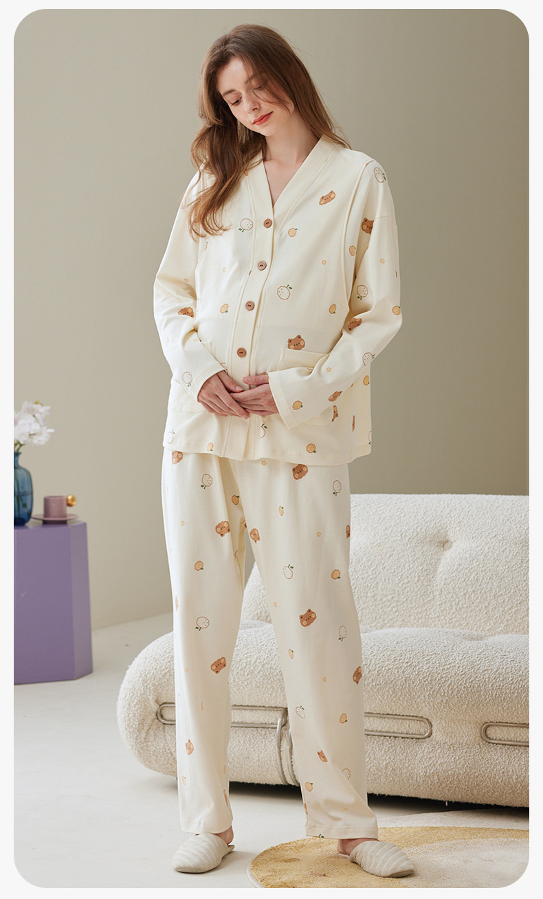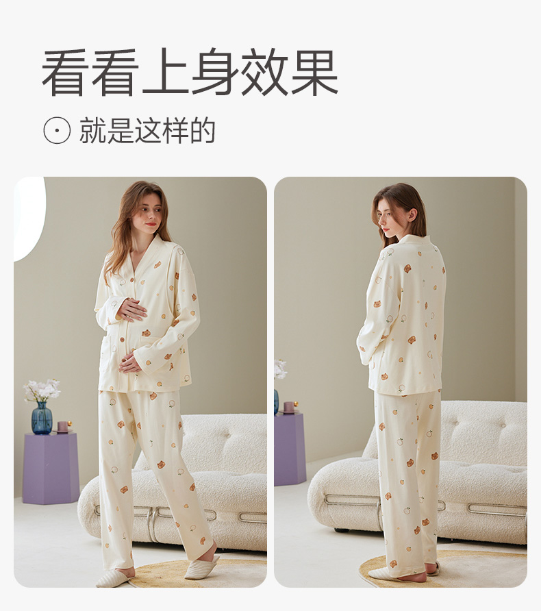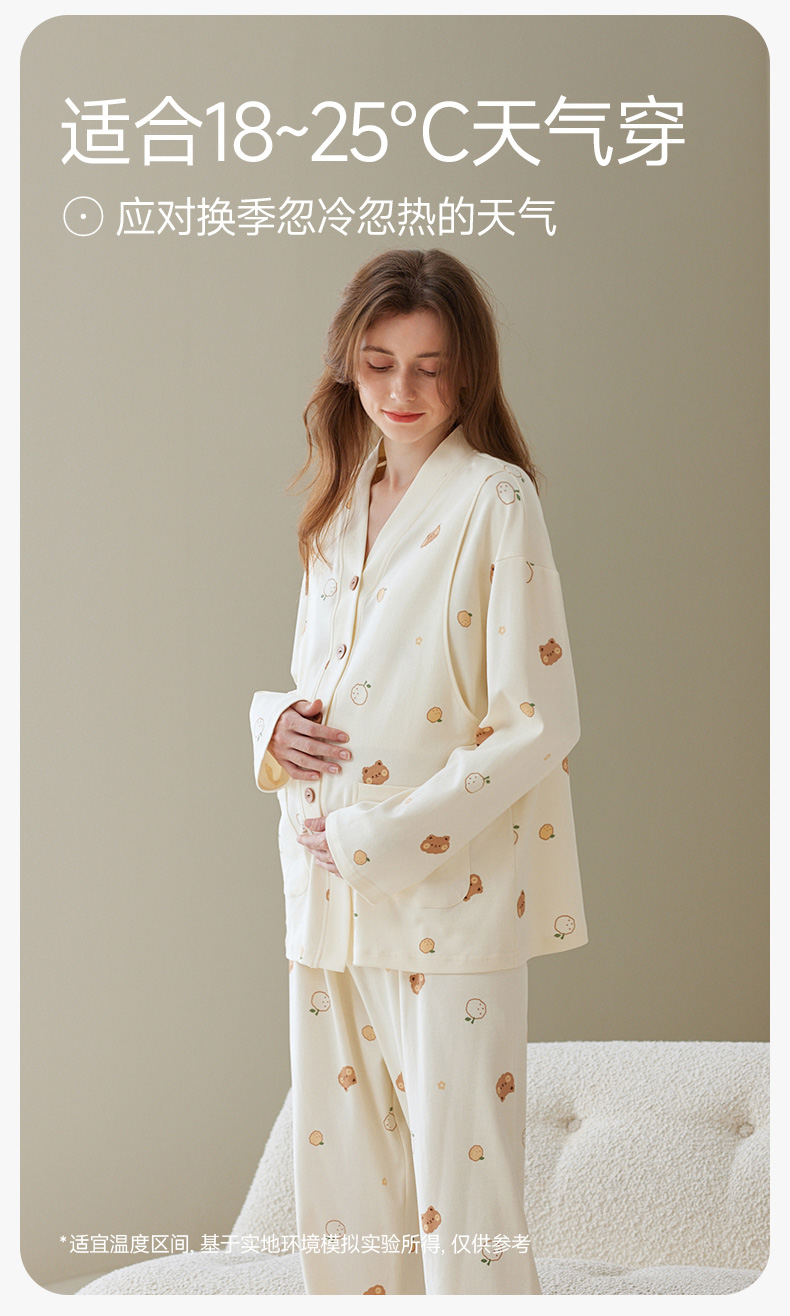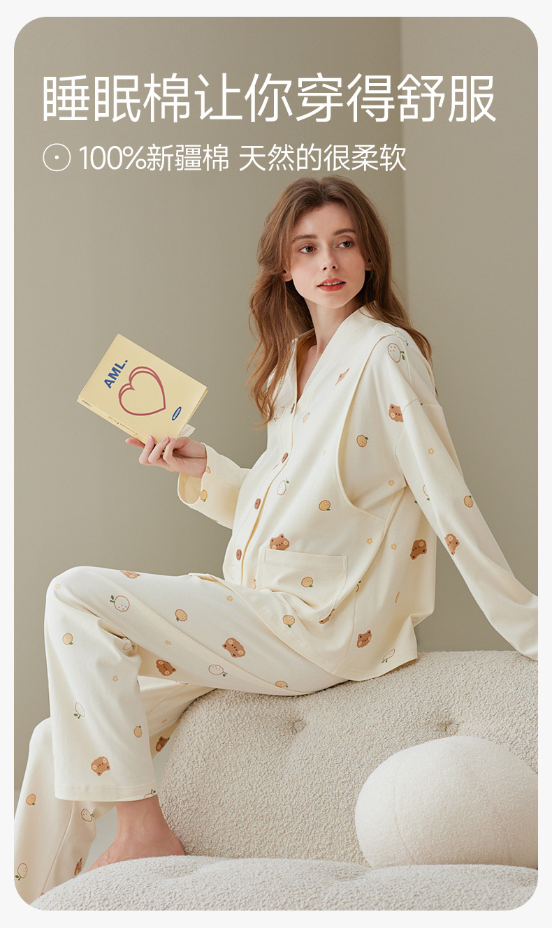 芬腾月子服孕妇睡衣女春秋季纯棉长袖套装产后产妇喂奶哺乳家居服