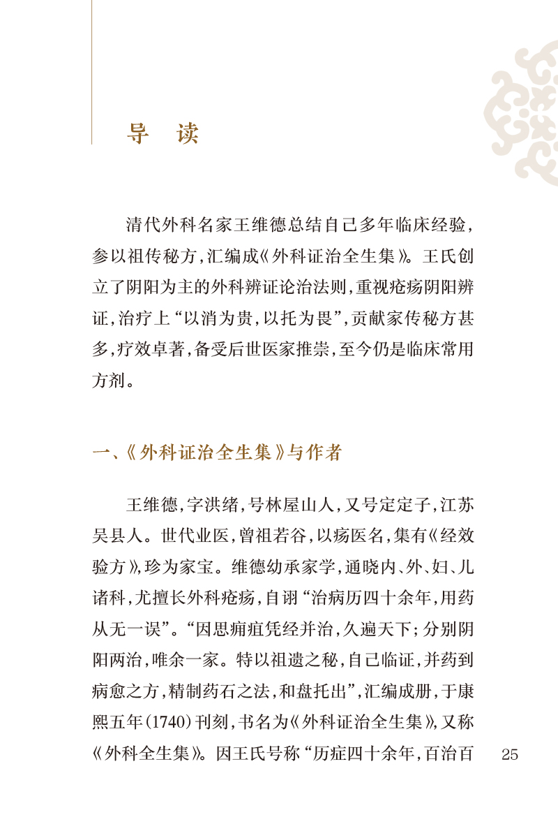 新版 外科证治全生集 中医临床必读丛书重刊 清 王维德 撰 胡晓峰 整理 中医外科古籍疮疡阴阳辨证 简体横排白文本 人民卫生出版社