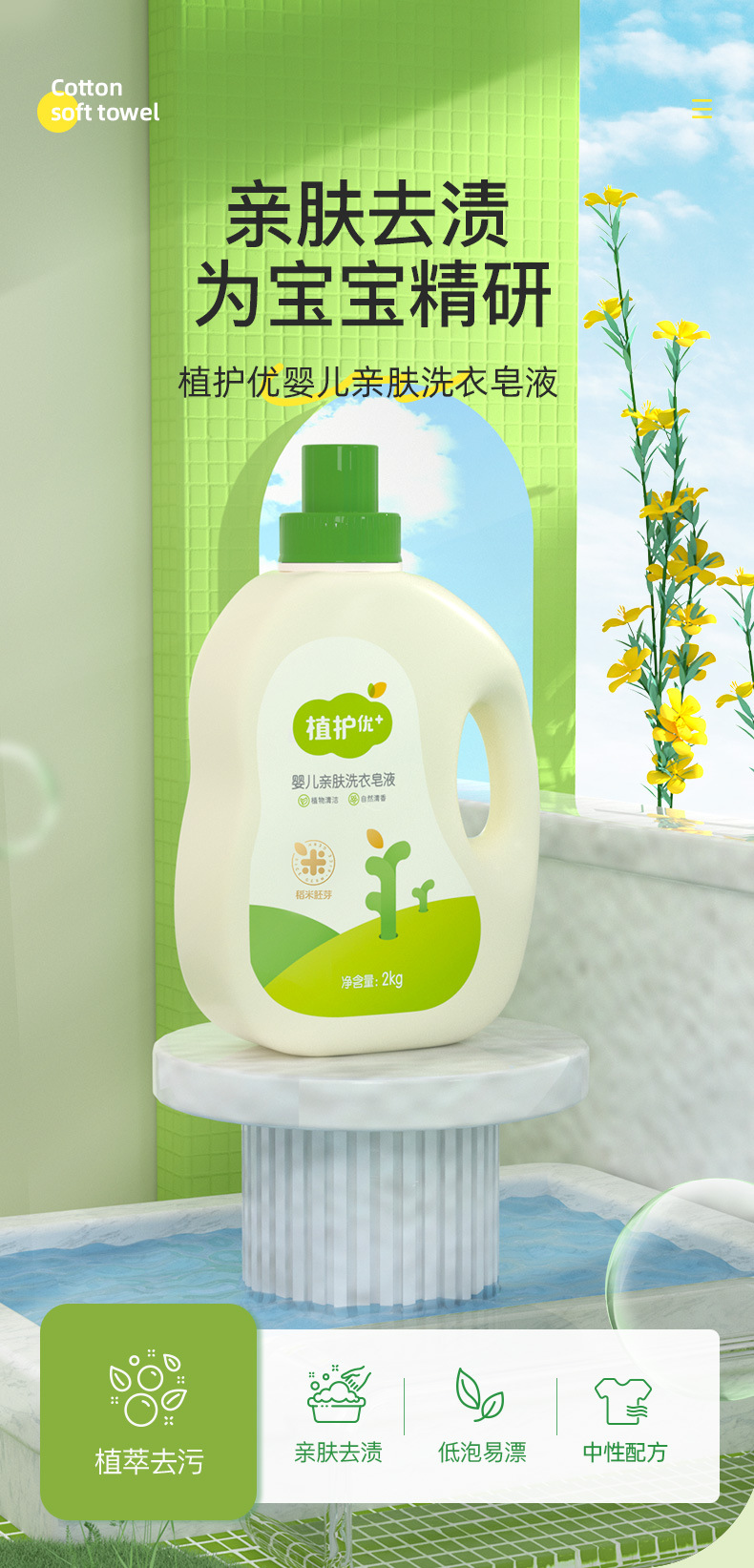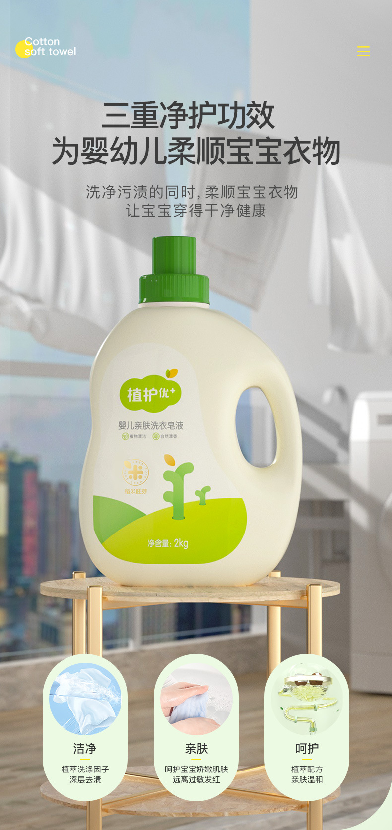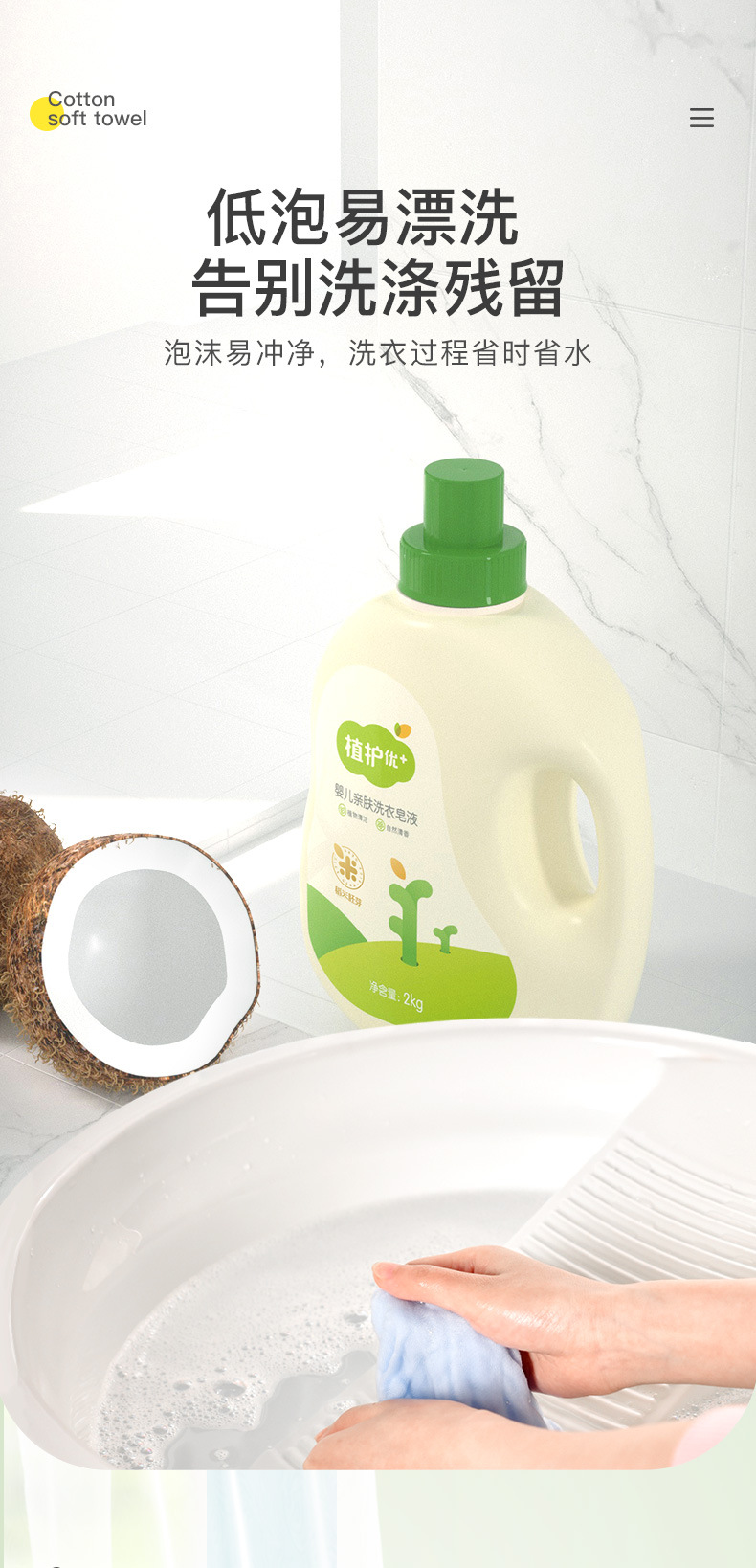 【温和洁净!椰油护衣】植护婴儿洗衣液家用衣物超香去污渍亲肤洗衣皂液整箱批发 2kg 1瓶。ry