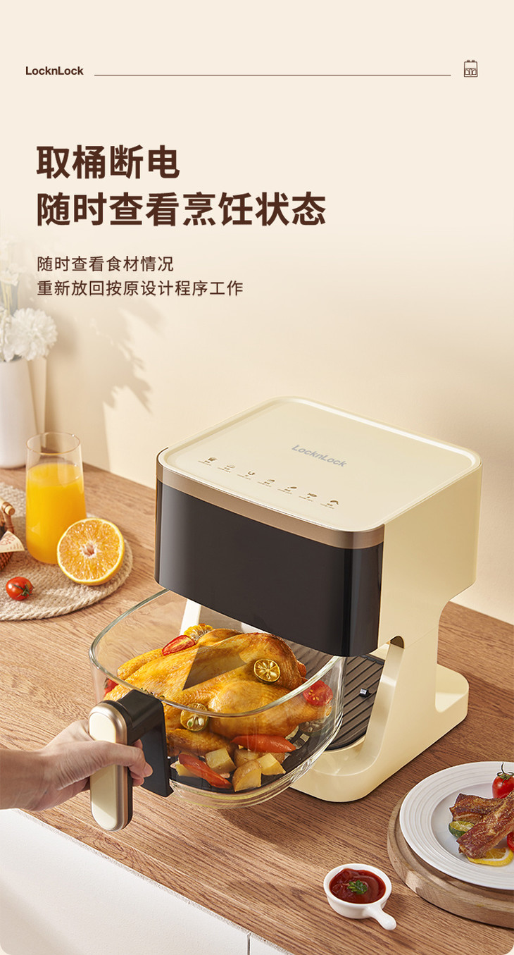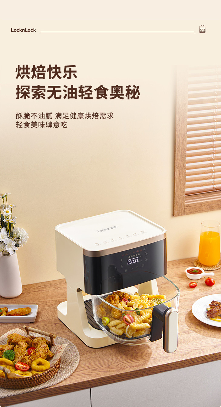 关键是,食物炸到什么程度,一目了然 不耽误手头上的事情,走过来瞅一眼就行 厨房小白能更灵活地调整食材 焦嫩程度和烘烤时间,避免翻车 不像普通空气炸锅,是完全密封的环境 烤成什么样,是不是糊了,根本不知道 只能频繁拉开炸锅查看 费时费力,还会影响口感 所以很多踩过坑的姐妹都说: 要买就买可视化的,颜值高!又方便!