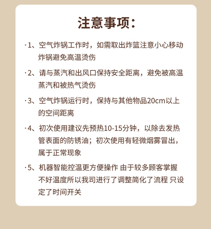 一键操作,简单便捷,即使是厨房小白、老年人,也可以使用哦!! ◎4.5L大容量,可放入一只整鸡 买过空气炸锅的人,一定后悔一件事 那就是:买小了,啥也放不下,还得炸两次。 要买就买大的!卡屋这款拥有4.5L大容量 可放6只蛋挞、5只鸡腿 一只整鸡,4寸披萨一家人吃足够了。 轻松实现炸物自由 甚至可以在小区楼下开小卖部~