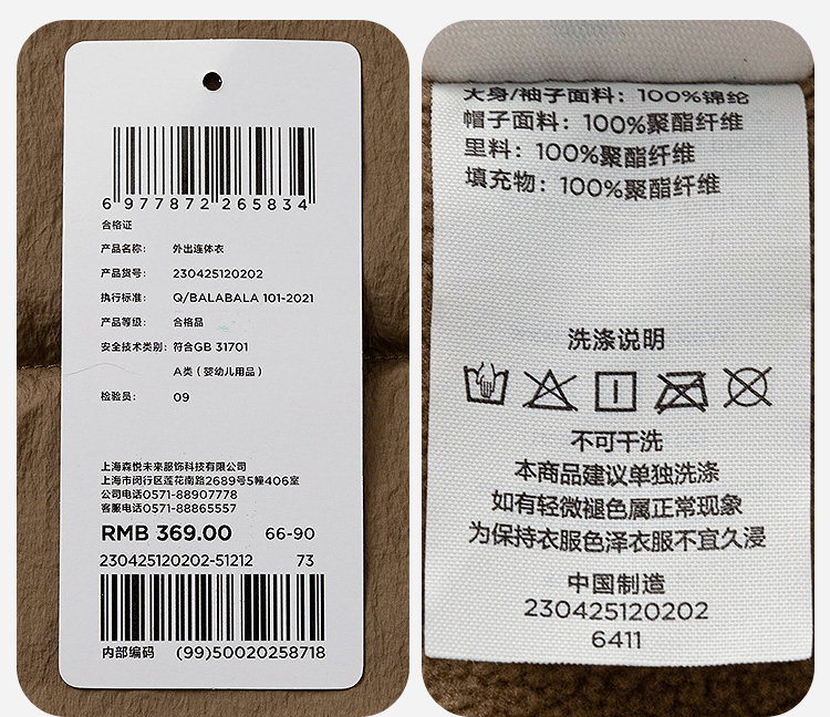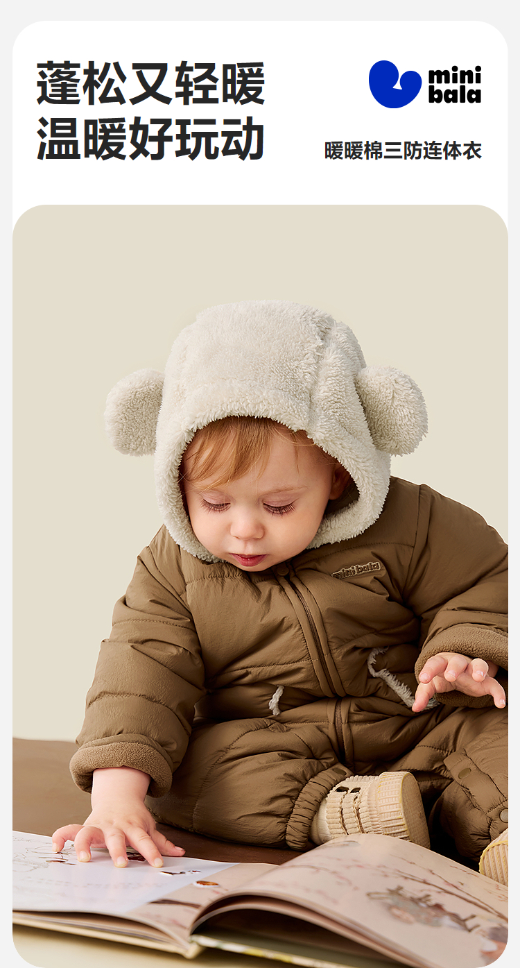 【暖暖棉】迷你巴拉婴儿衣服男女宝宝三防抗湿冷棉服轻暖连体衣