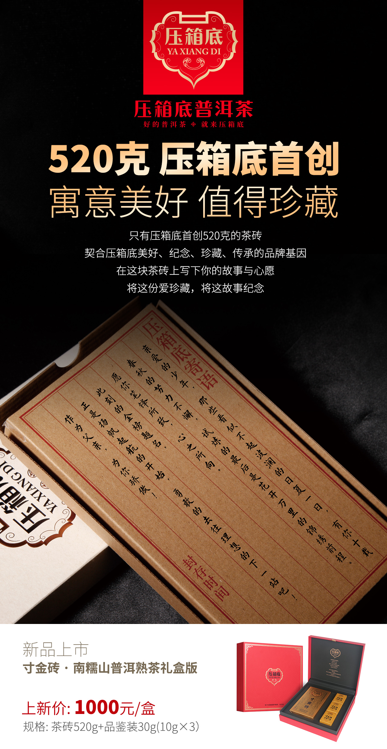 压箱底品牌,专注于打造可收藏、可传承、可送礼、可纪念人生重要时刻的中高端茶品。