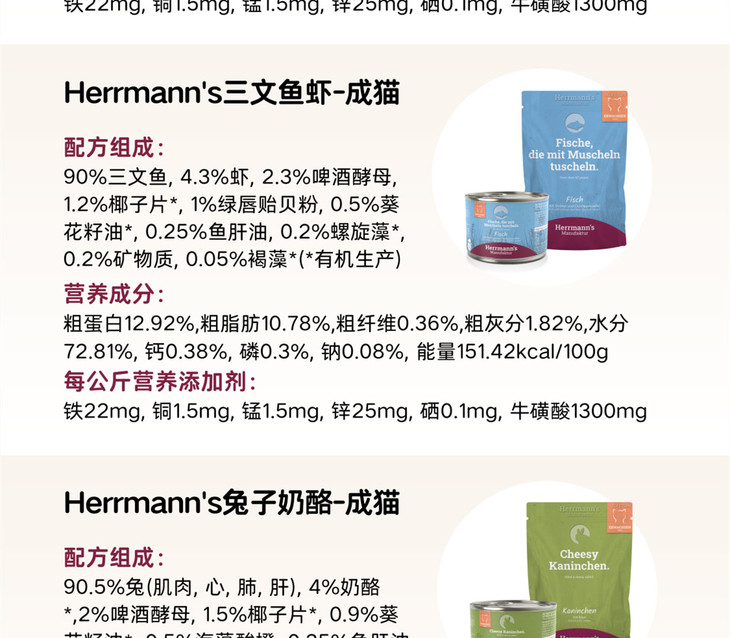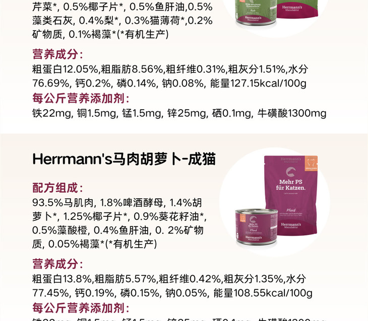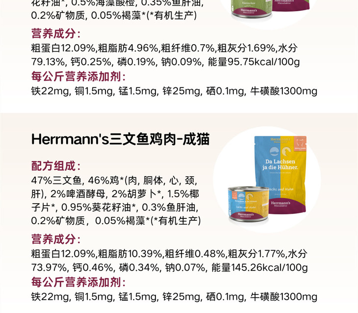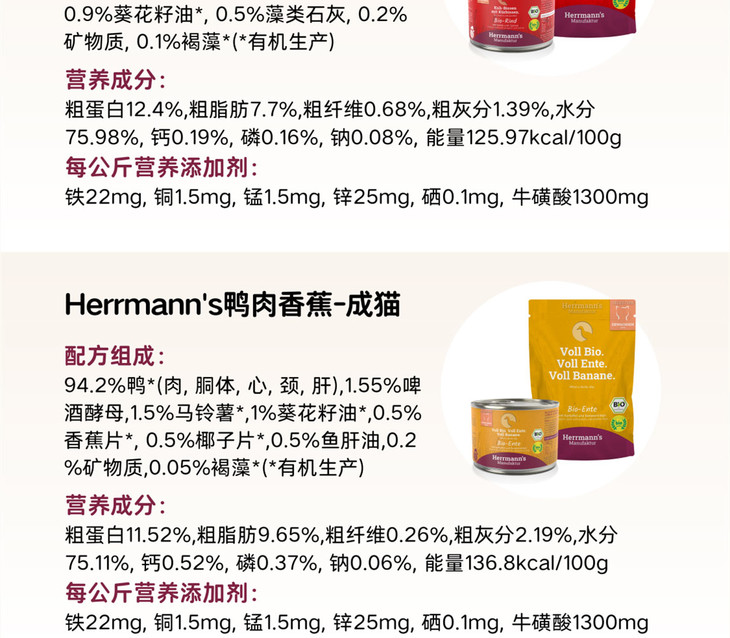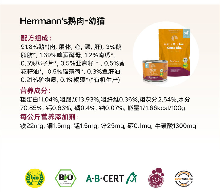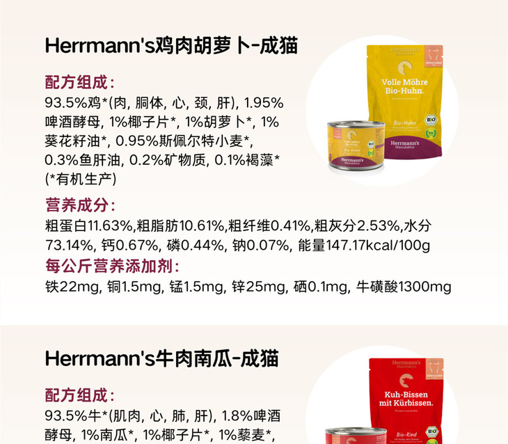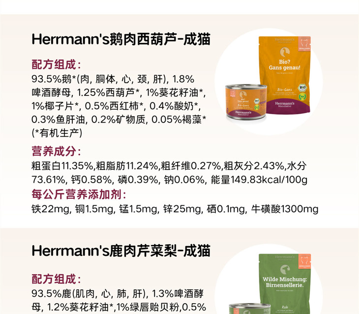 德国Herrmann's赫尔曼有机猫主食罐头餐包罐头