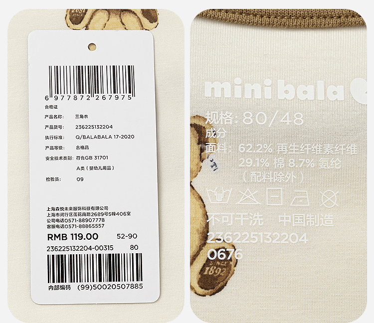 【99元任选3件】迷你巴拉新生婴儿爬服防螨抑菌速干宝宝天丝三角衣迪熊联名