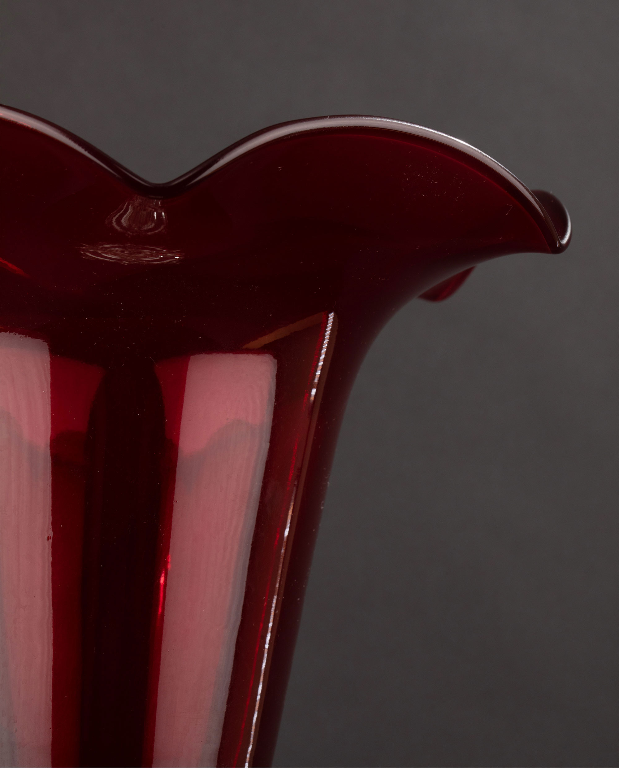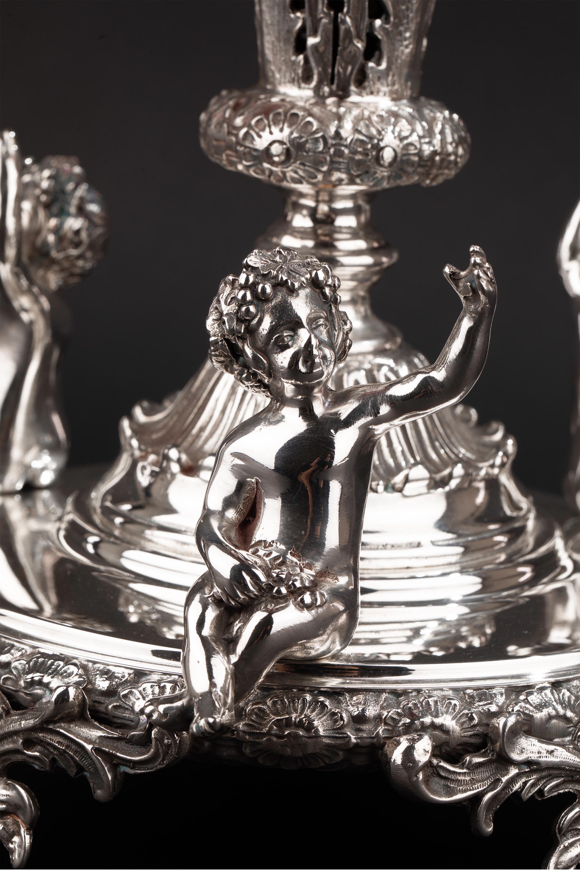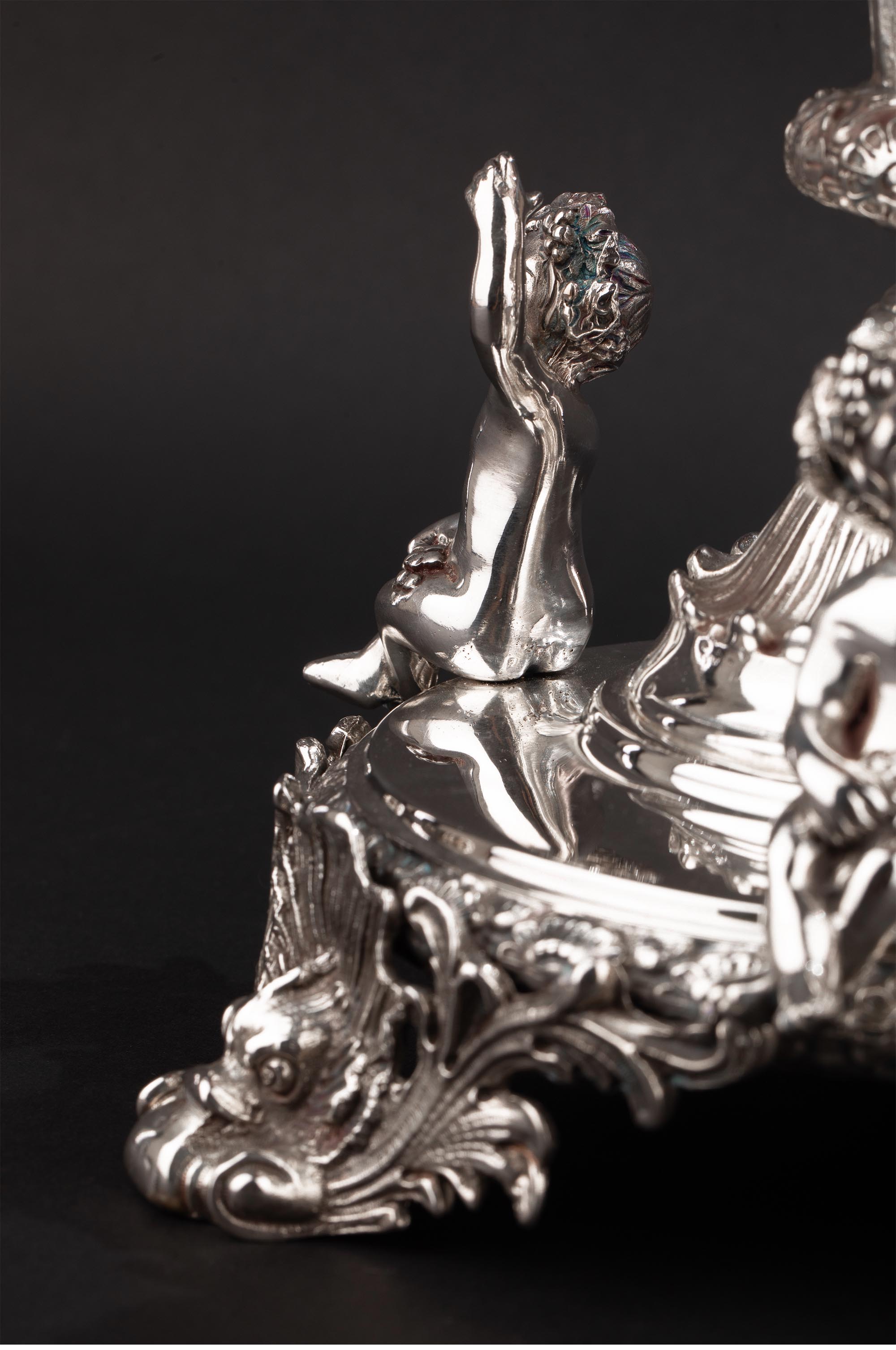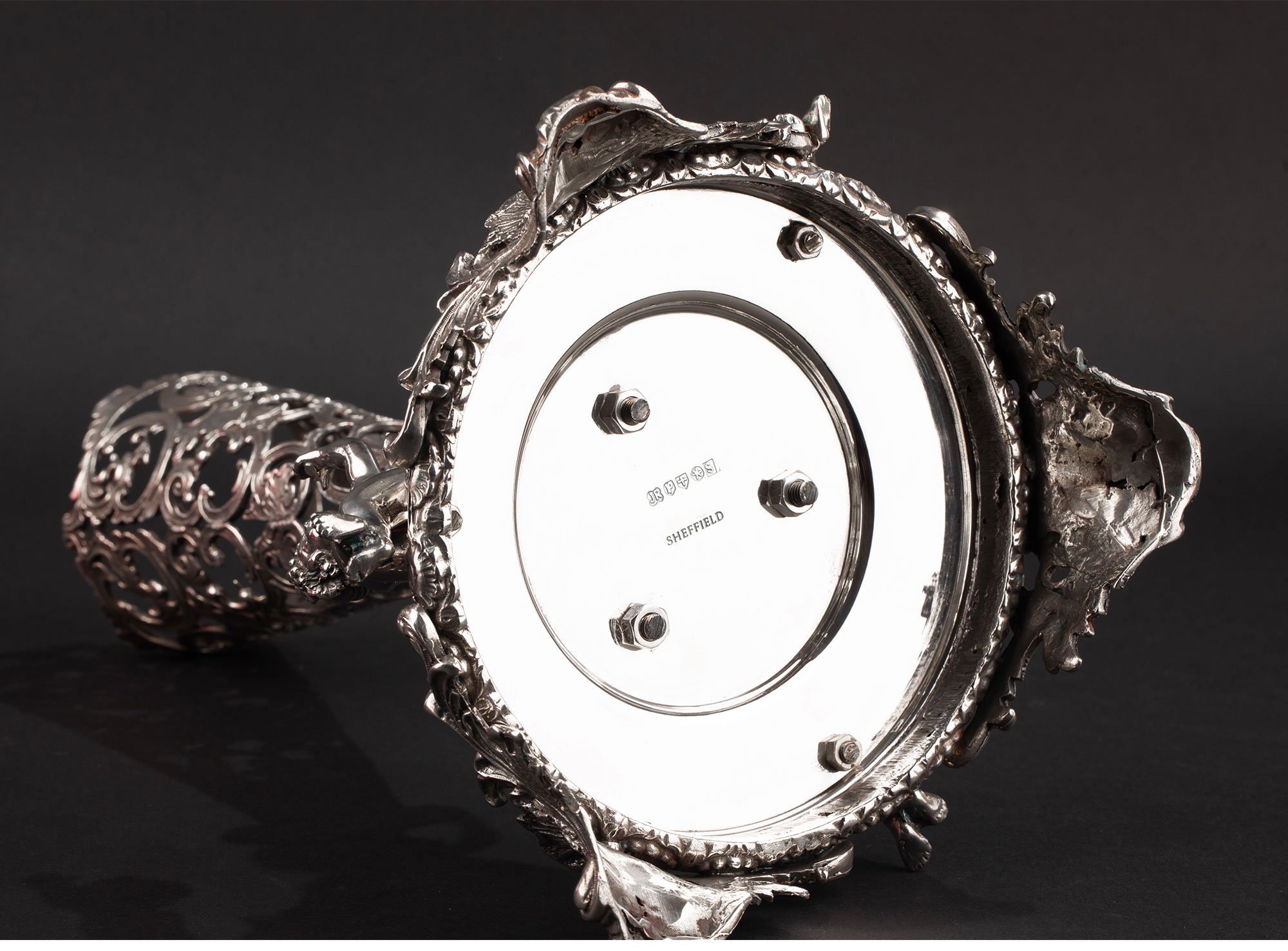 1920-1930年代英国出品小天使主题镀银精雕镶嵌暗红玻璃花瓶一对