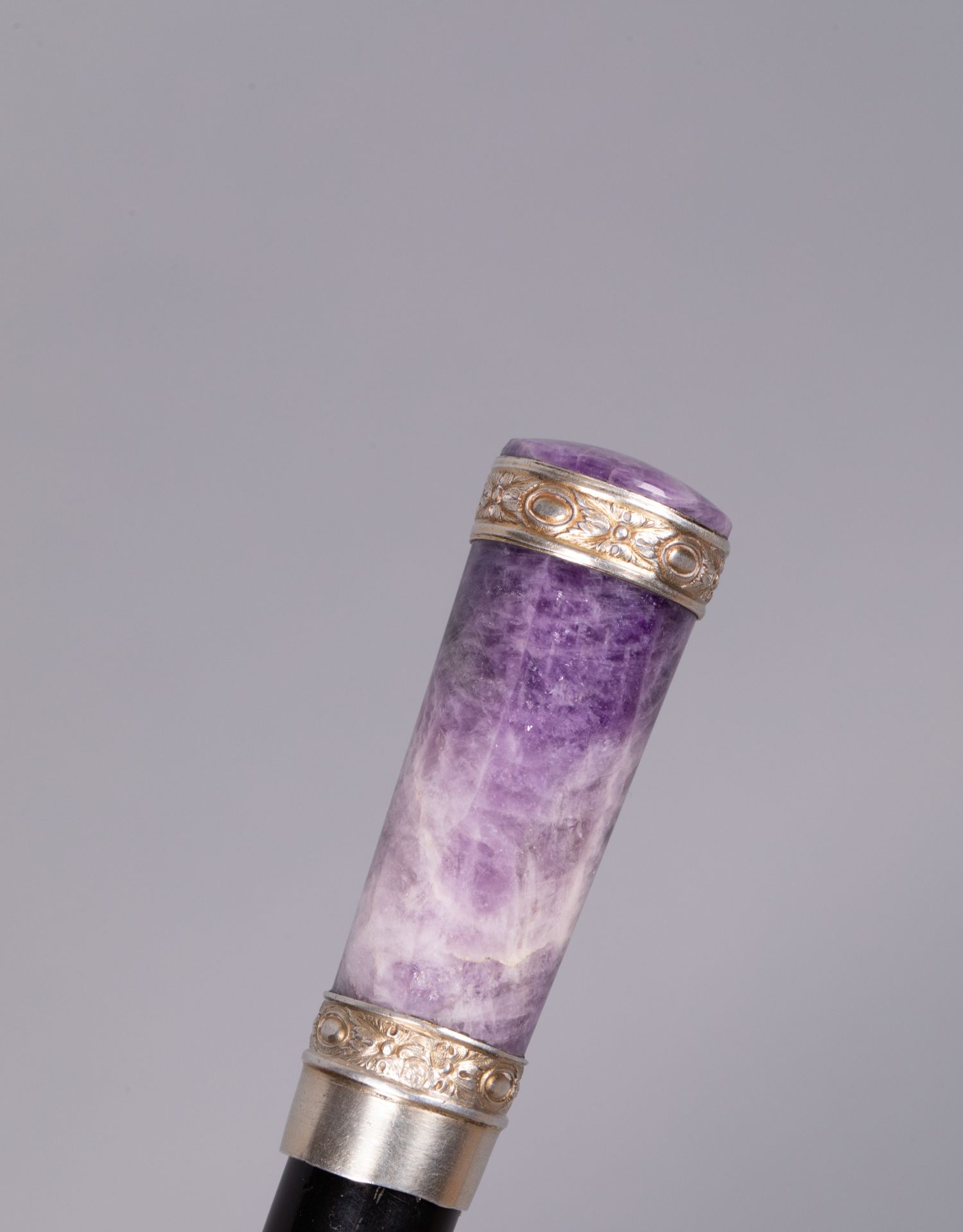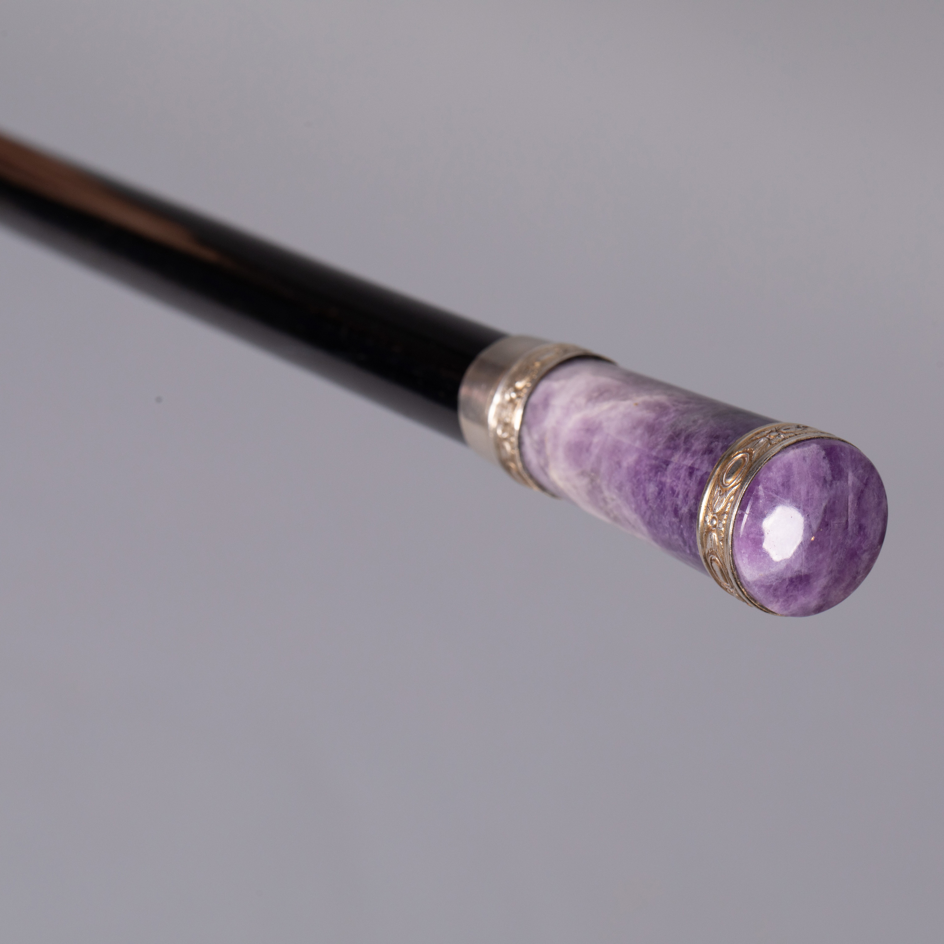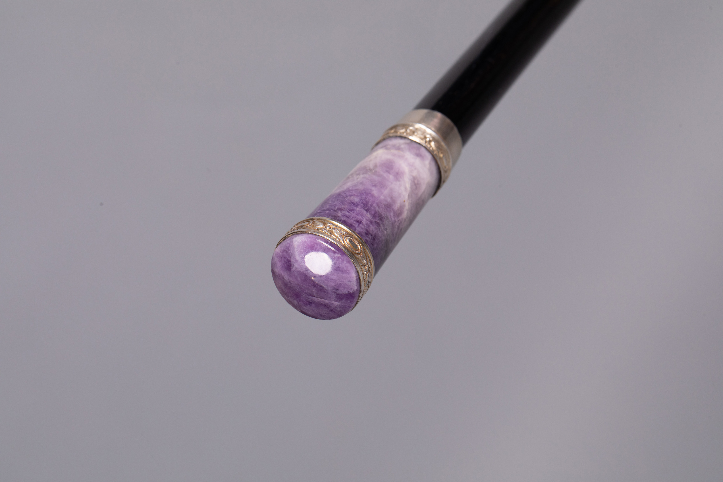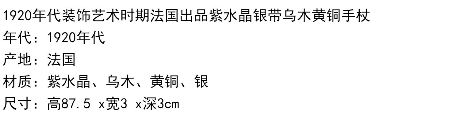 独角鹿西洋古董1920年代装饰艺术时期法国紫水晶银带乌木黄铜手杖