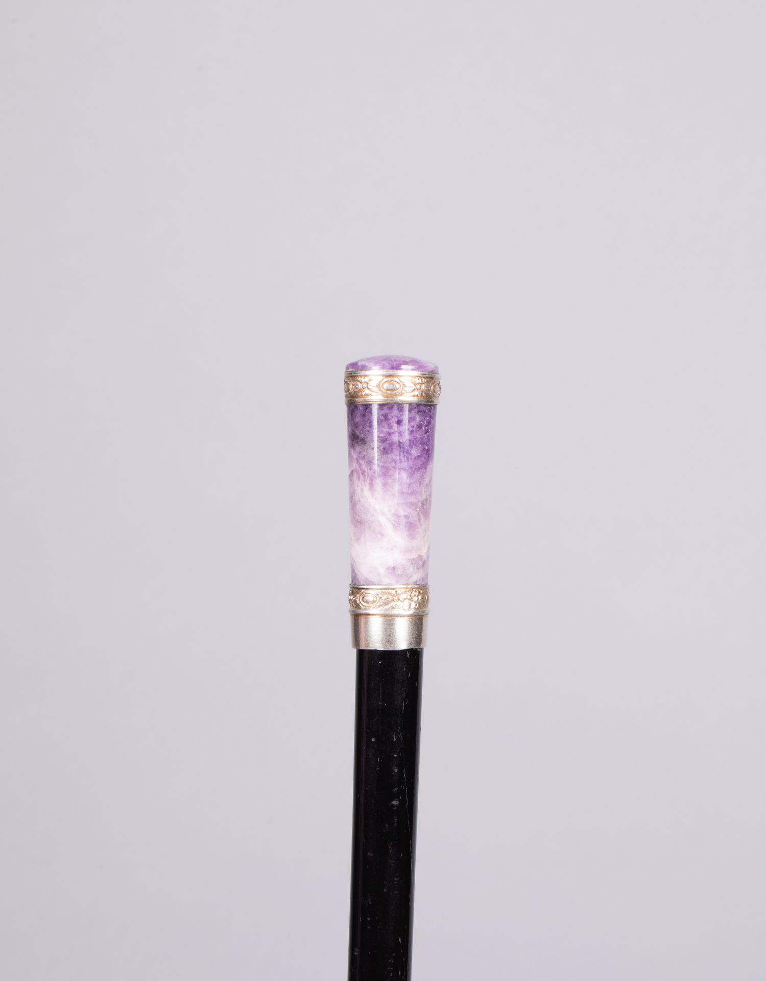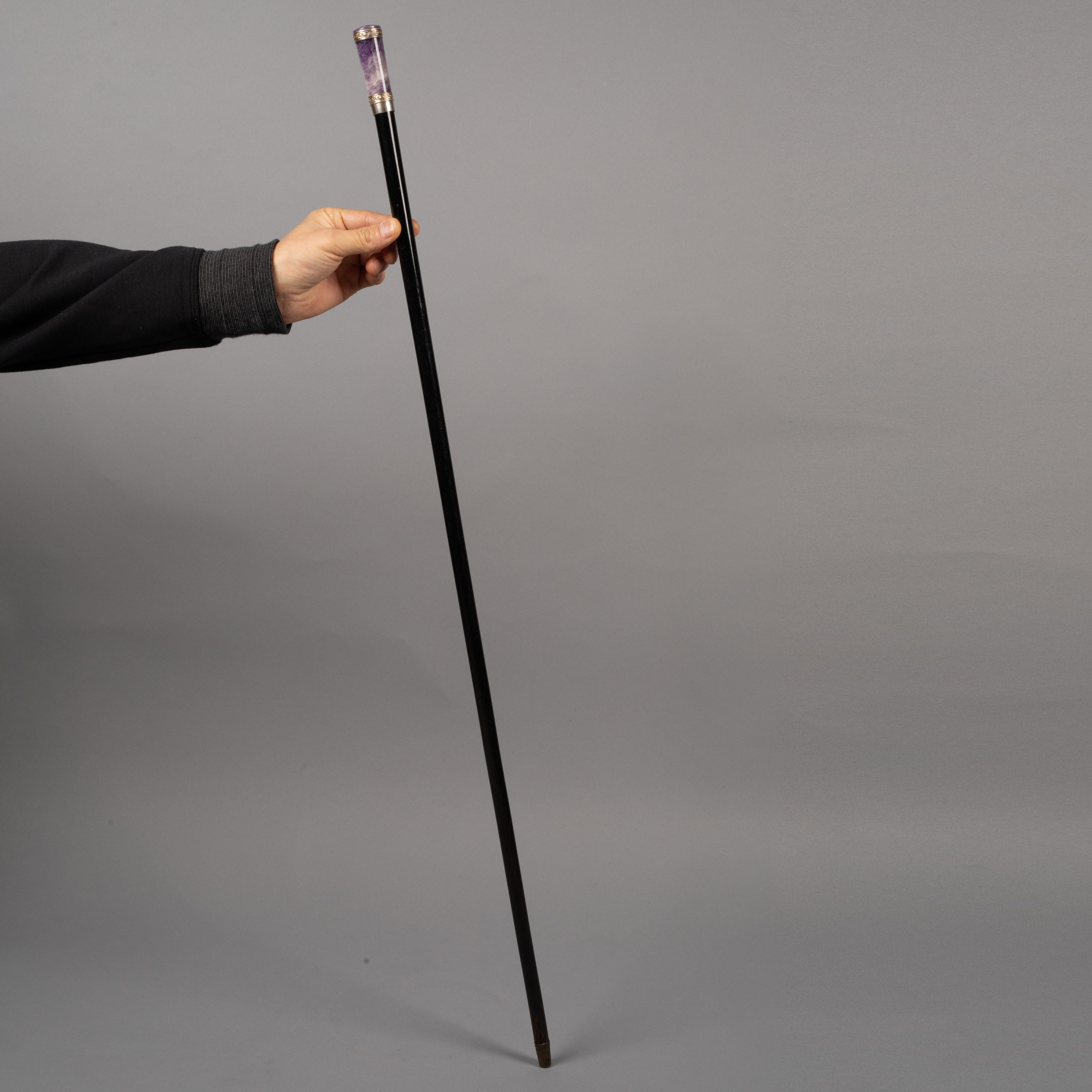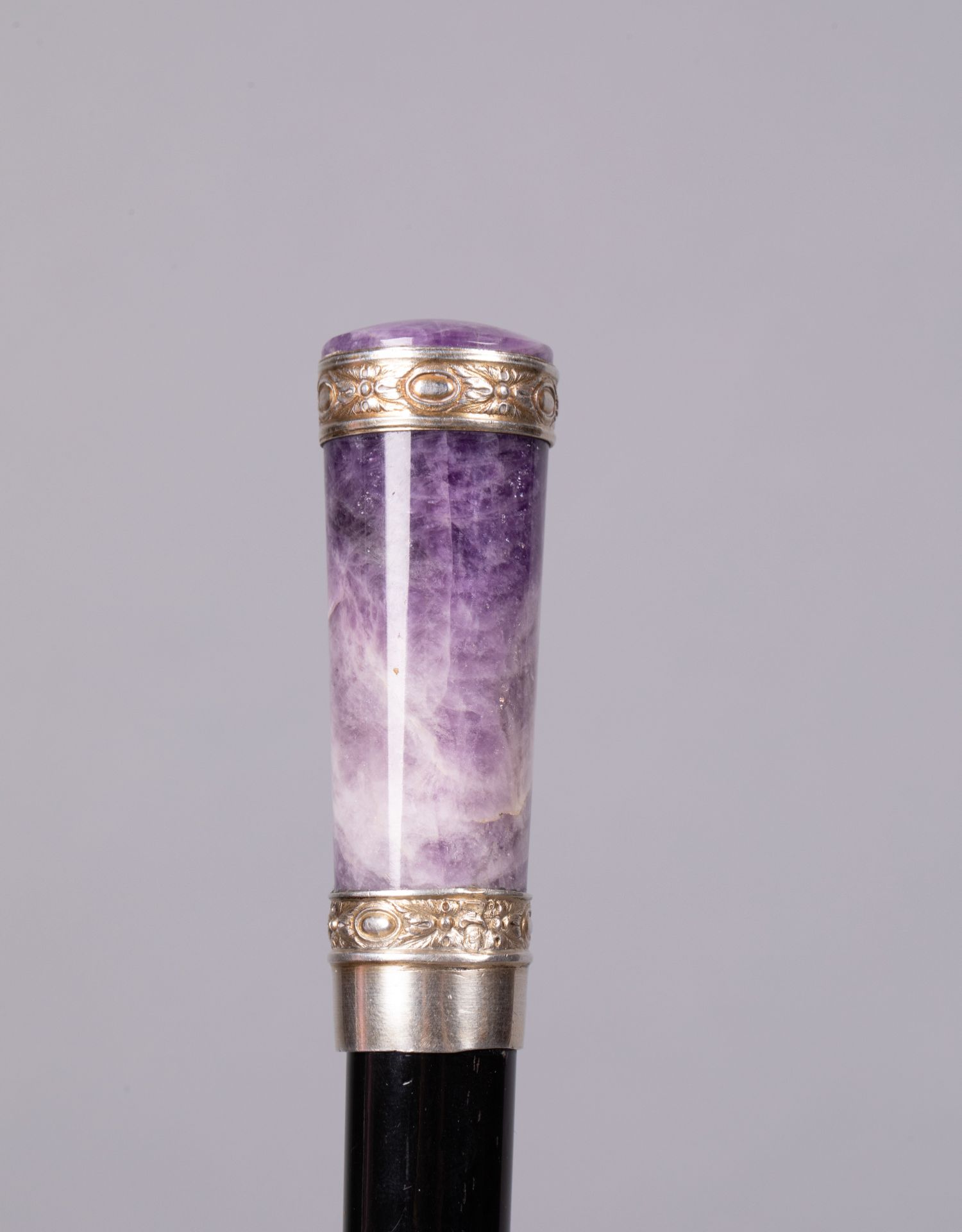 独角鹿西洋古董1920年代装饰艺术时期法国紫水晶银带乌木黄铜手杖