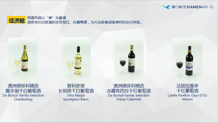 厦航经济舱用酒风格以“美”为基调