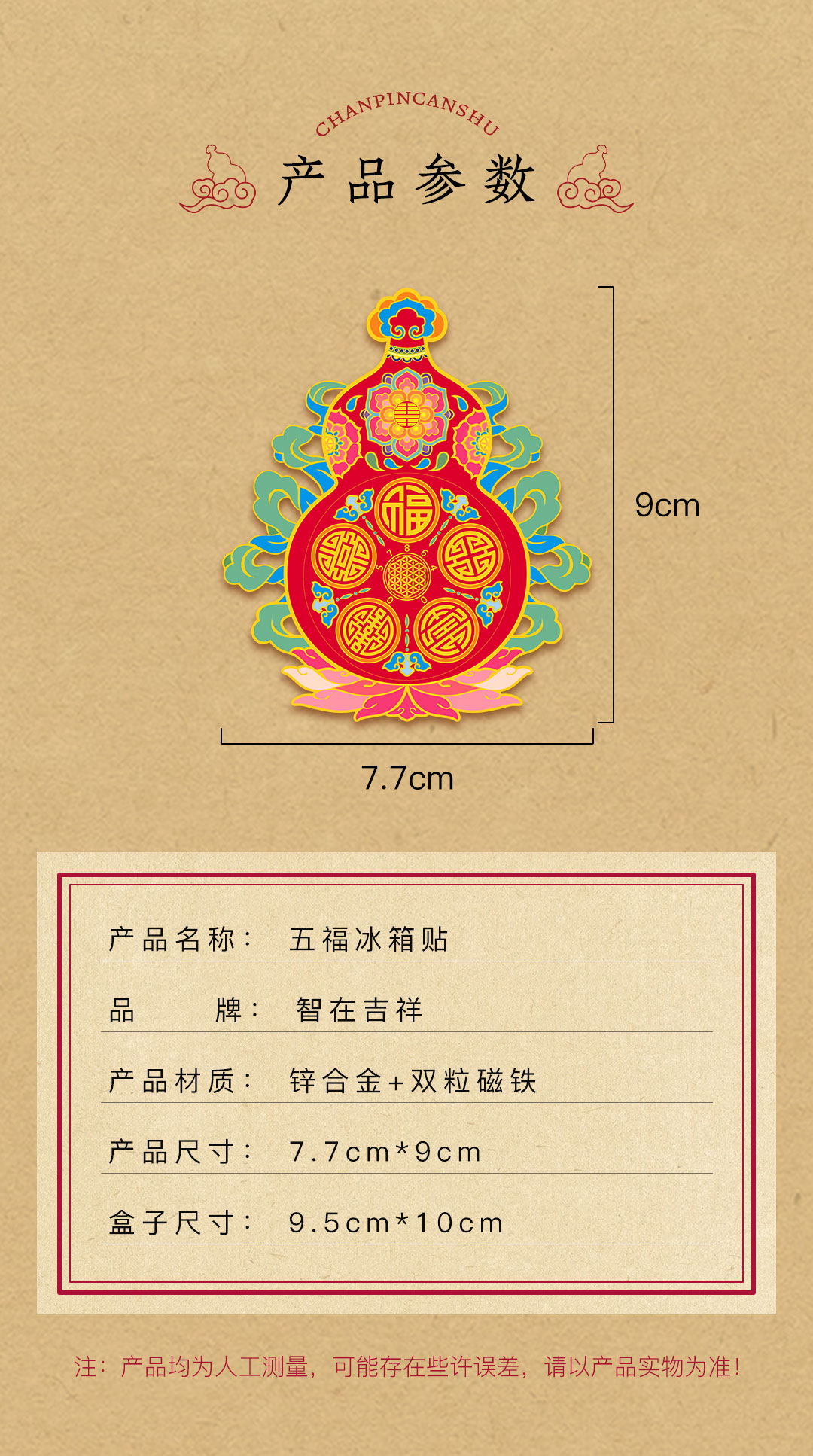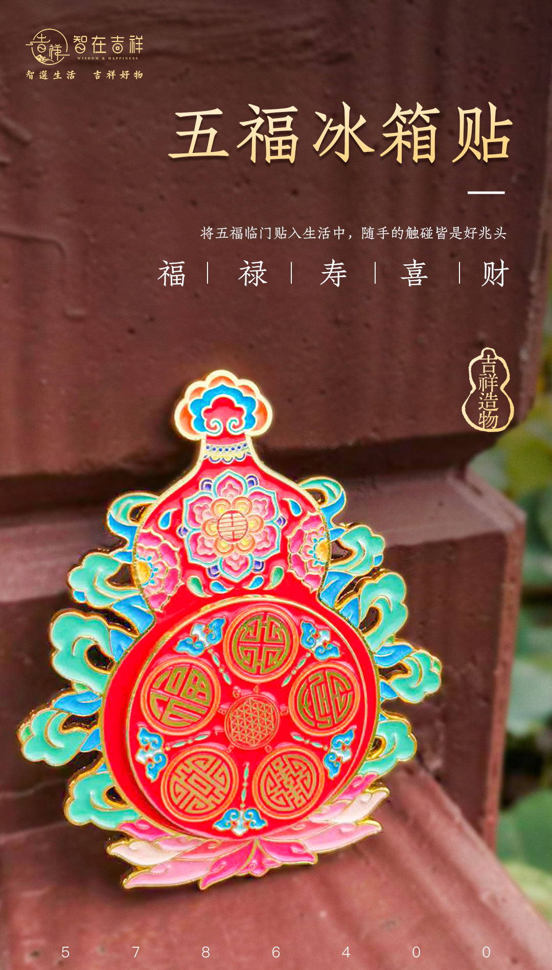 【智在吉祥】福禄寿喜财 五福 葫芦 冰箱贴
