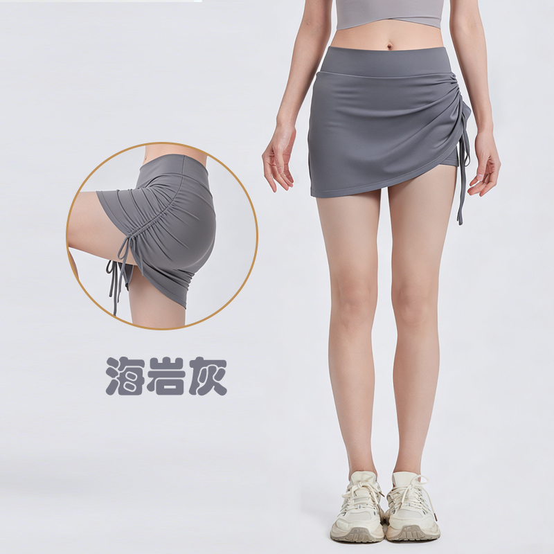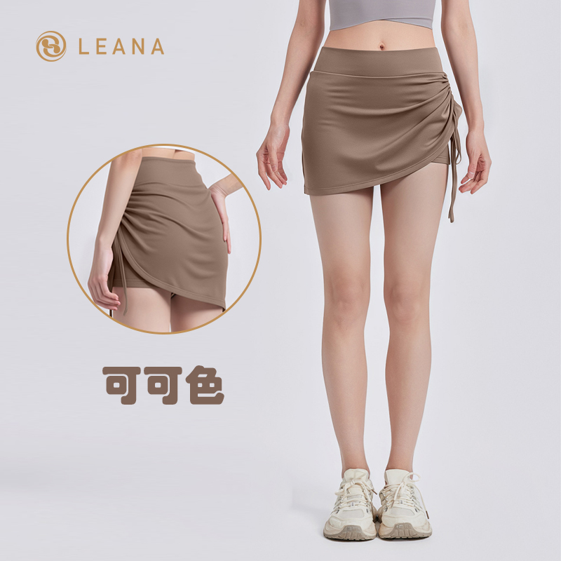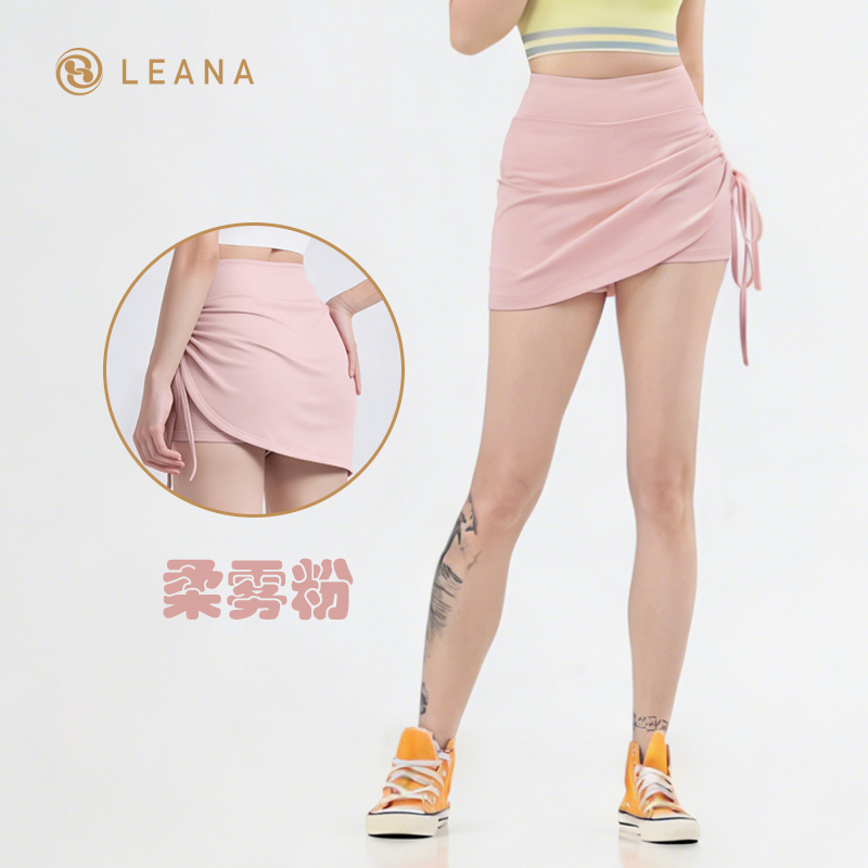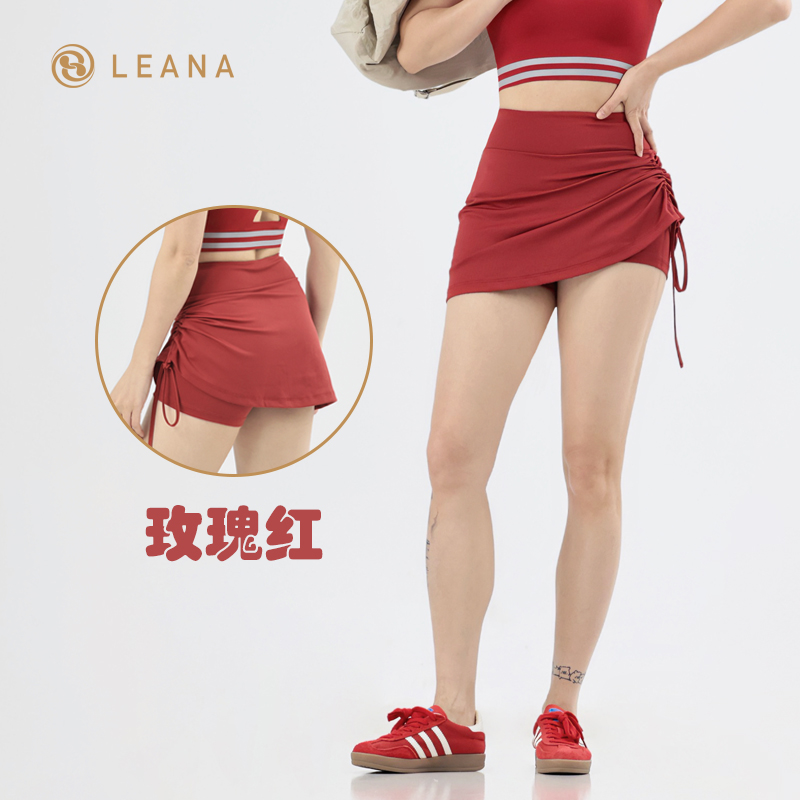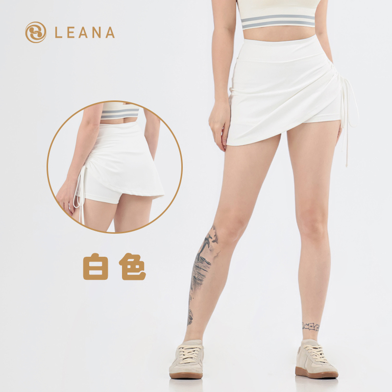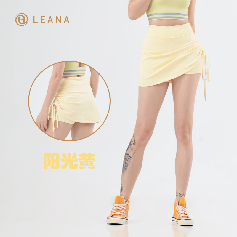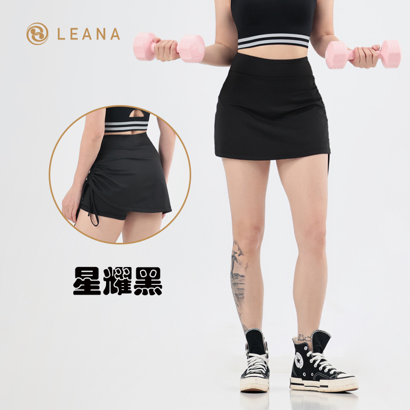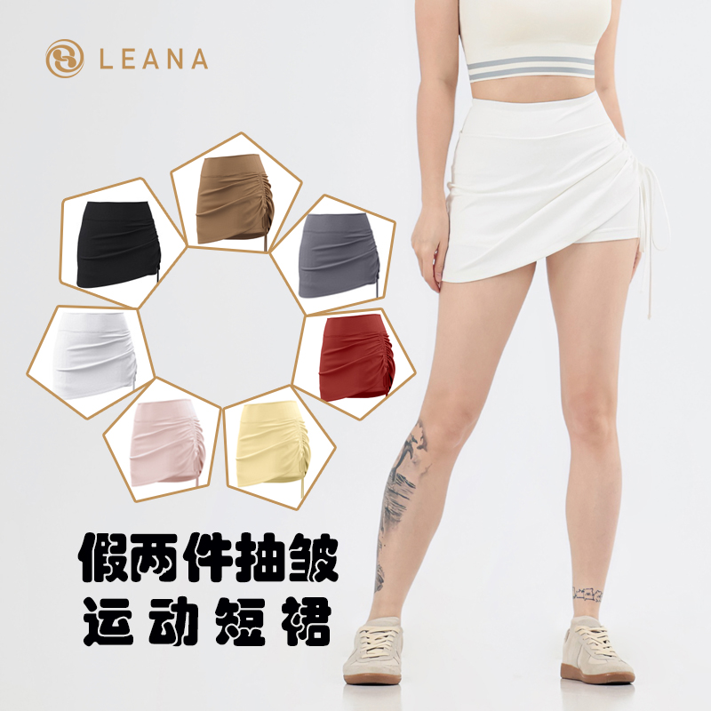 LEANA【运动短裙】假两件抽褶防走光高腰提臀跑步瑜伽健身裙NP1070