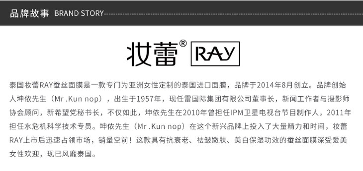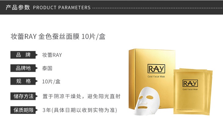 【一般贸易】泰国RAY妆蕾 金色蚕丝面膜10片/盒