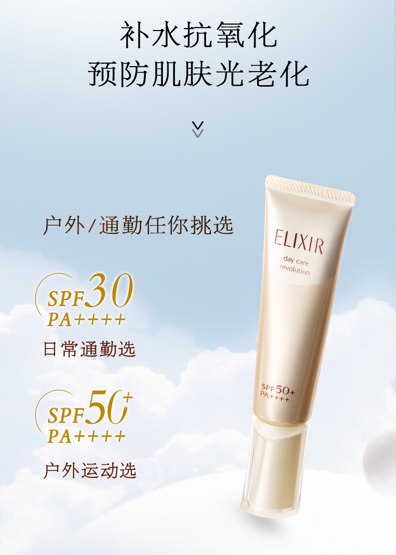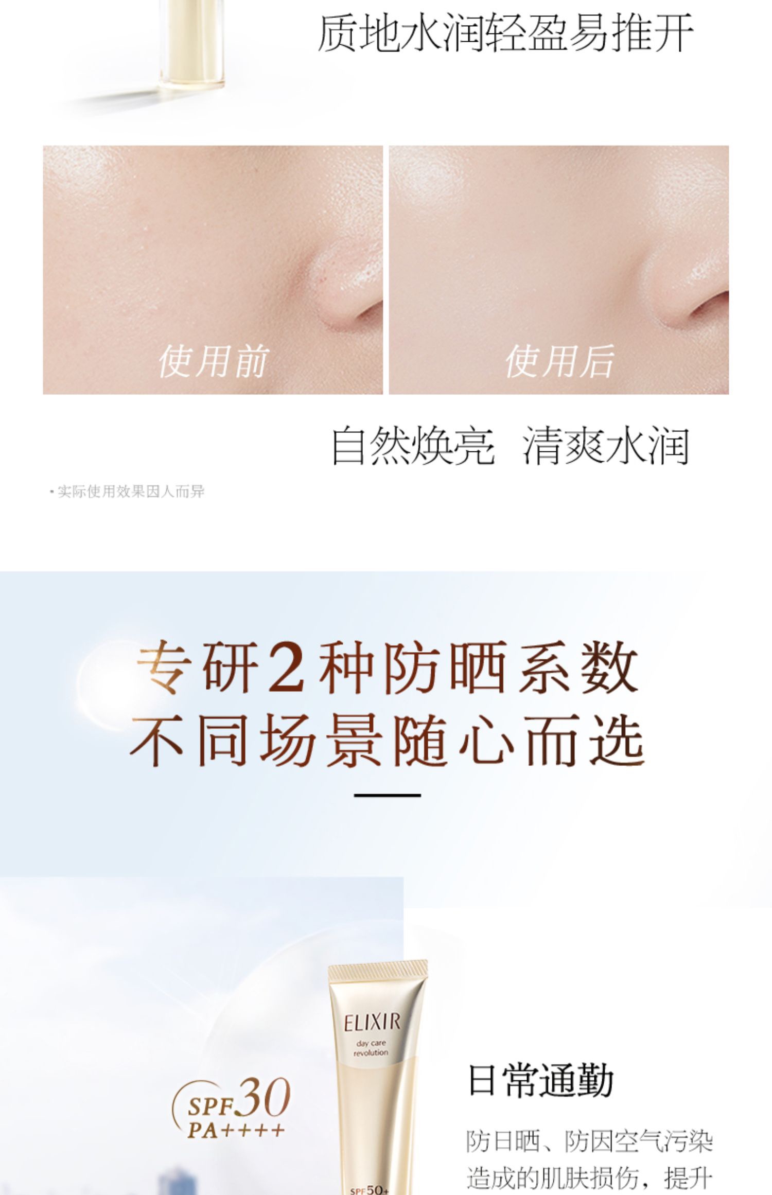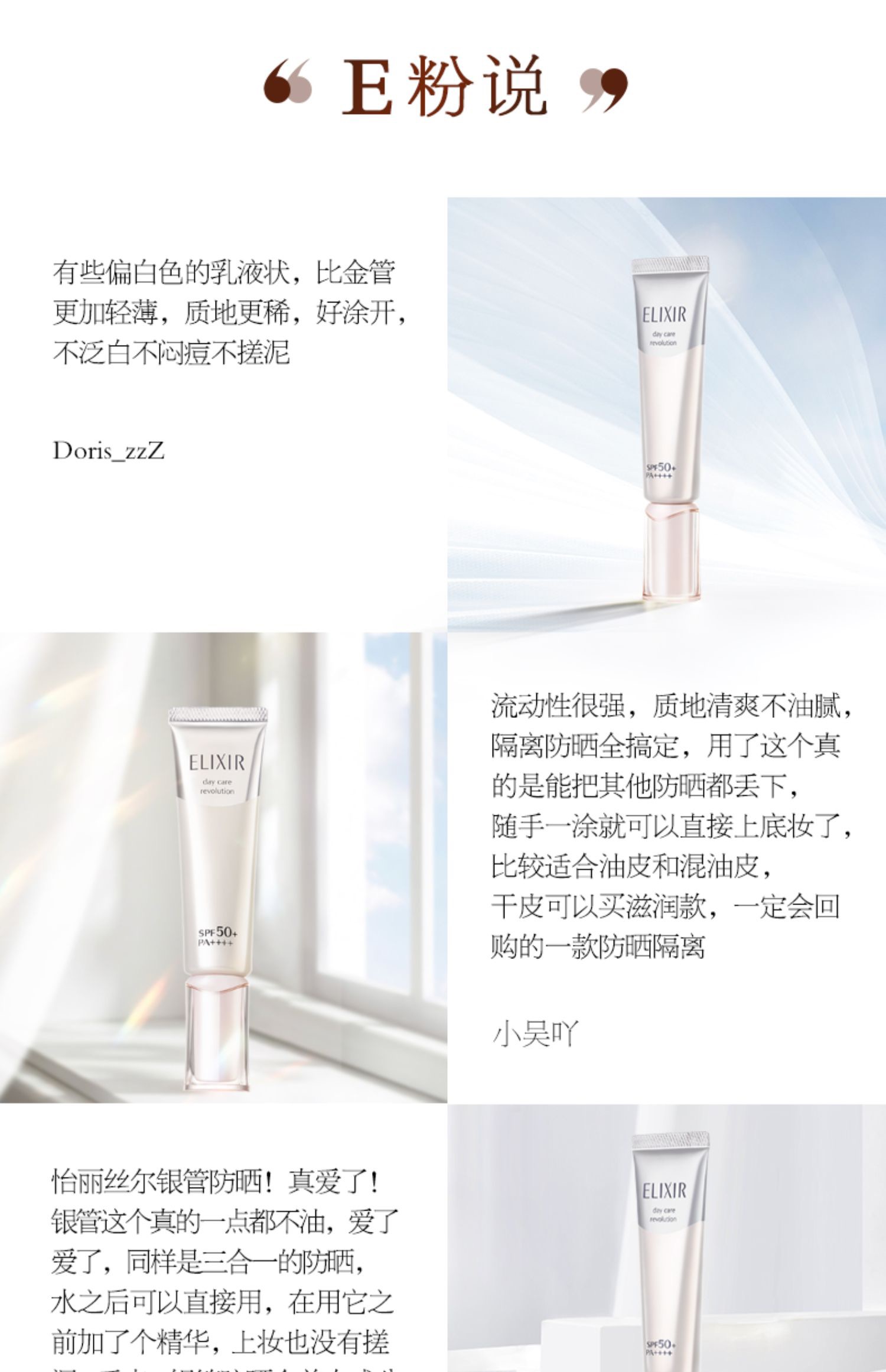 日本Shiseido/资生堂elixir怡丽丝尔防护精华乳防晒霜 保湿滋润隔离金管35ml美白清爽隔离银管35ml
