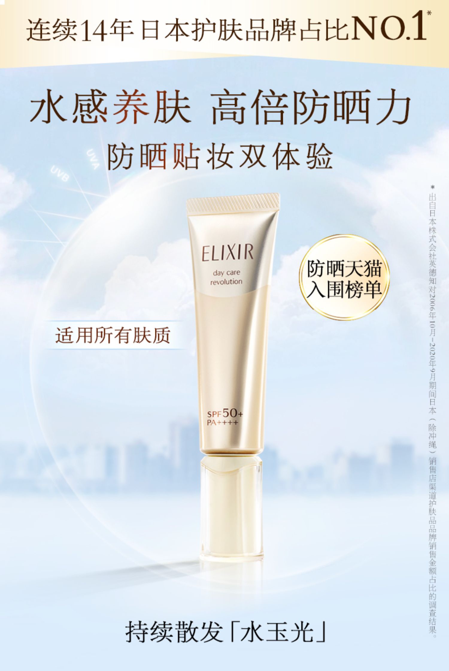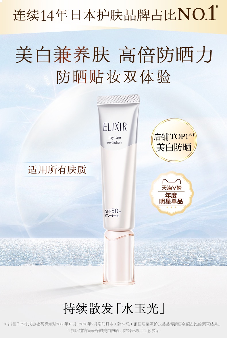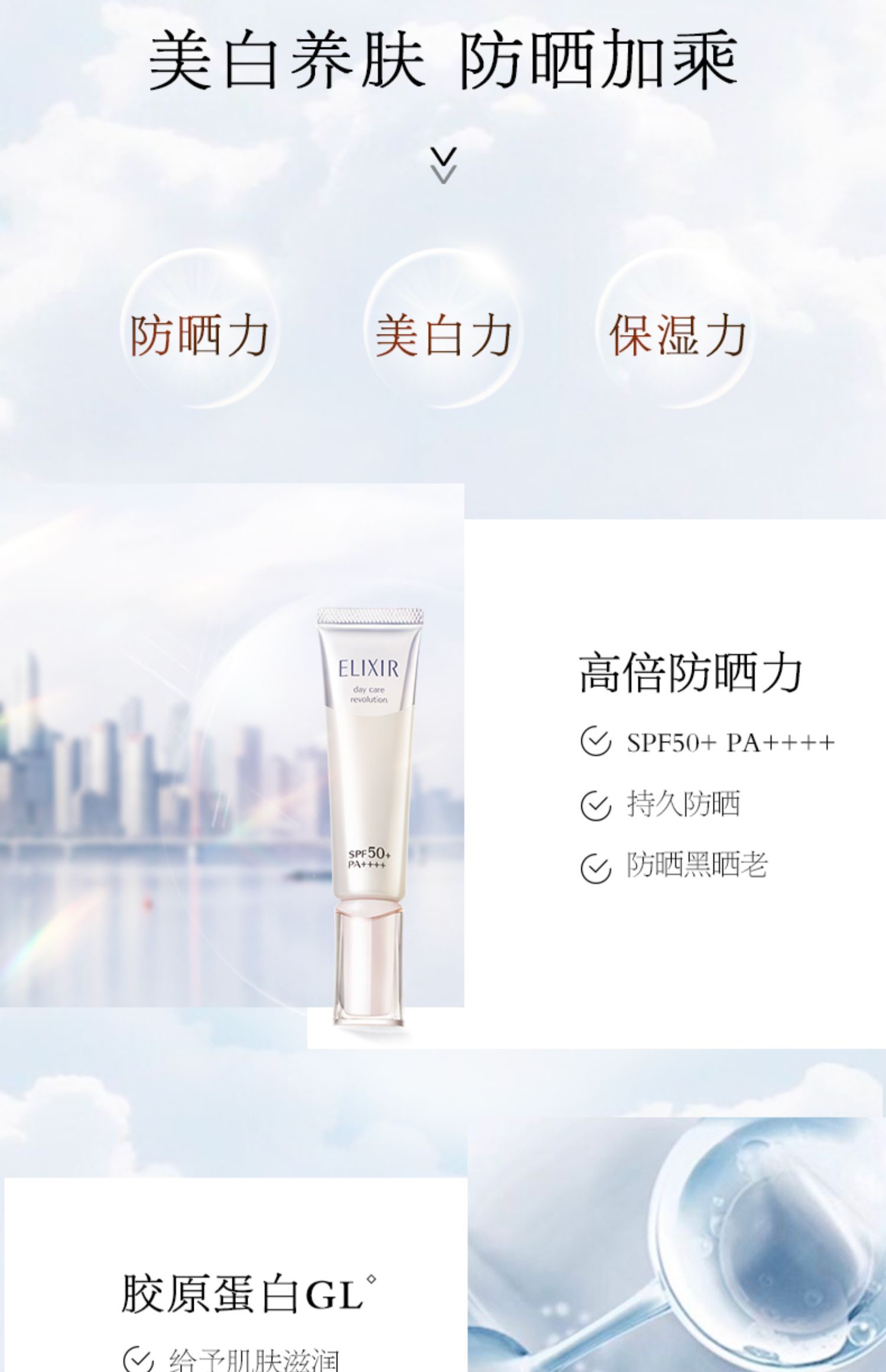 1、产品名称:资生堂elixir怡丽丝尔防护精华乳防晒霜