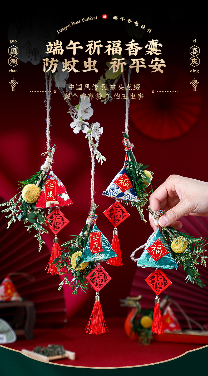 【端午祈福香囊挂件 防蚊虫 祈平安】端午节福字香包挂件 成品 国风荷包手工刺绣香囊随身包边香袋子