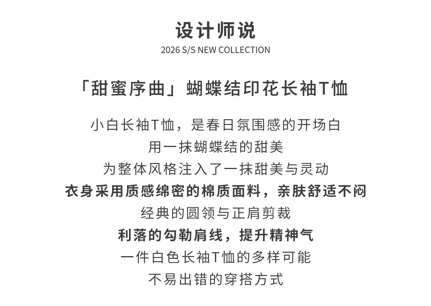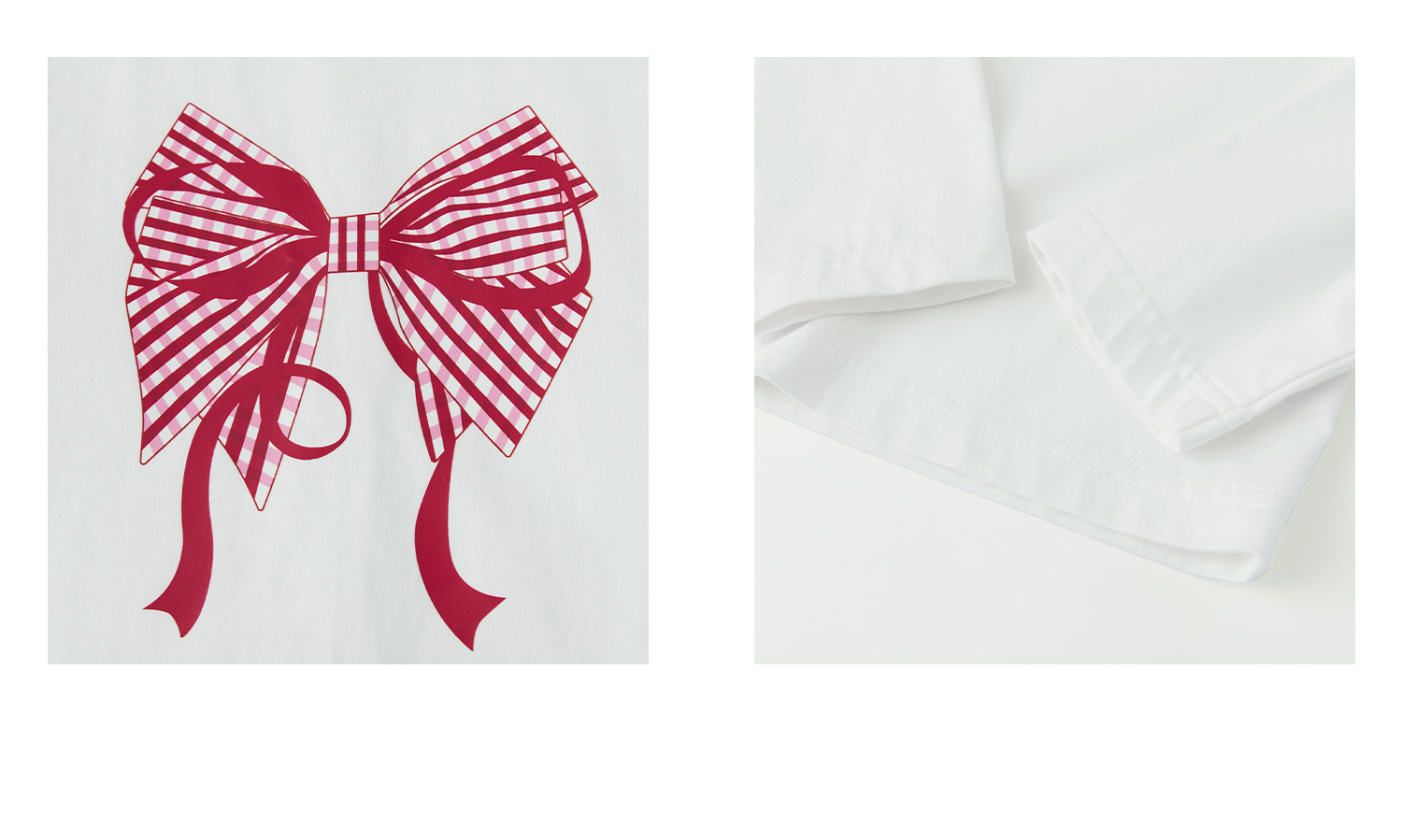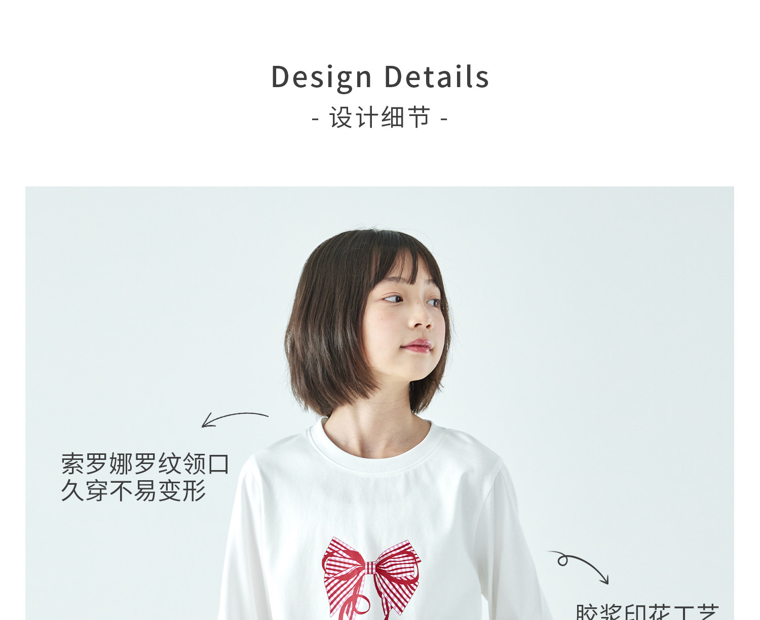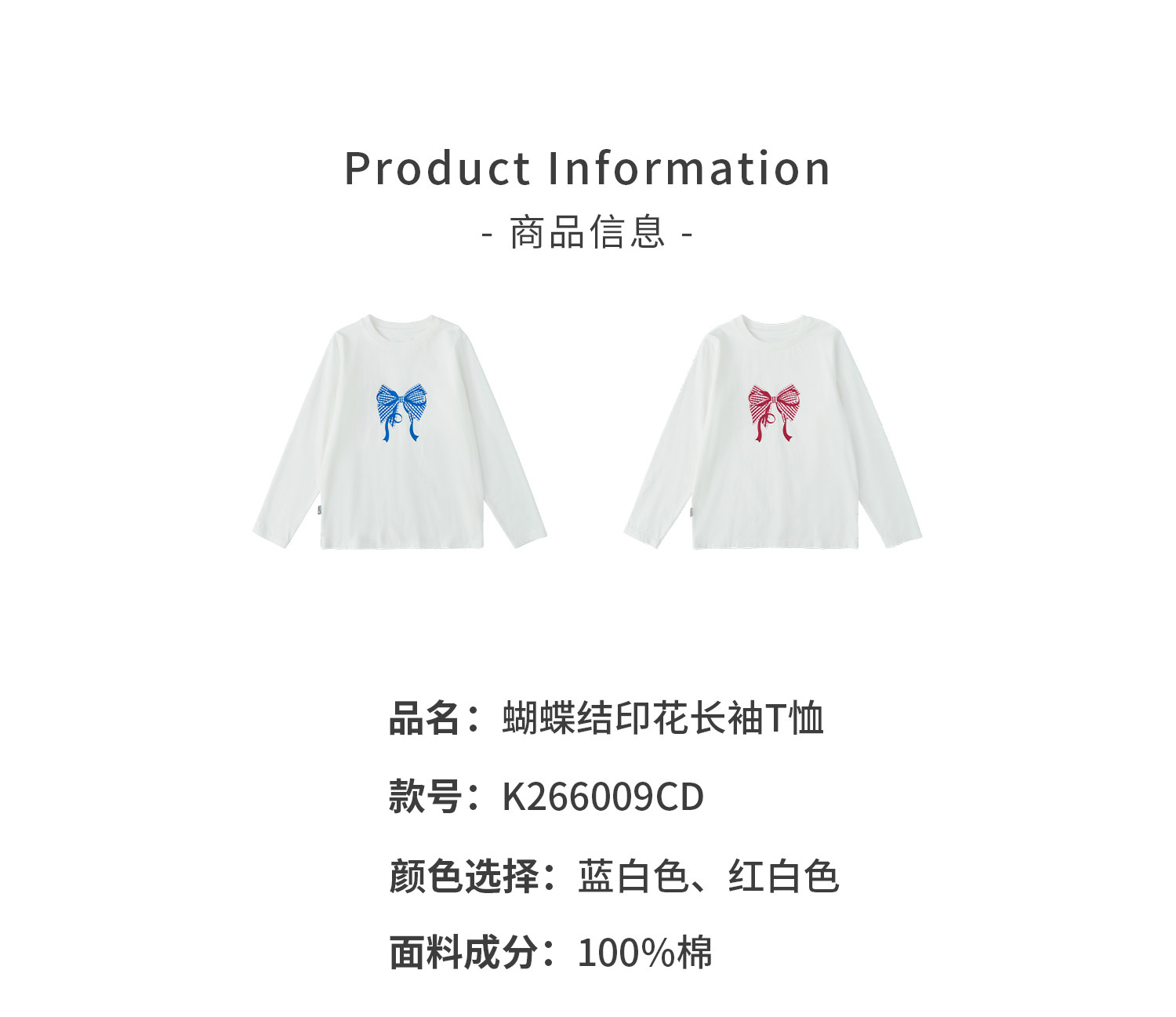 棵初26年春季新款亲子中大女童蝴蝶结印花长袖T恤小清新纯棉上衣