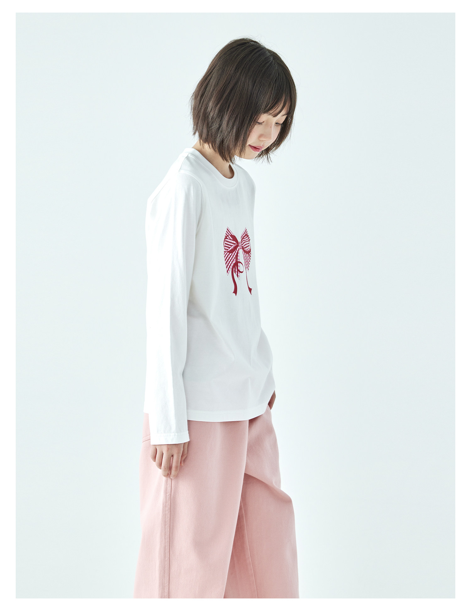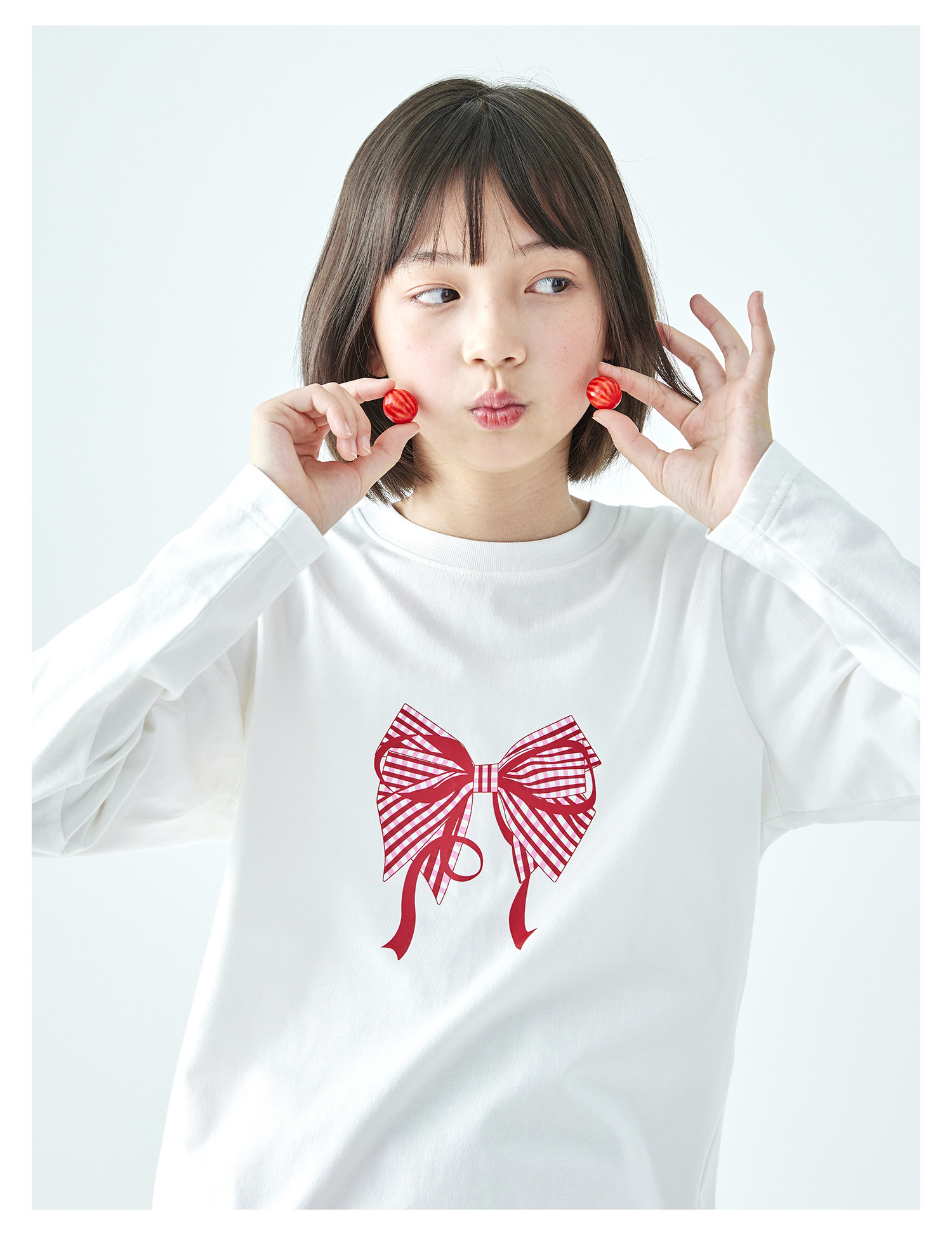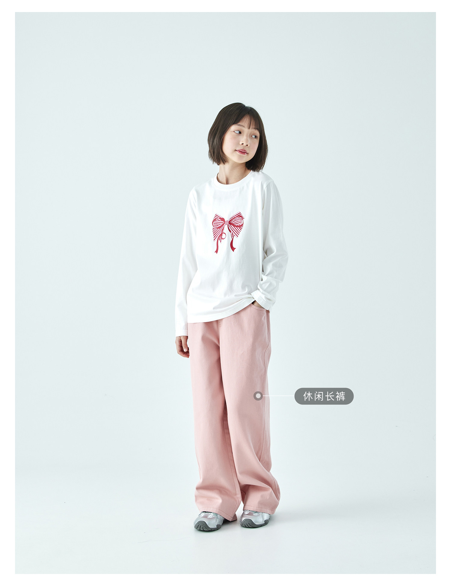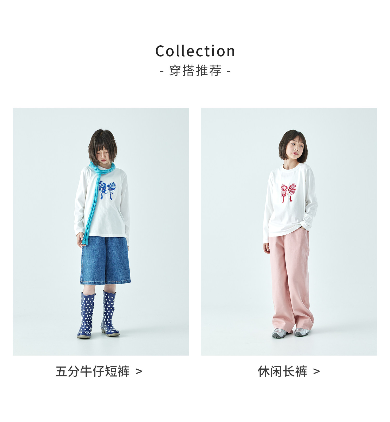 棵初26年春季新款亲子中大女童蝴蝶结印花长袖T恤小清新纯棉上衣