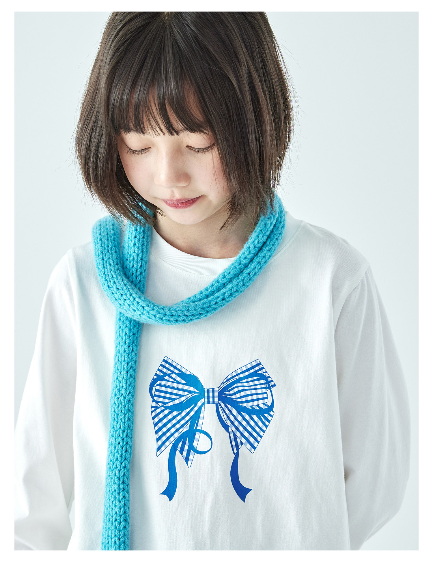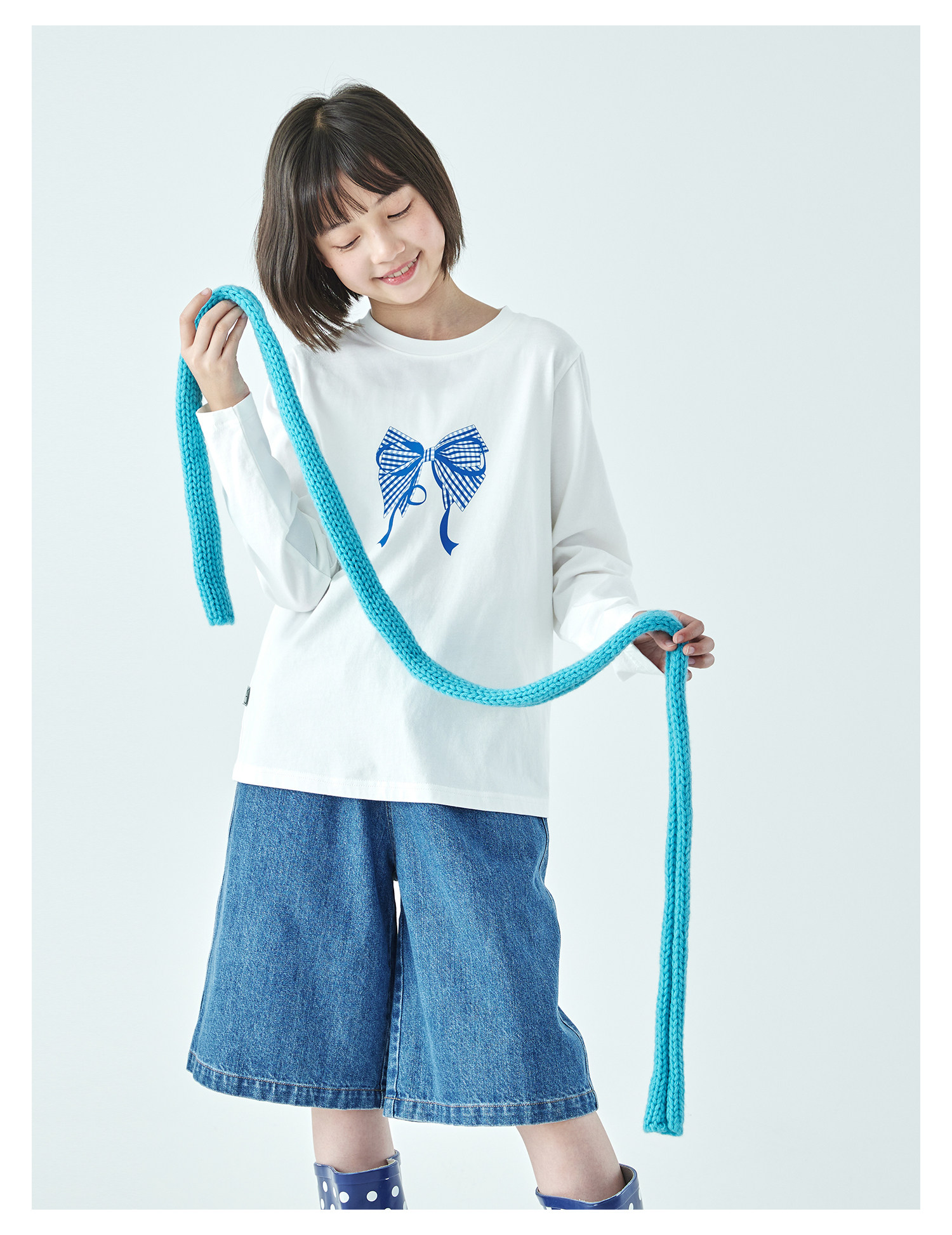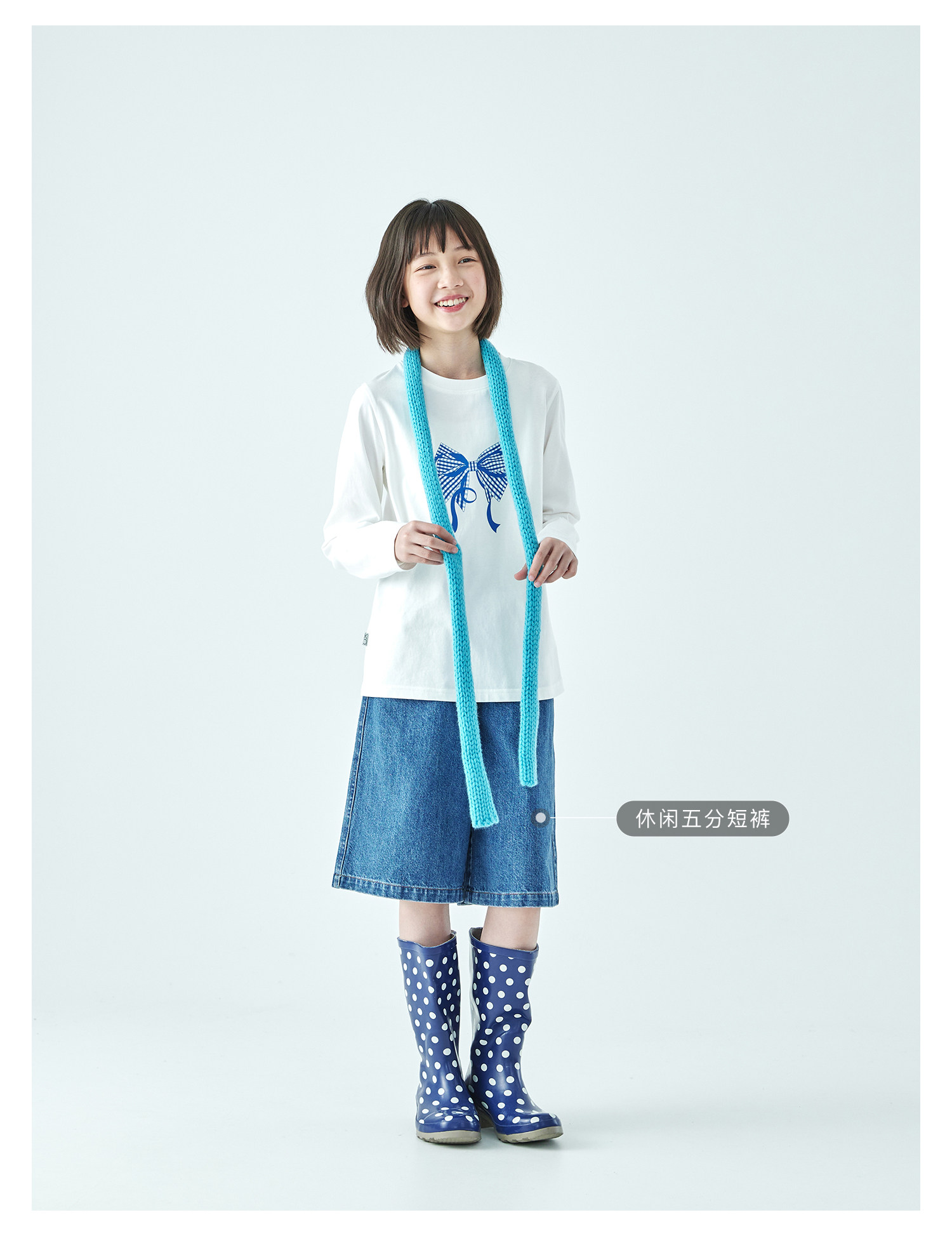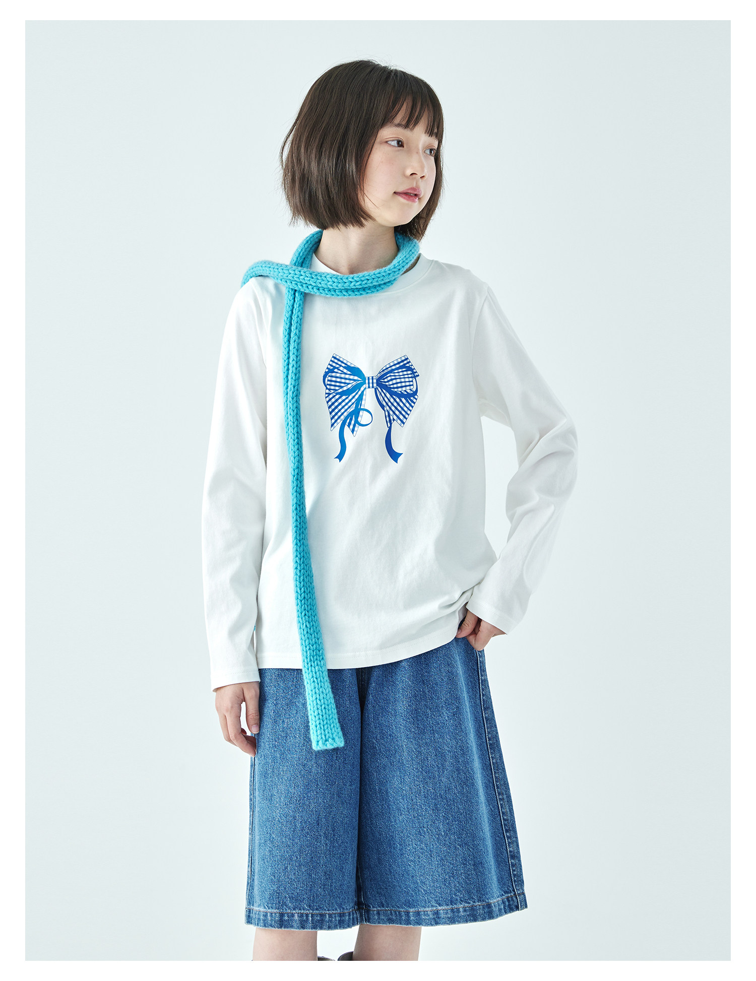 棵初26年春季新款亲子中大女童蝴蝶结印花长袖T恤小清新纯棉上衣