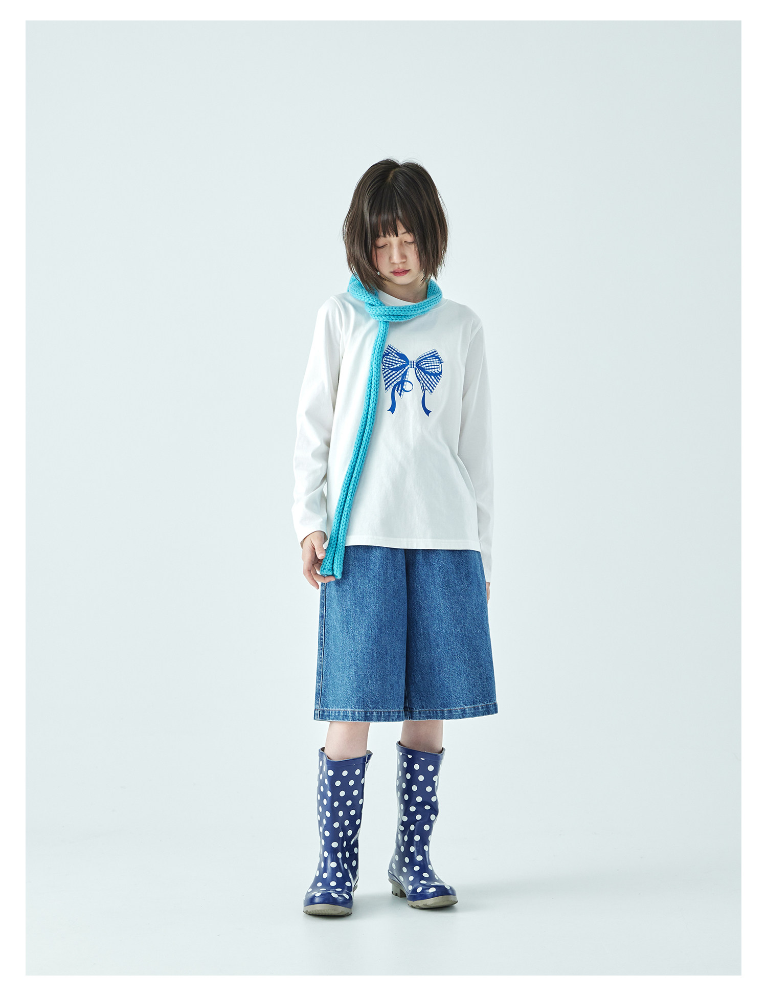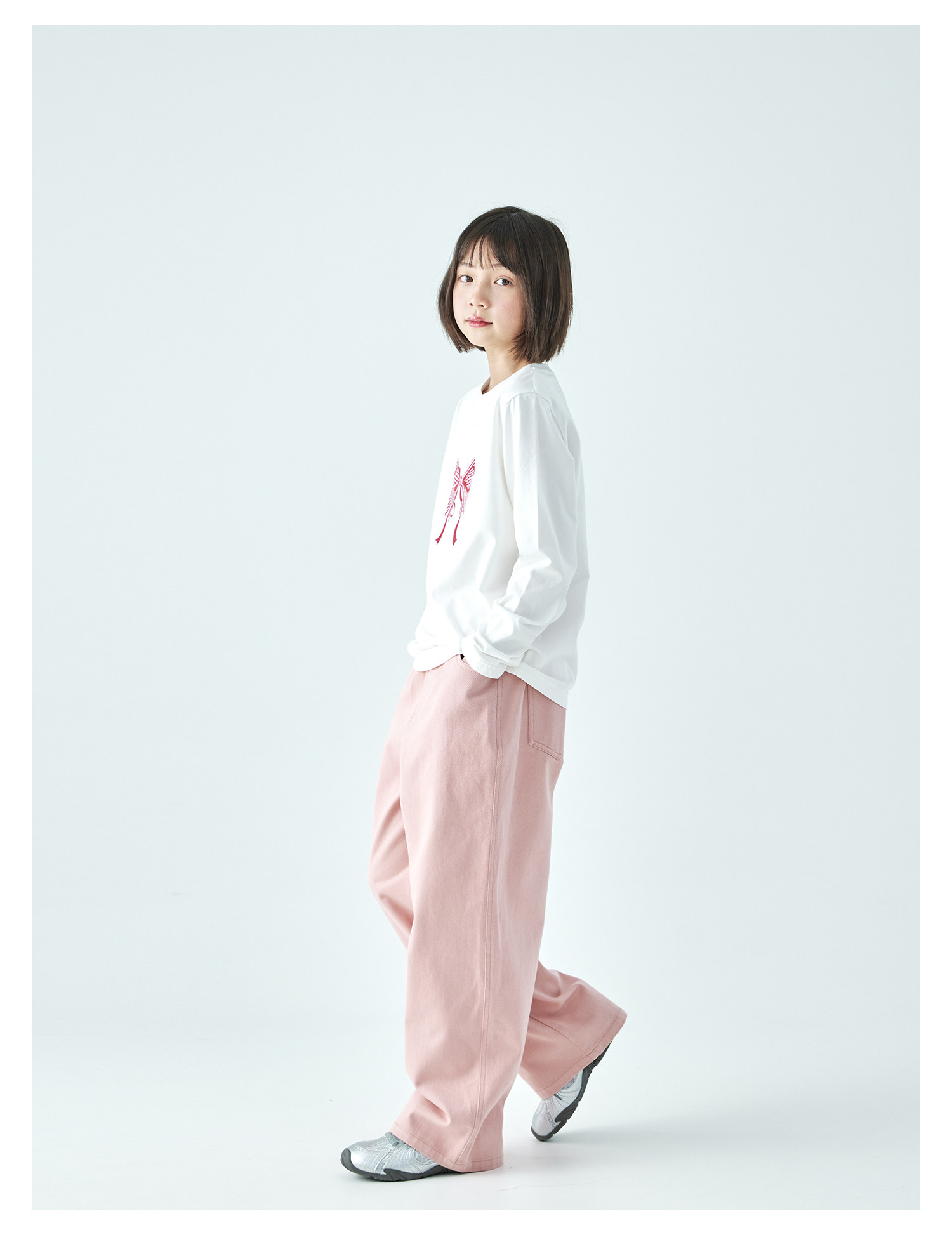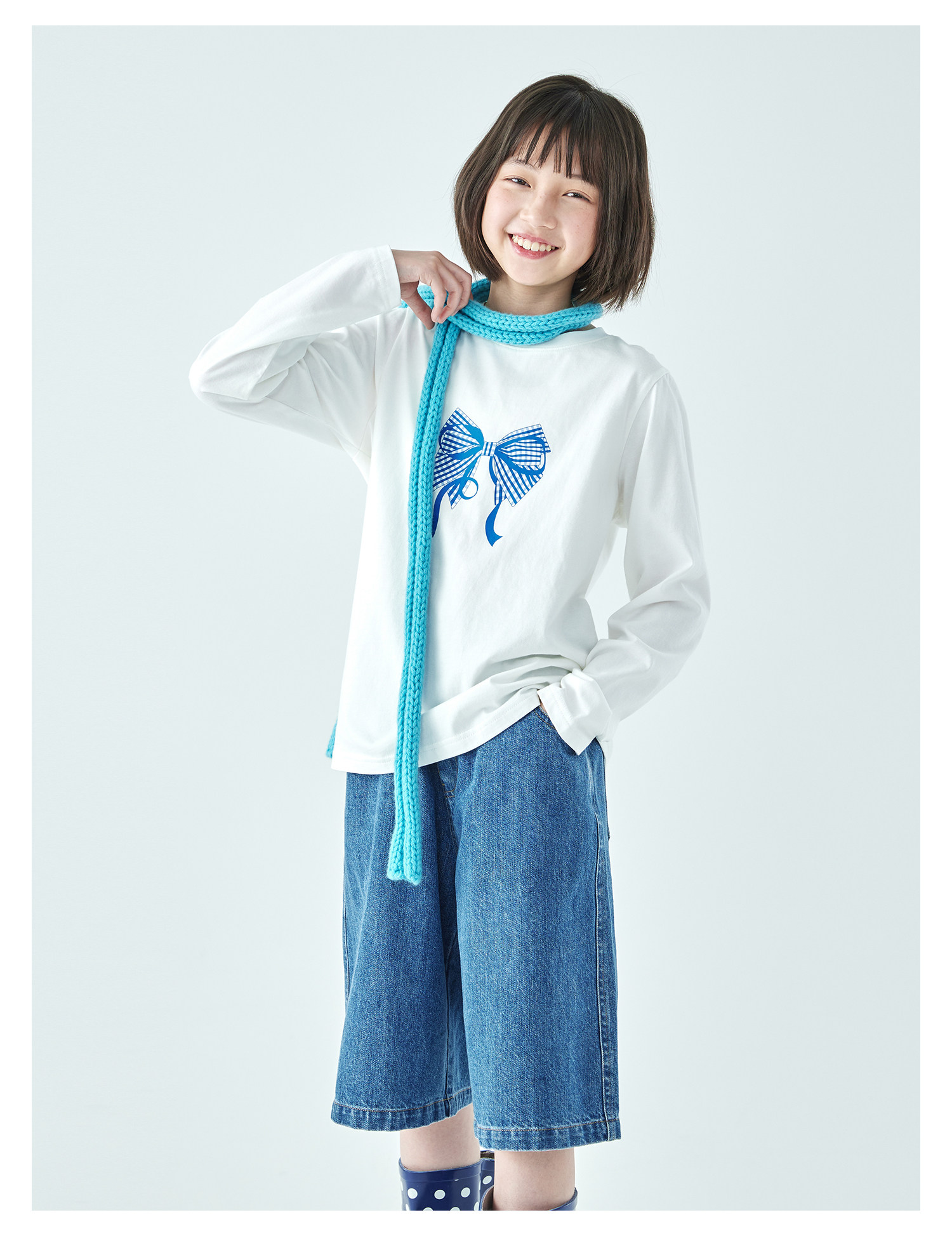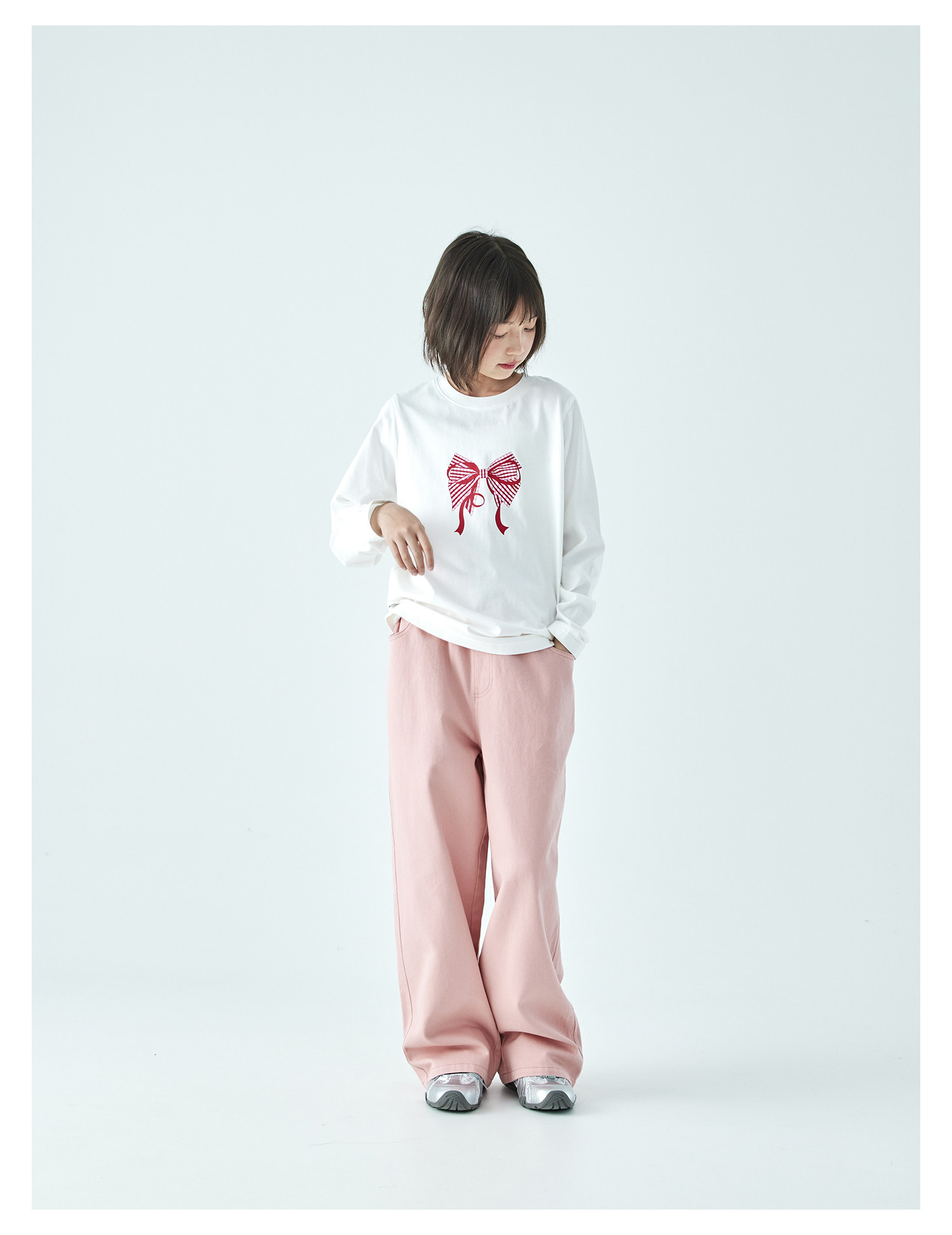 棵初26年春季新款亲子中大女童蝴蝶结印花长袖T恤小清新纯棉上衣
