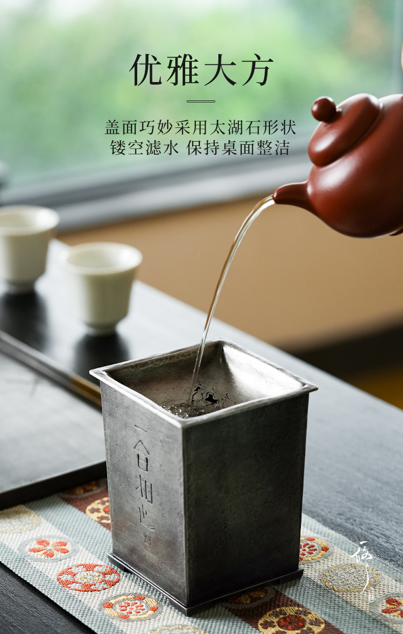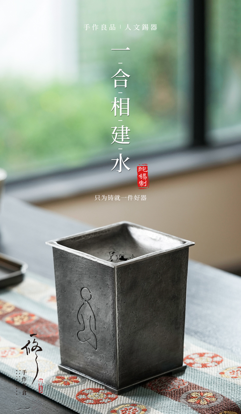 斑锡龙一合相建水茶洗纯锡仿古做旧水盂茶渣缸