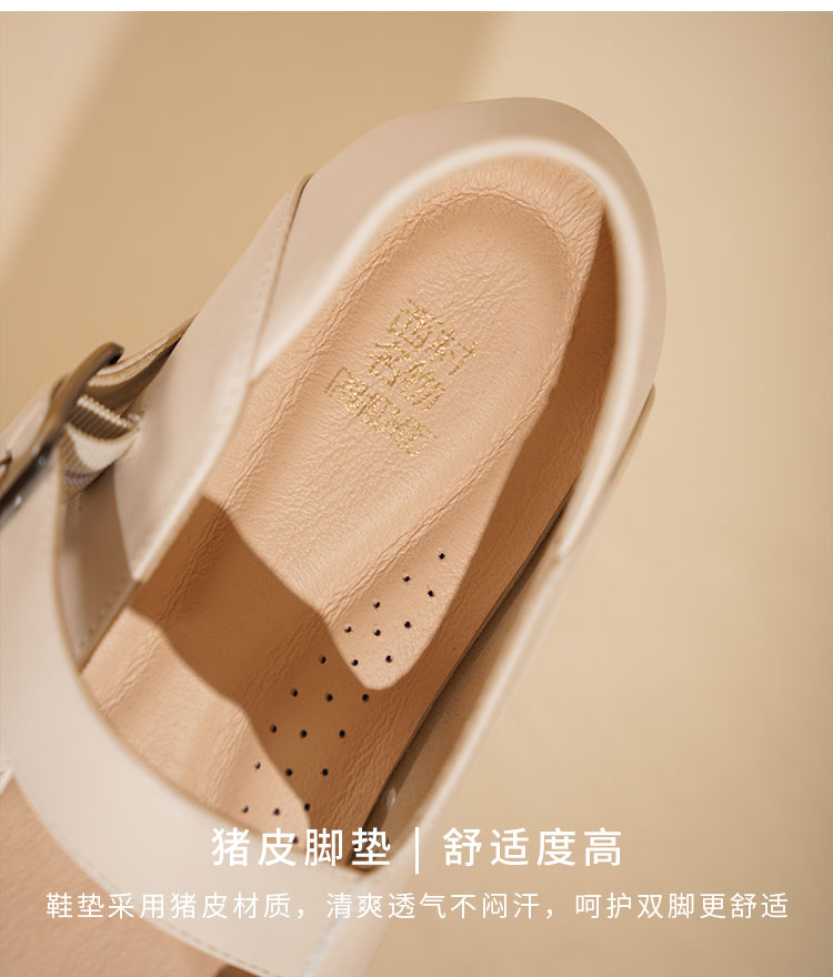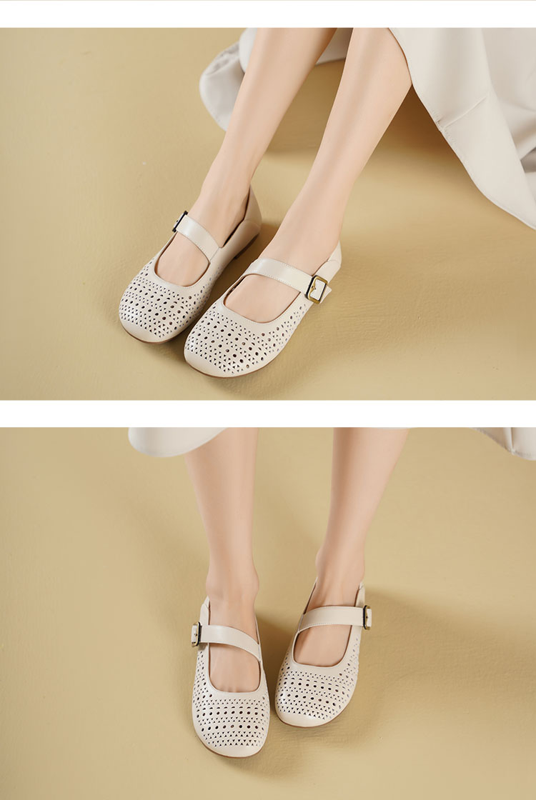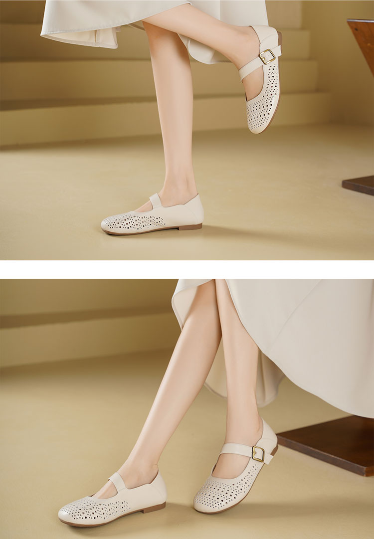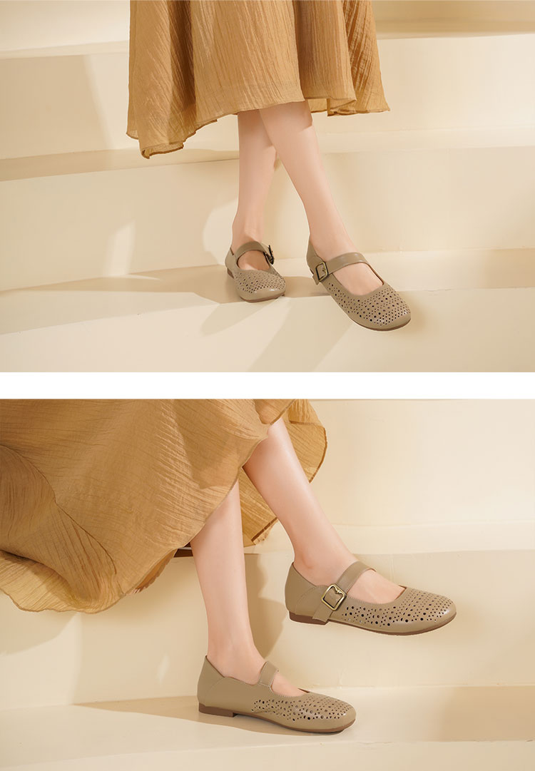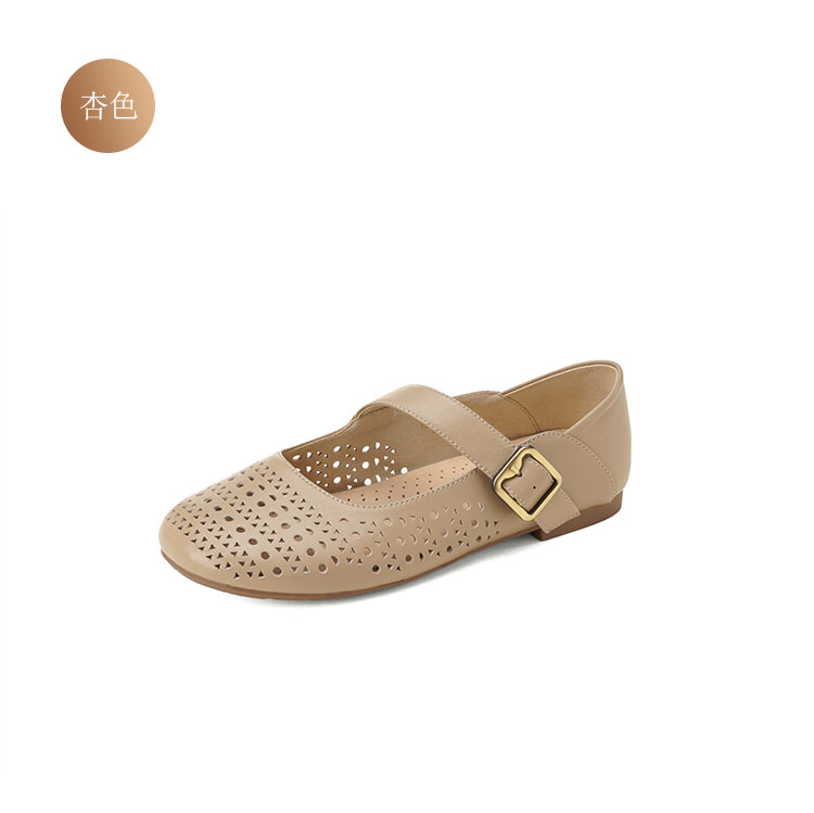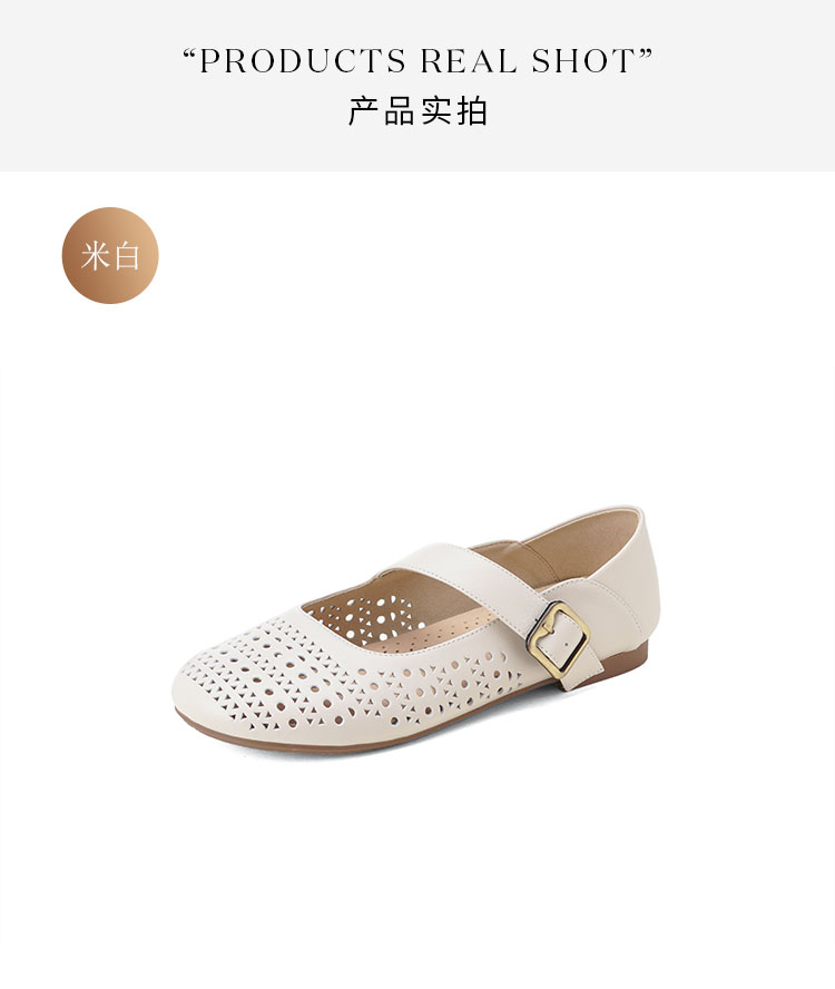 西村名物2025年夏季新款舒适平底一字带玛丽珍洞洞镂空鞋T25AH16121