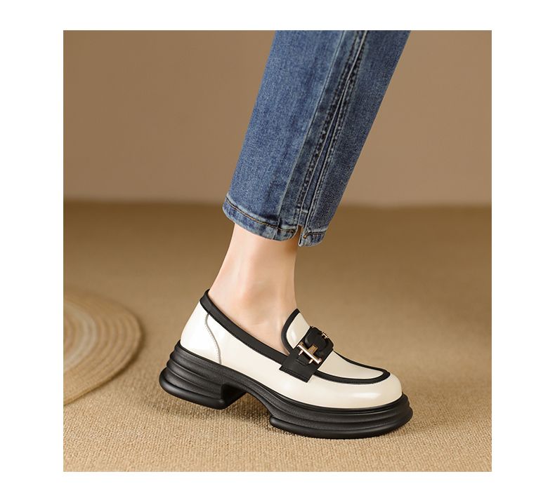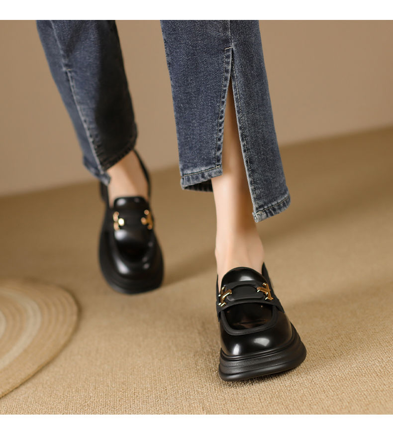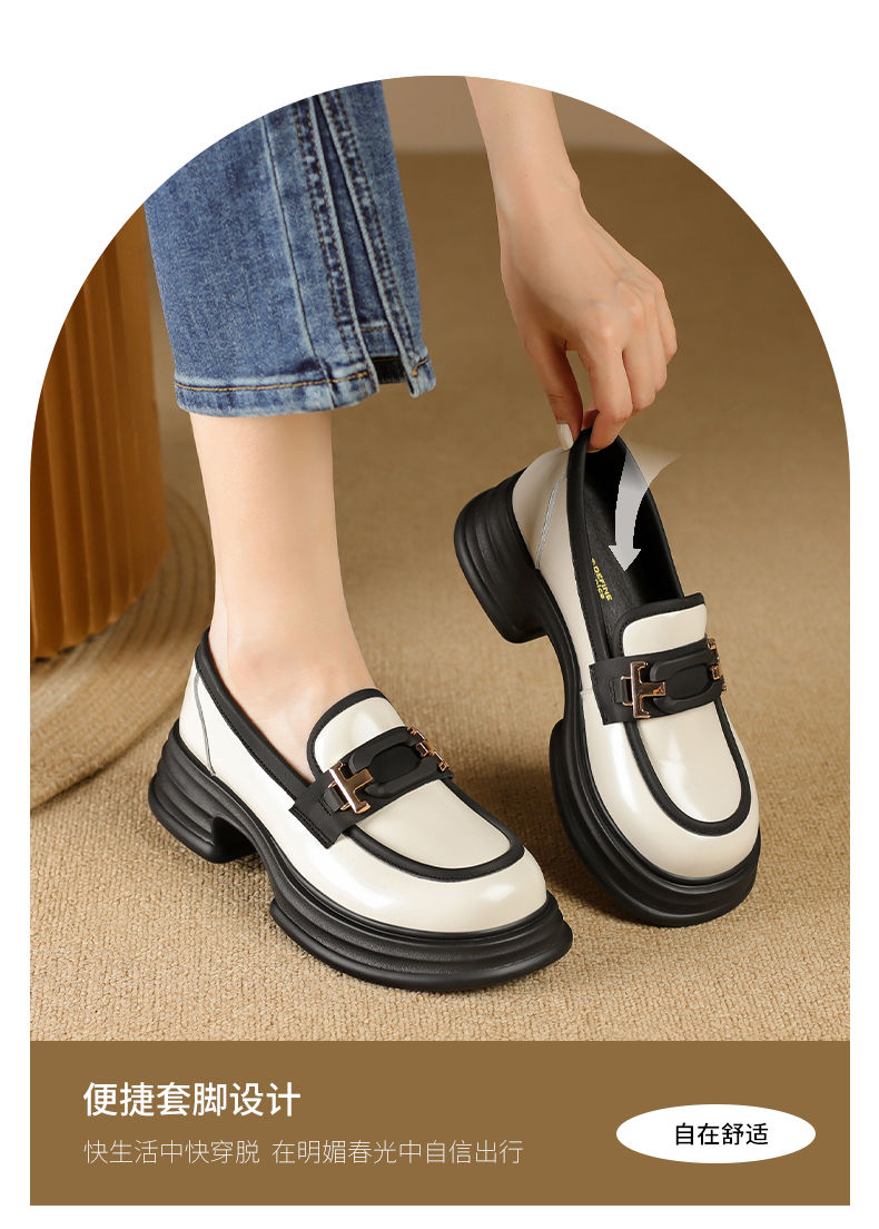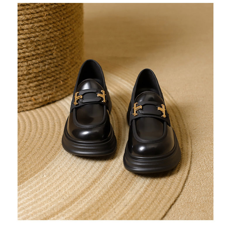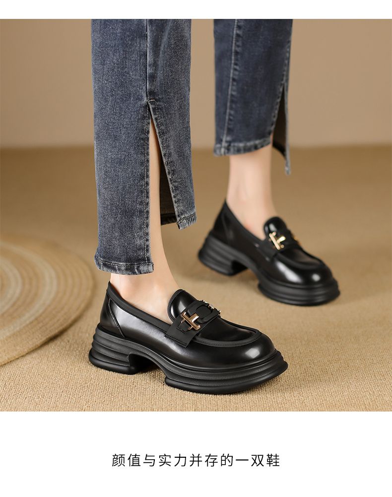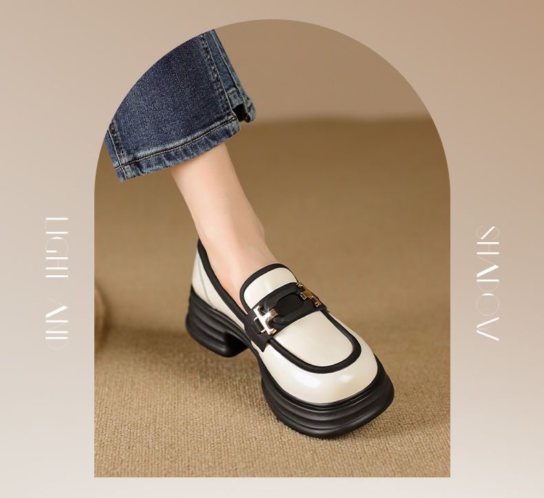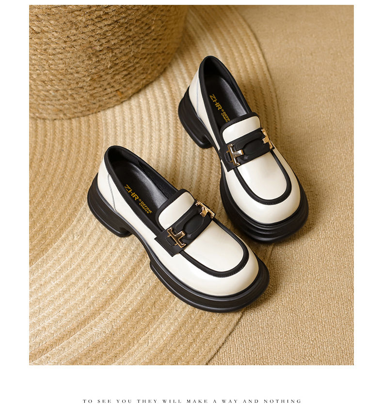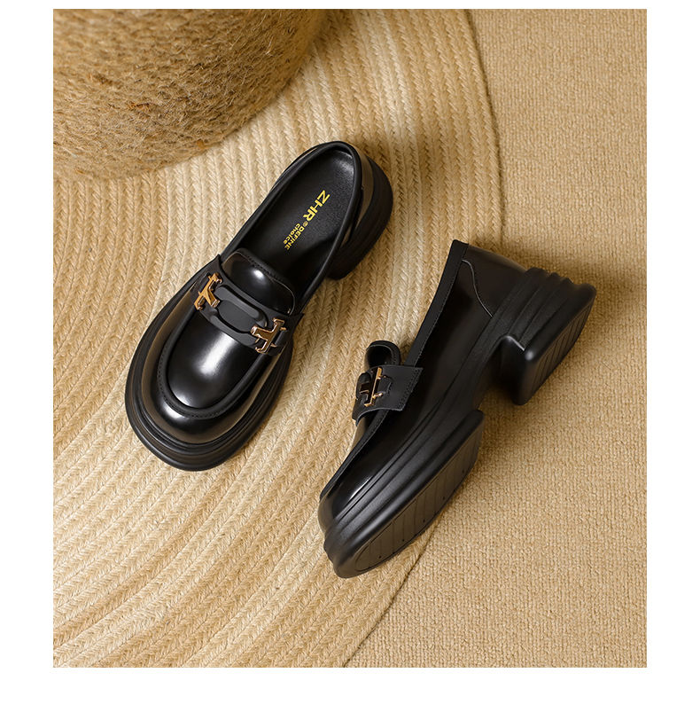 ZHR方形饰扣厚底鞋2023秋季新款ins百搭韩版学院风小皮鞋高颜值