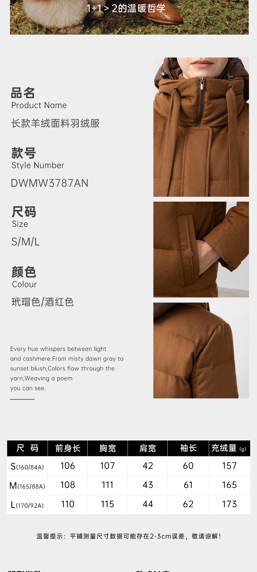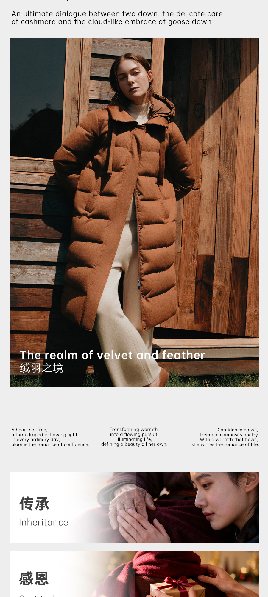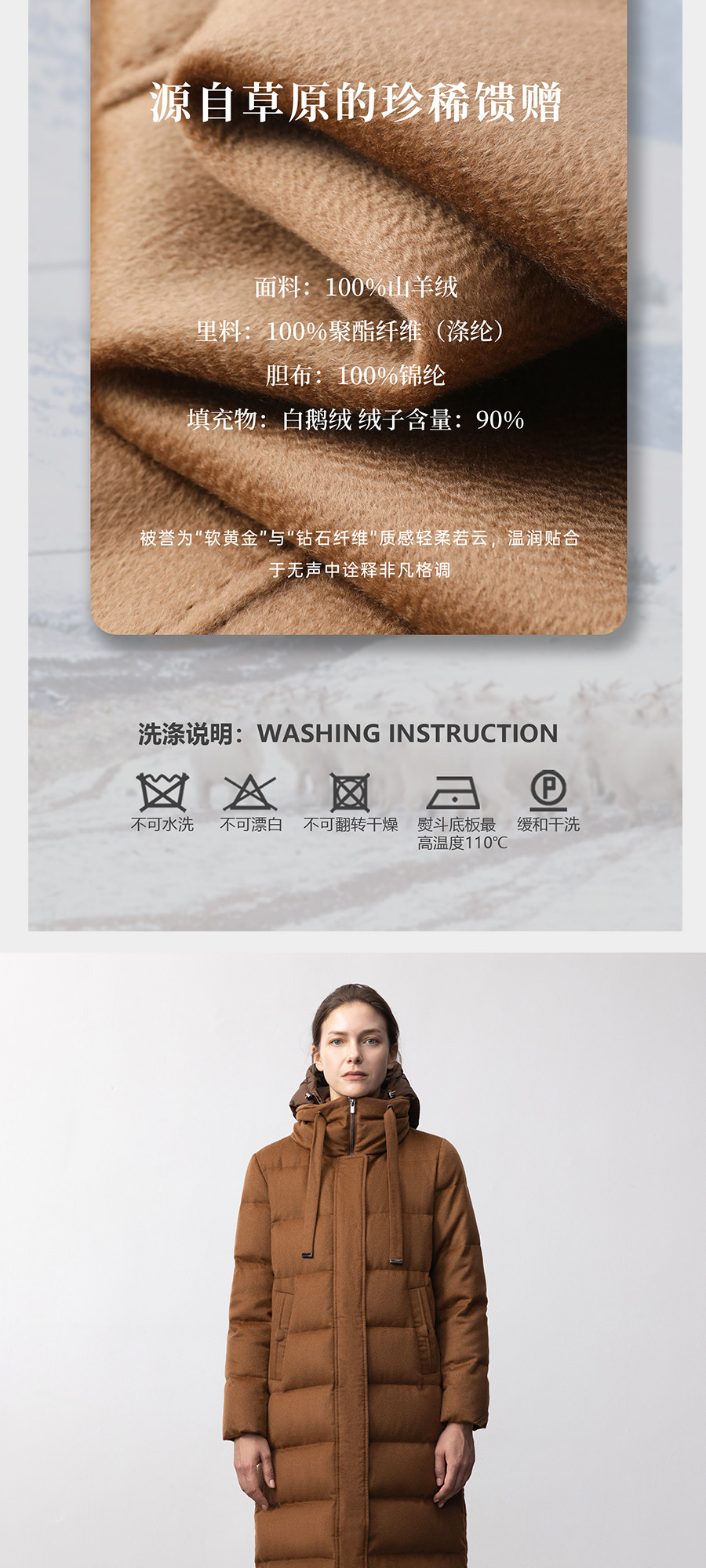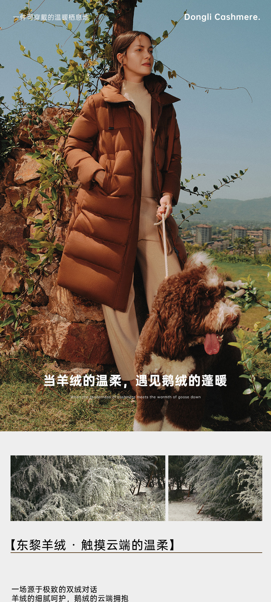 东黎 • 女士冬季长款羊绒面料羽绒服 3787