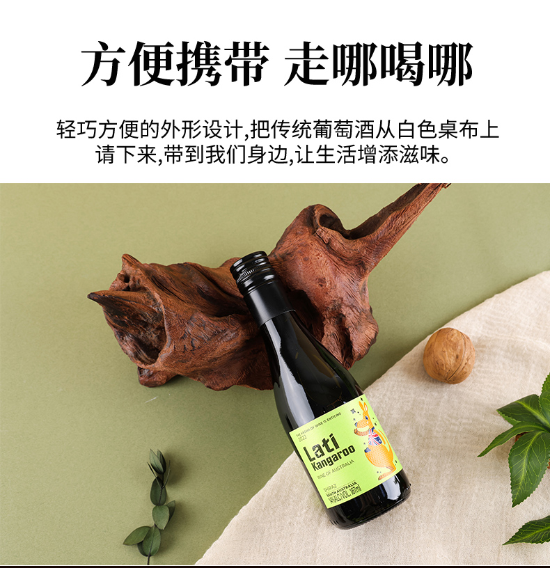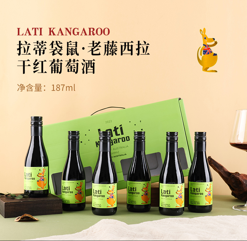 【澳大利亚原瓶进口】拉蒂袋鼠·老藤西拉干红葡萄酒 来自南澳南澳巴罗萨谷 12个月的陈酿窖藏 口感饱满 果香四溢 单宁柔顺丝滑 聚会小酌 个人微醺必备 14%vol 187ml/瓶