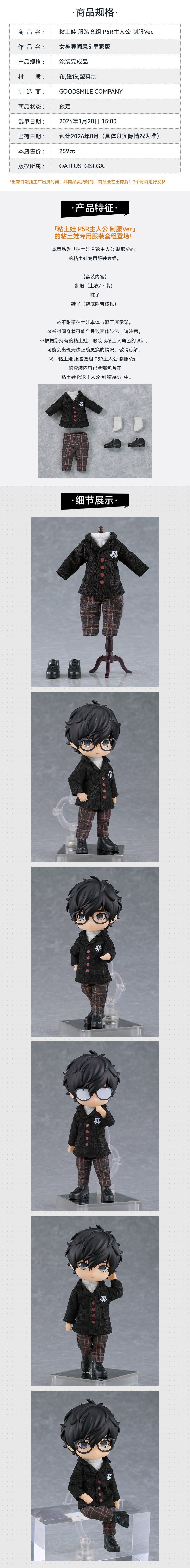 【GSC预售定金】粘土娃 P5R主人公/服装套组 制服Ver. 女神异闻录5 皇家版