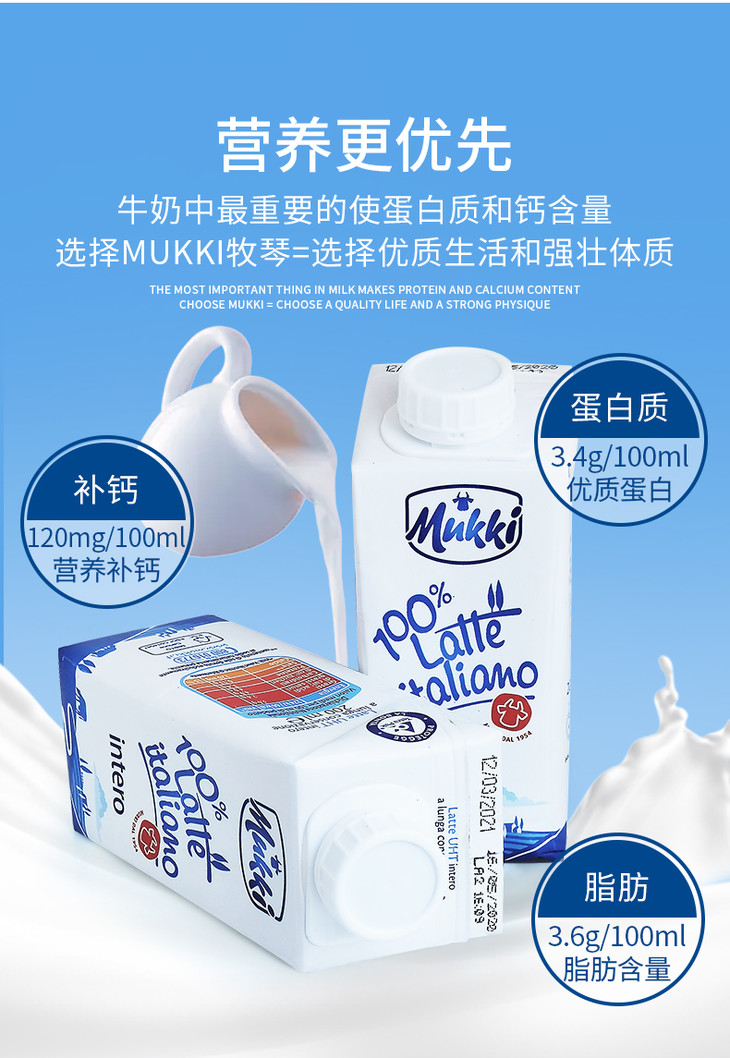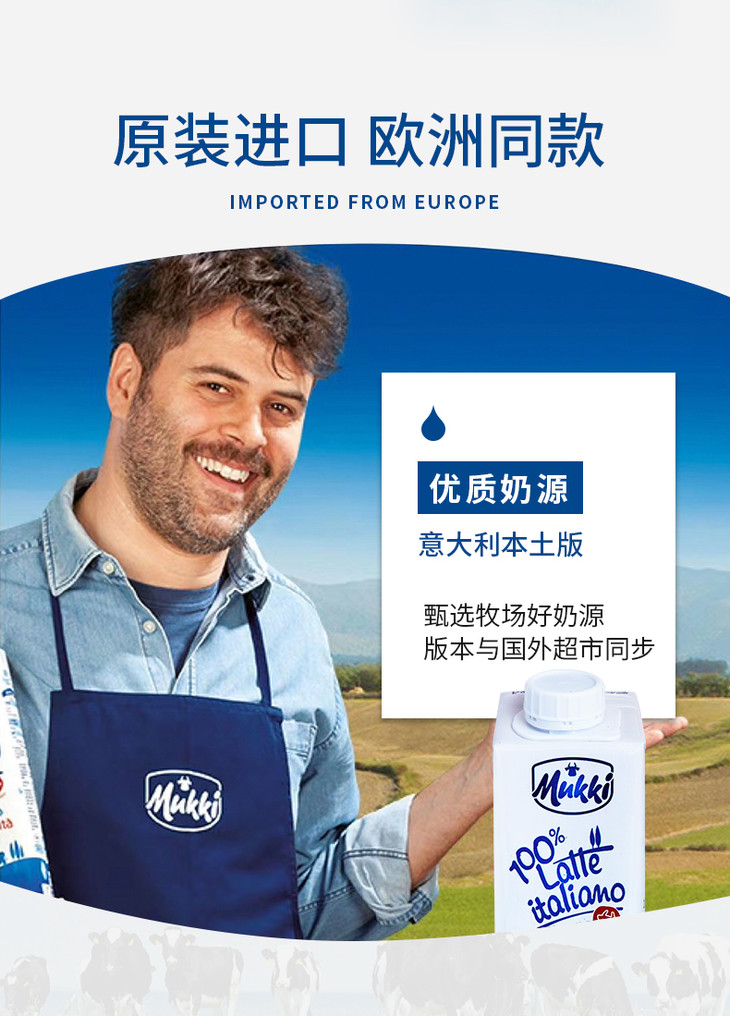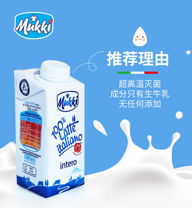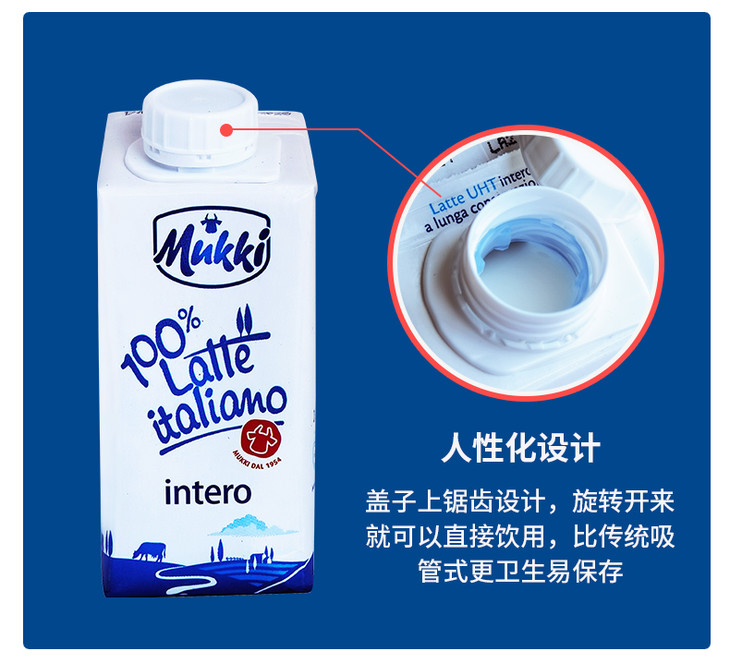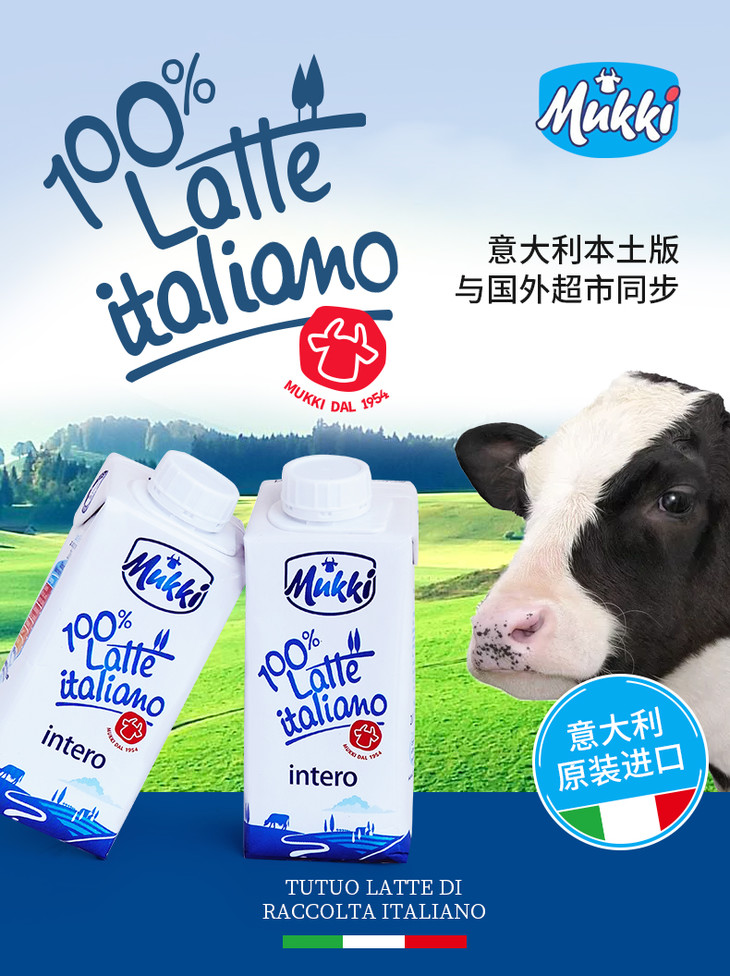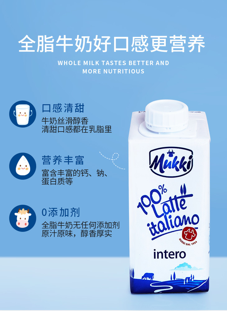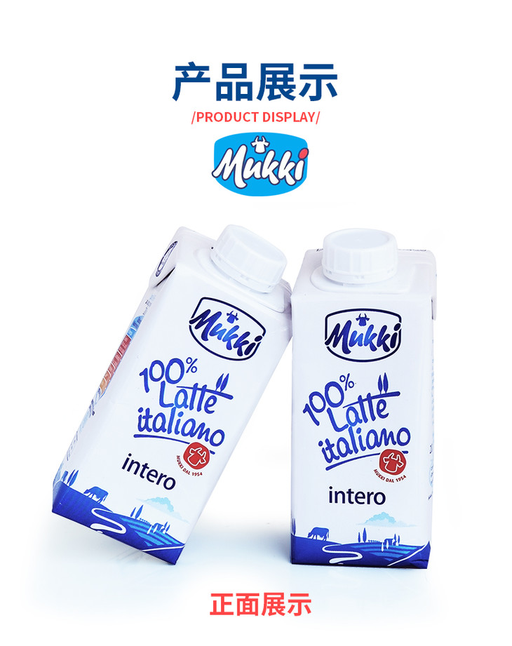 【长期团】牧琴全脂纯牛奶意大利原装进口成人儿童营养早餐奶200ml【果汁乳品】