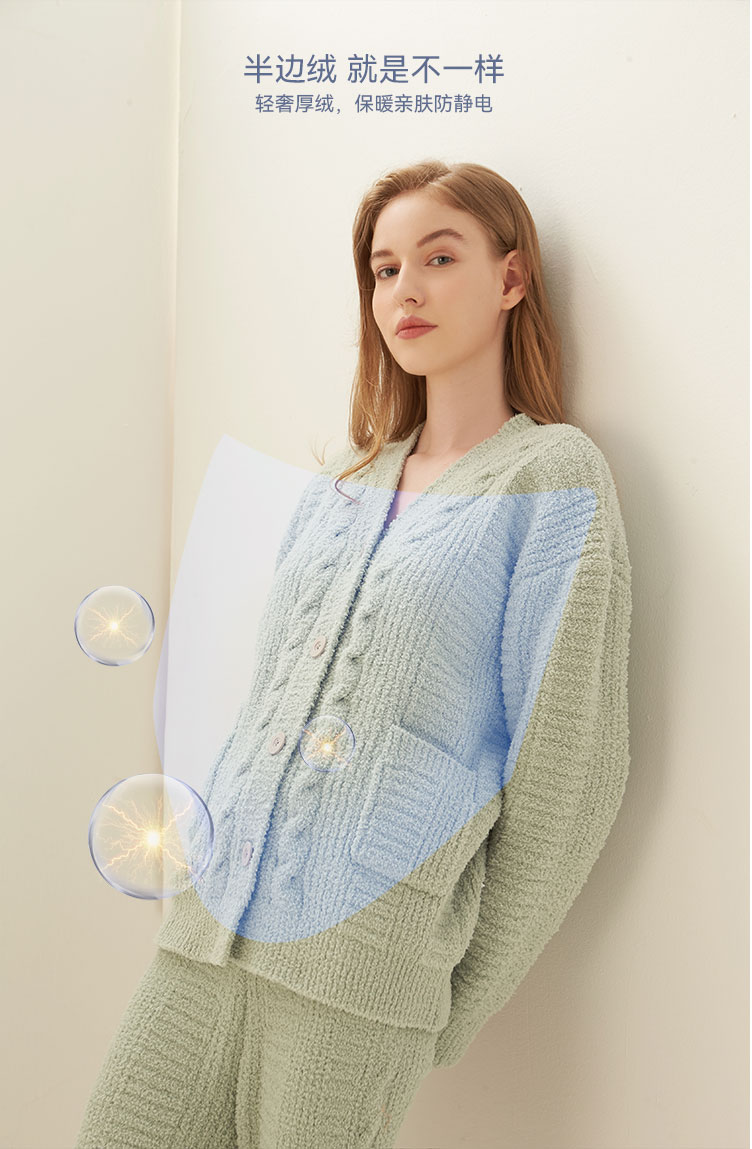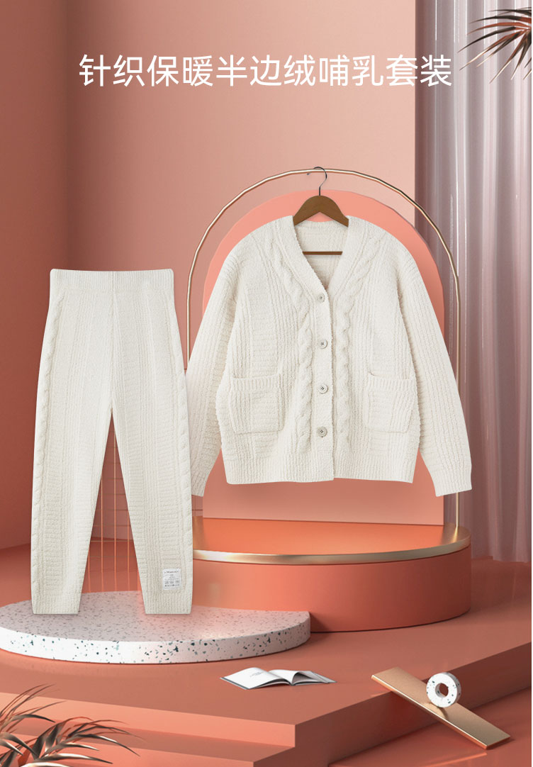 i-Mummy针织保暖防静电 半边绒哺乳服家居服套装(2件套)
