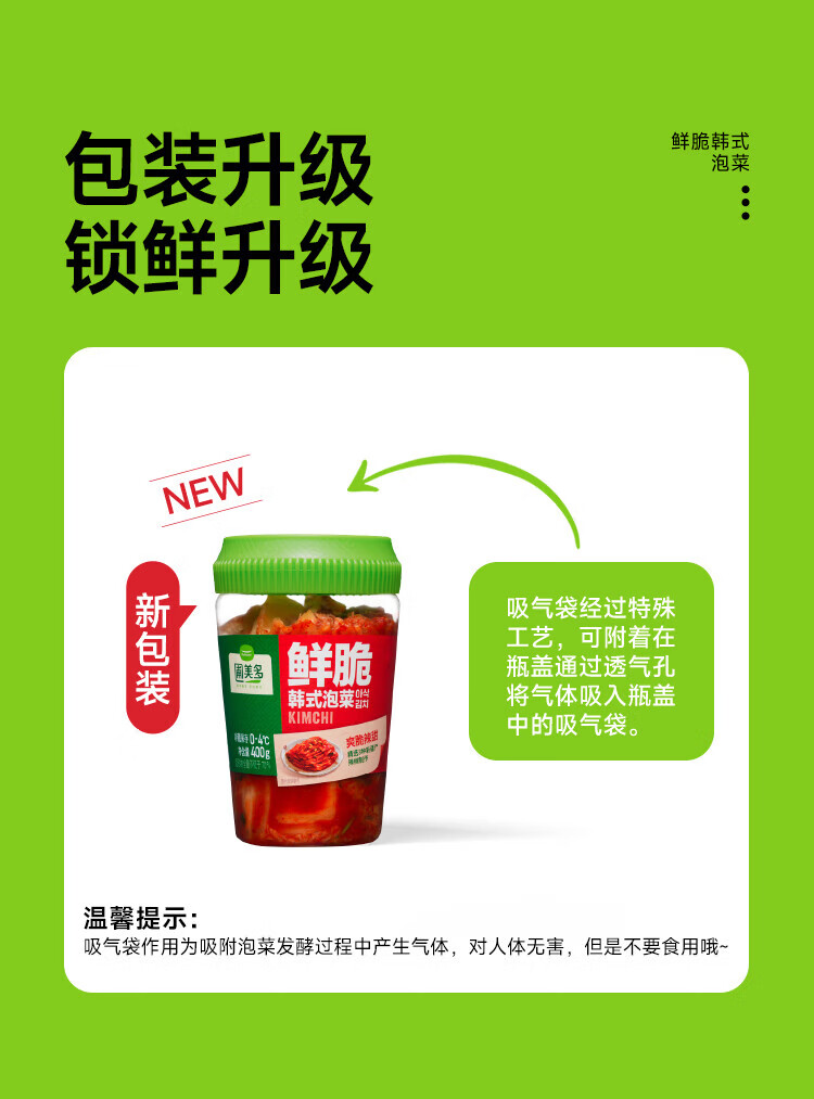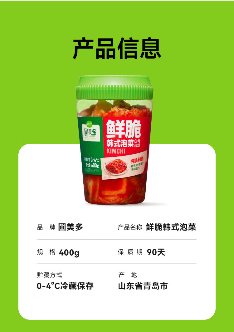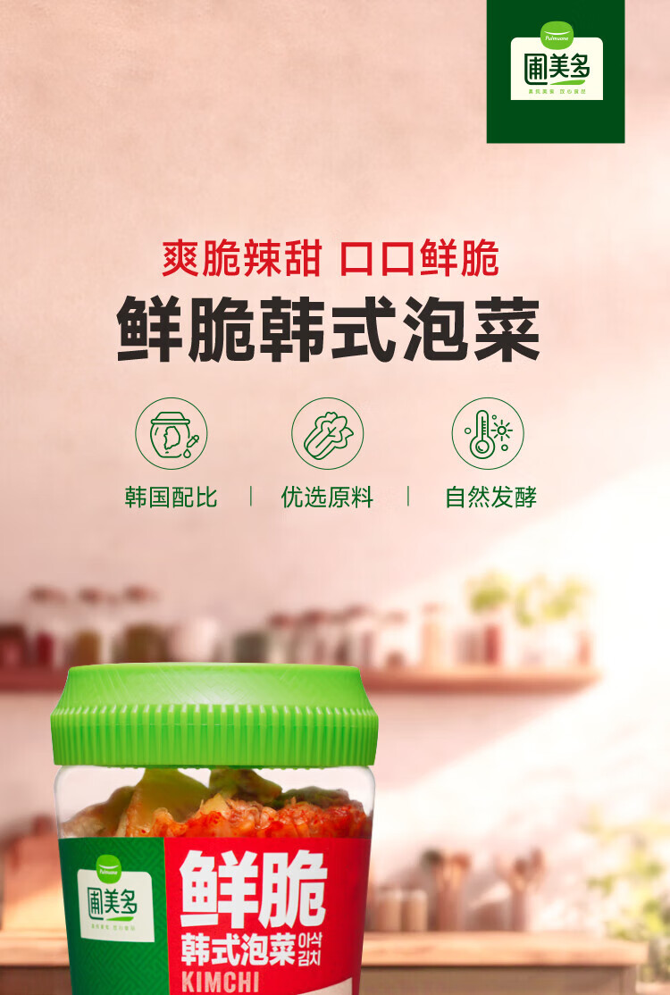 圃美多鲜脆韩式泡菜辣白菜 下饭菜 400g/瓶