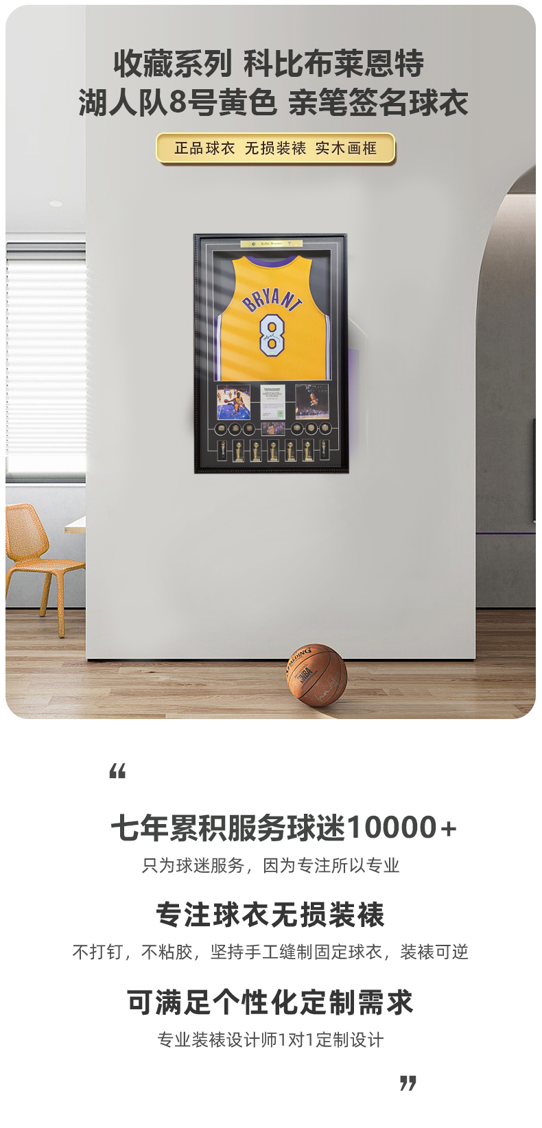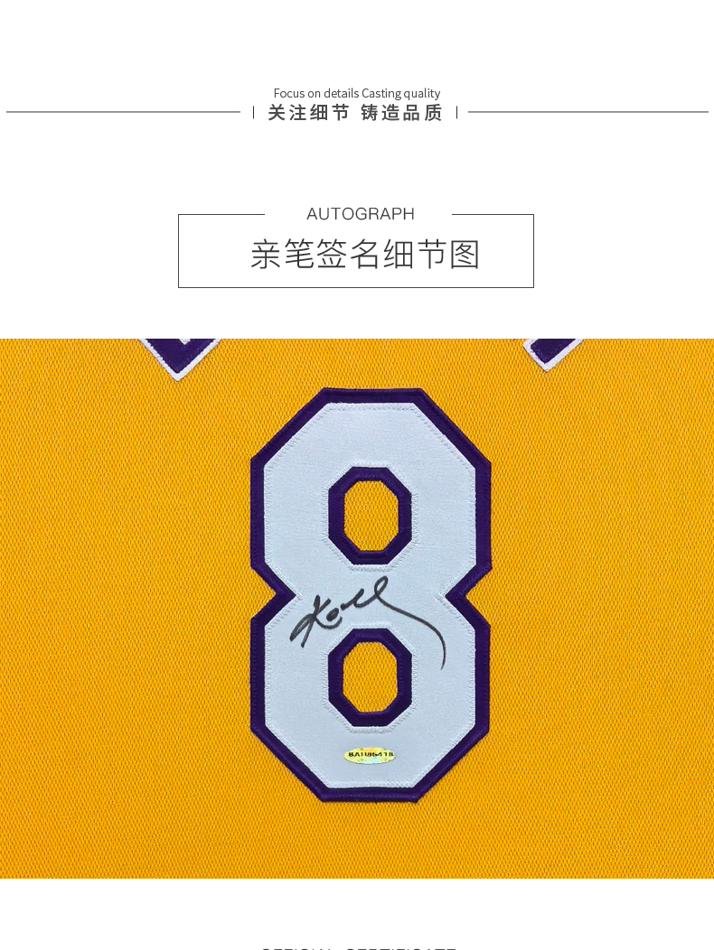 收藏系列 科比 湖人队8号黄色 亲笔签名球衣